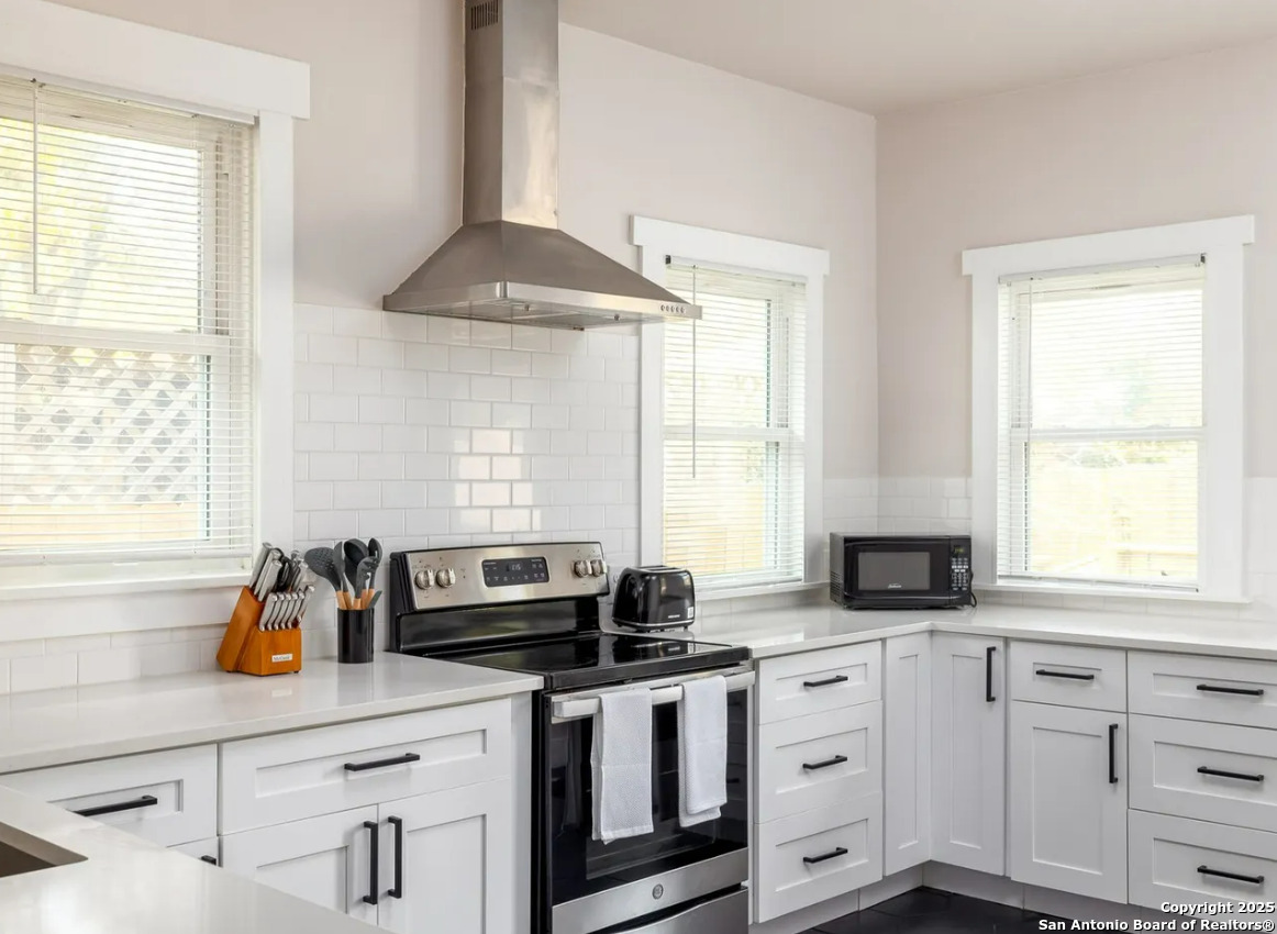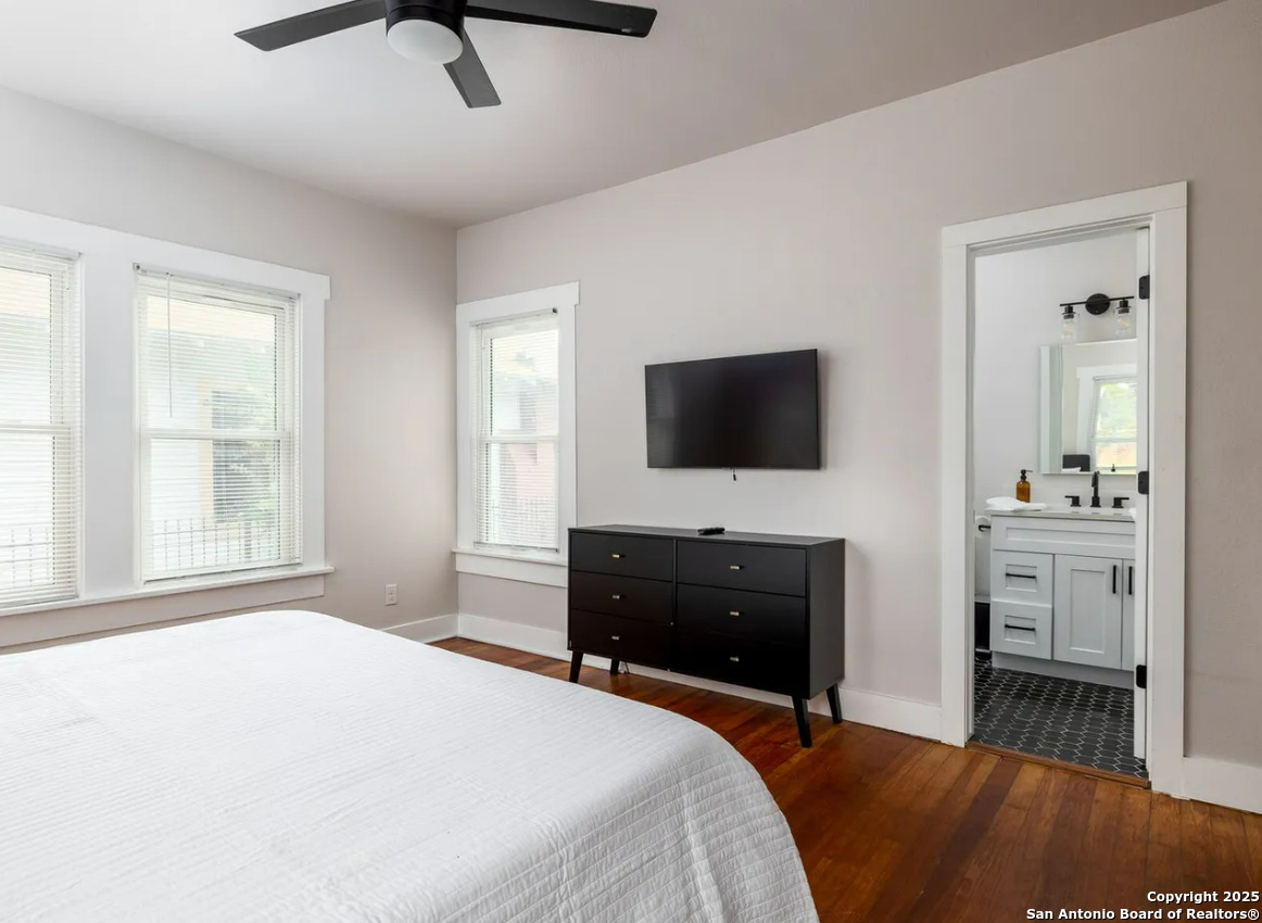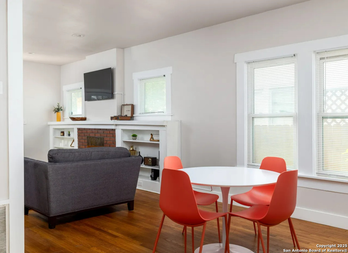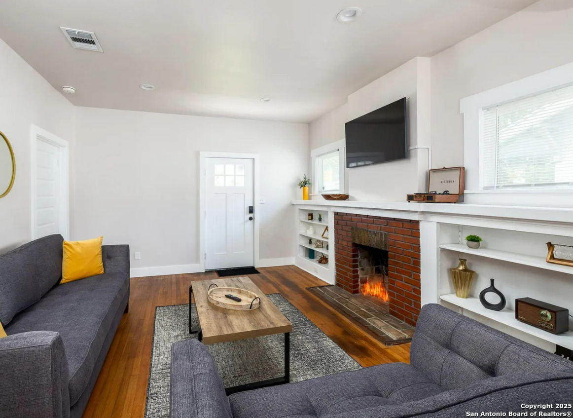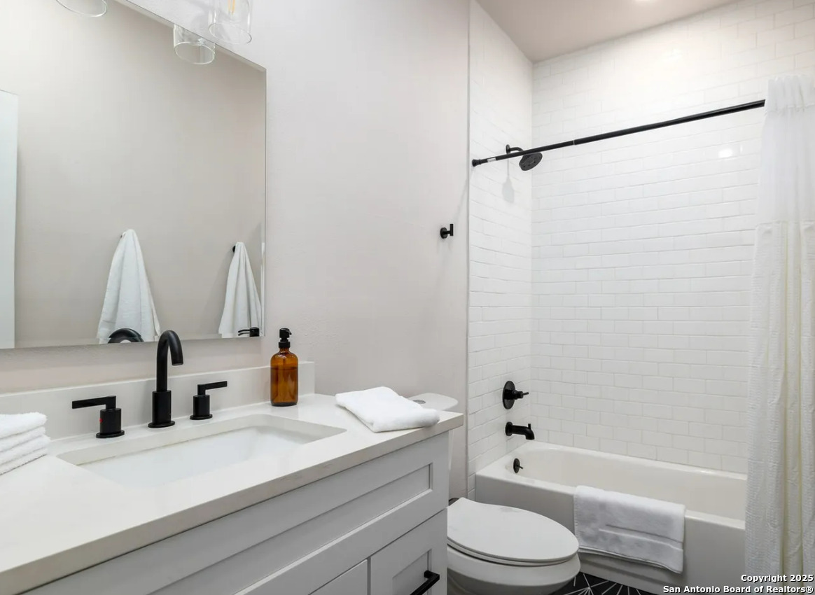 Updated and charming three-bedroom home in Tobin Hill, ideally located near all that San Antonio has to offer! The front room works as a third bedroom or home office, and the kitchen is updated with white soft-close cabinets, quartz countertops, new sink/faucet, and stainless-steel appliances. Enjoy the private backyard with a shed for extra storage or relax by the cozy fireplace. Perfectly located near the Pearl District, Brackenridge Park, Downtown, and tons of great restaurants and shops-this home is a must-see!