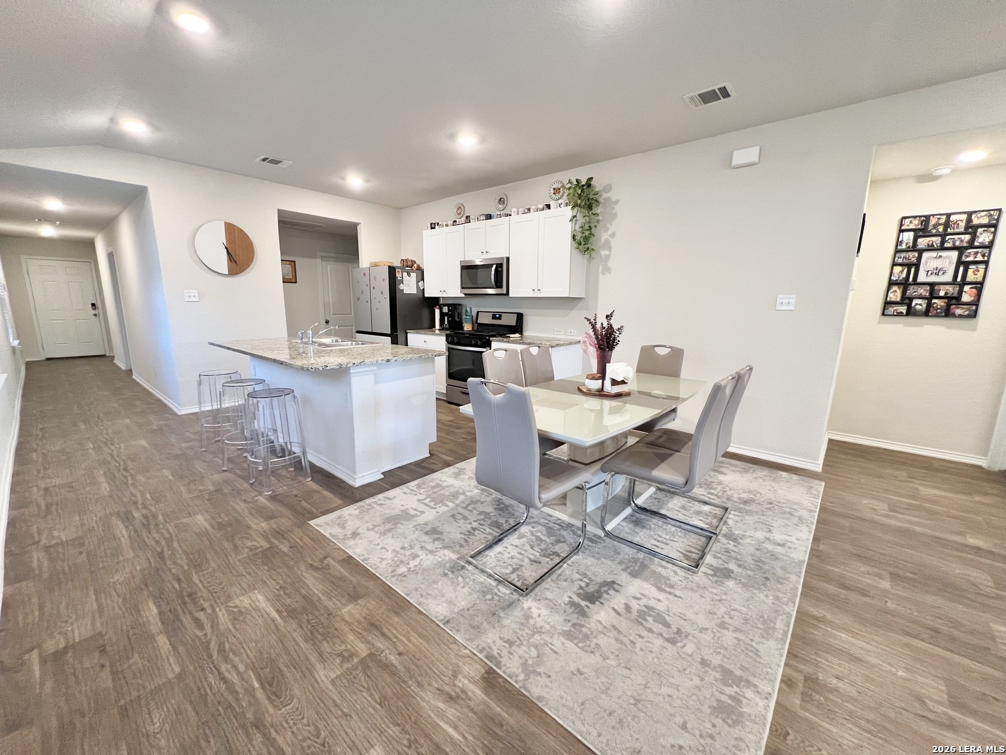 Great opportunity to rent this fairly new one-story home featuring 3 bedrooms, 2 baths, and 2-car garage. The generous front patio opens to a gourmet kitchen including granite counter tops, appliances included, gas stove and open concept floorplan with the kitchen opening to the dining and family rooms. The first bedroom features a semi-vaulted ceiling and an attractive ensuite built with grand walk-in shower and large walk-in closet. The spacious rear covered patio is built standard and is located off the family room. Additional features include sheet vinyl flooring in entry, living room, and all wet areas, and full yard landscaping and irrigation. This home includes front Doorbell, Front Door Deadbolt Lock, Home Hub, Light Switch, and Thermostat. Located in NW San Antonio near popular Alamo Ranch, Riverstone at Westpointe. You'll enjoy nearby family fun spots including Sea World, Fiesta Texas, the Casablanca movie theater and tons of shopping and dining. Conveniently located a short 15 minute drive from Lackland Air Force Base. Residents have easy access to Northside ISD schools, great amenities including pool, waterslides, & playground. Furniture rent is optional for additional $300 extra a month.