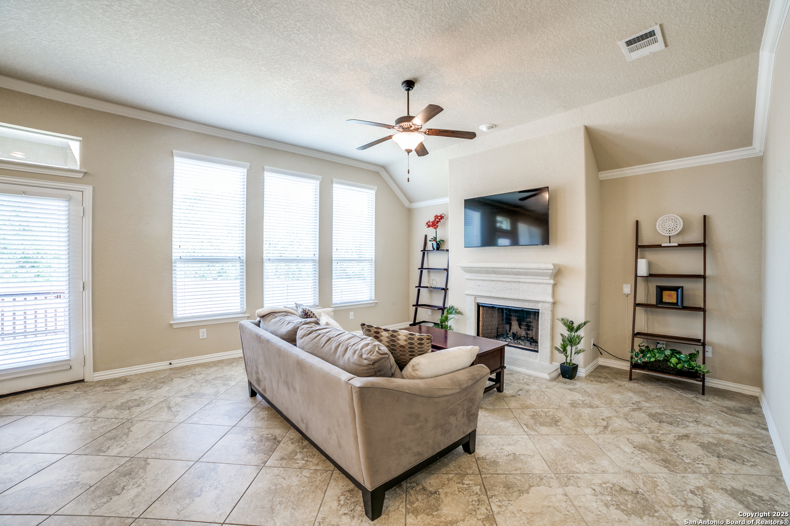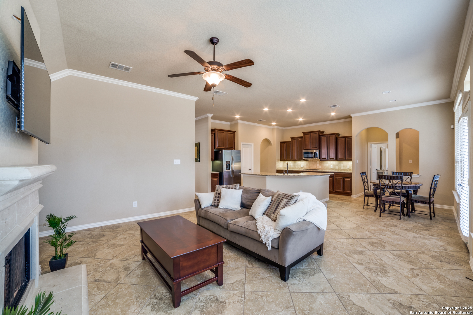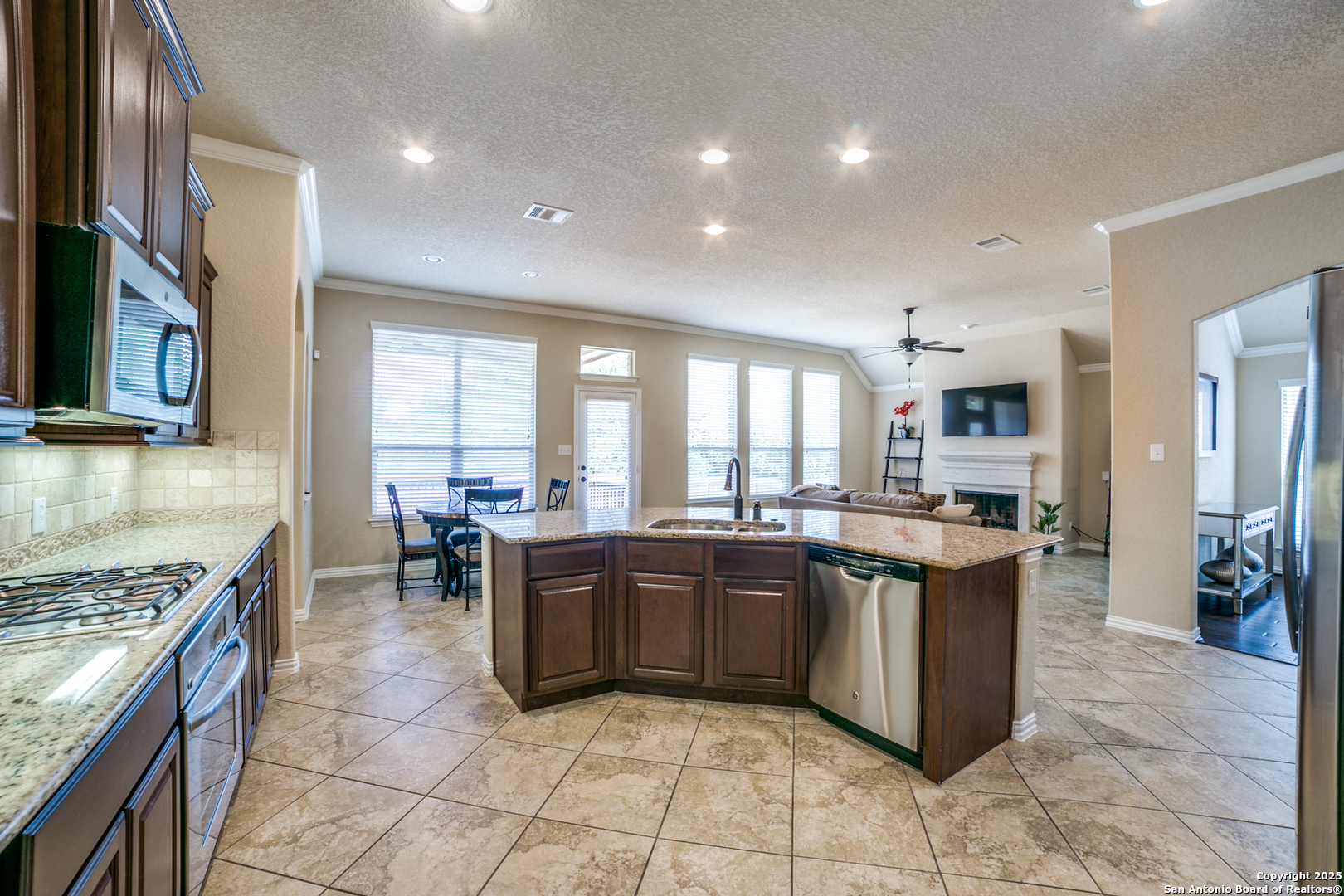 Welcome to 4522 Amos Pollard, a well-maintained 4-bedroom, 2-bath single-story home in the popular Alamo Ranch community. This open-concept floor plan offers over 2,200 square feet of comfortable living space, featuring a spacious living room with a cozy fireplace, a kitchen with modern appliances and ample cabinetry, and a private primary suite with an en-suite bath and walk-in closet. Situated on just over 0.17 acres, this greenbelt lot offers added privacy and includes a 2-car garage and a covered back patio, ready for your personal touch. Residents enjoy access to community pools, parks, and walking trails, with top-rated schools, shopping, and dining just minutes away.