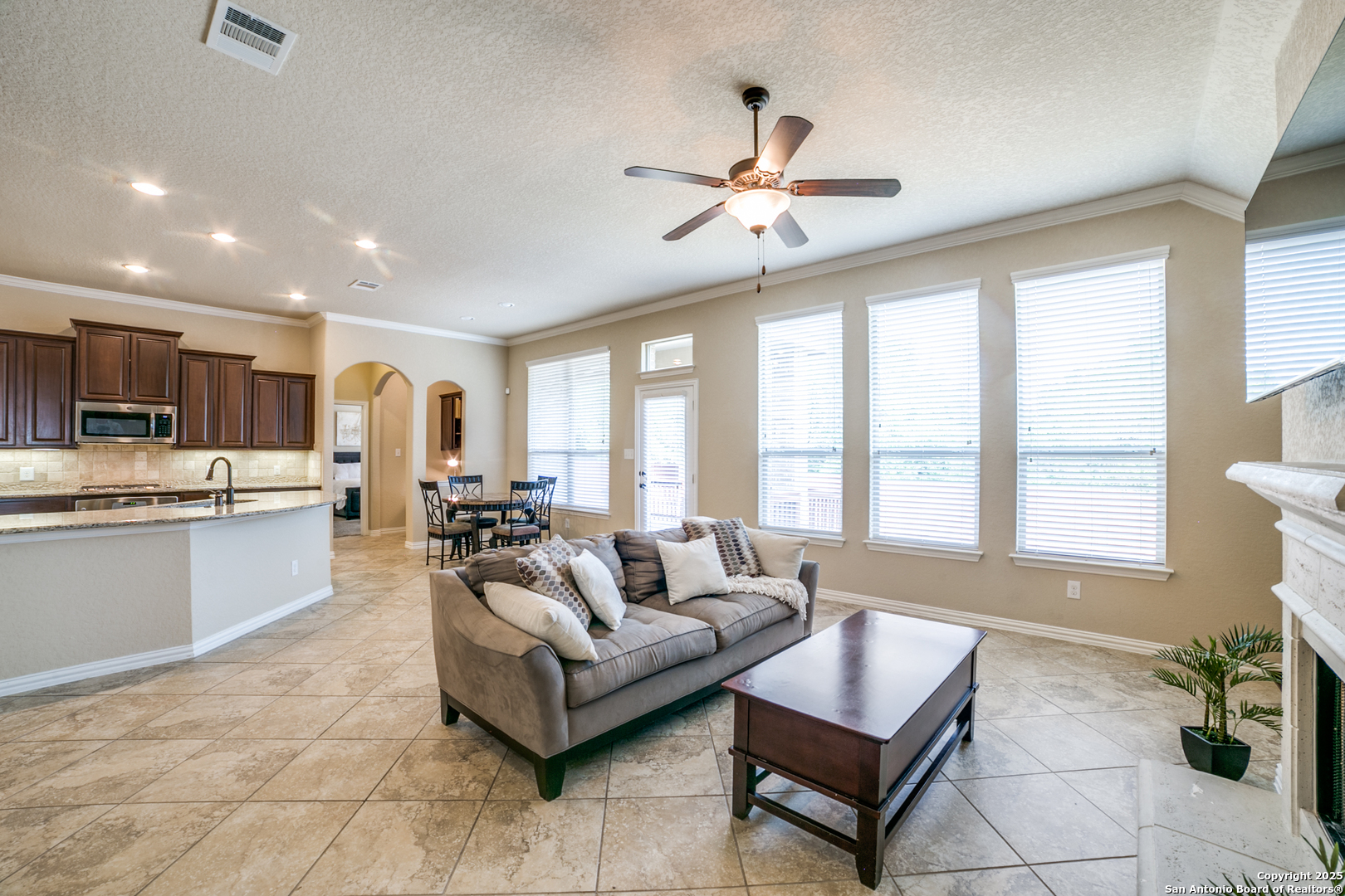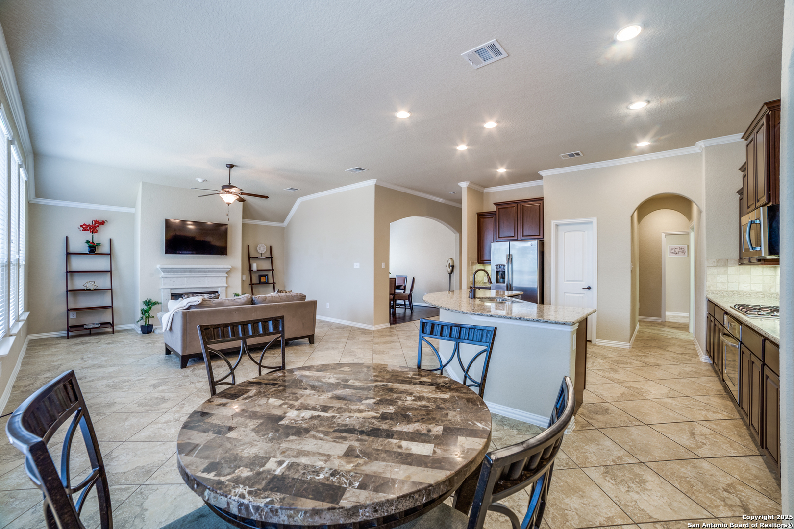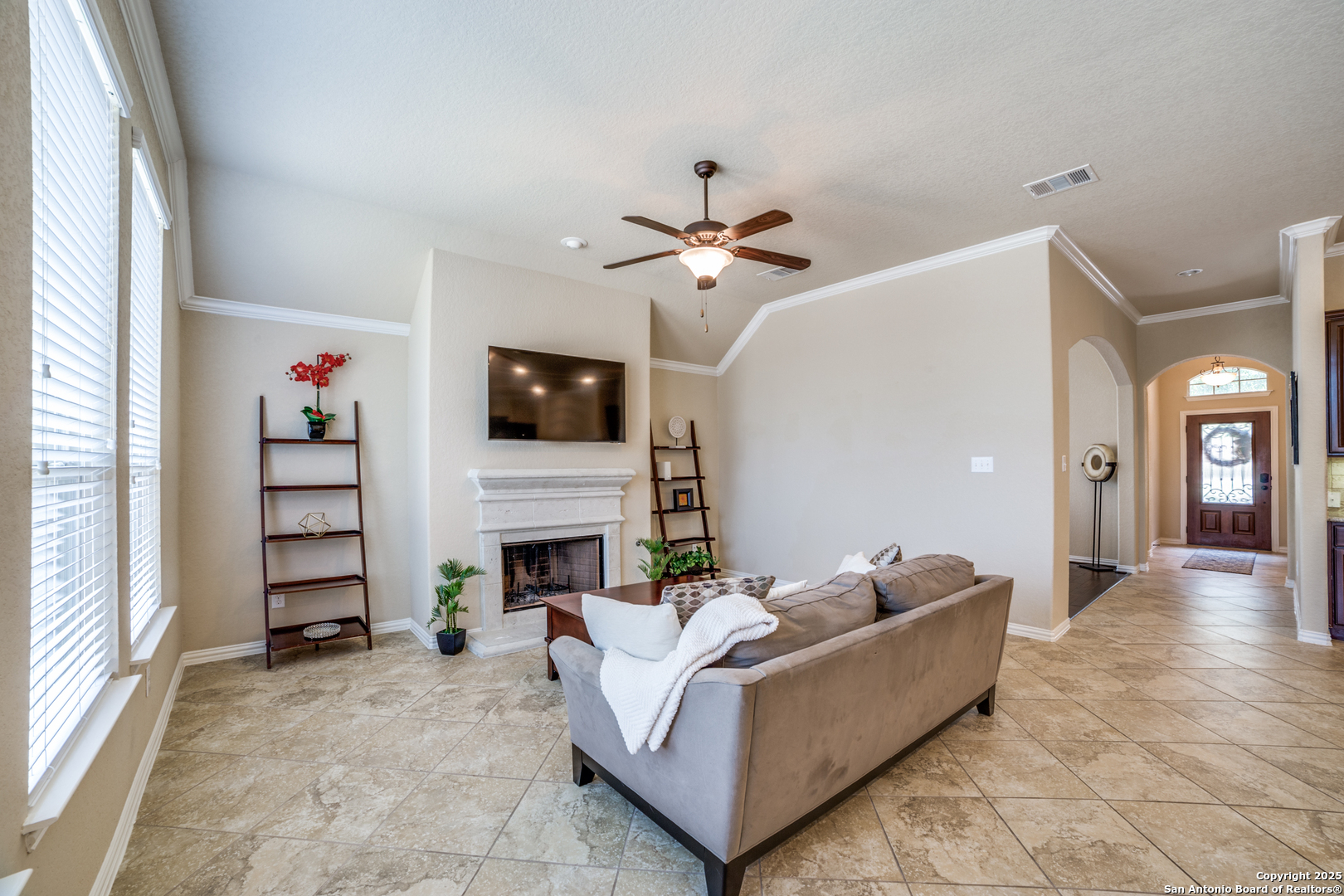 Welcome to 4522 Amos Pollard, a well-maintained 4-bedroom, 2-bath single-story home in the popular Alamo Ranch community. This open-concept floor plan offers over 2,200 square feet of comfortable living space, featuring a spacious living room with a cozy fireplace, a kitchen with modern appliances and ample cabinetry, and a private primary suite with an en-suite bath and walk-in closet. Situated on just over 0.17 acres, this greenbelt lot offers added privacy and includes a 2-car garage and a covered back patio, ready for your personal touch. Residents enjoy access to community pools, parks, and walking trails, with top-rated schools, shopping, and dining just minutes away.