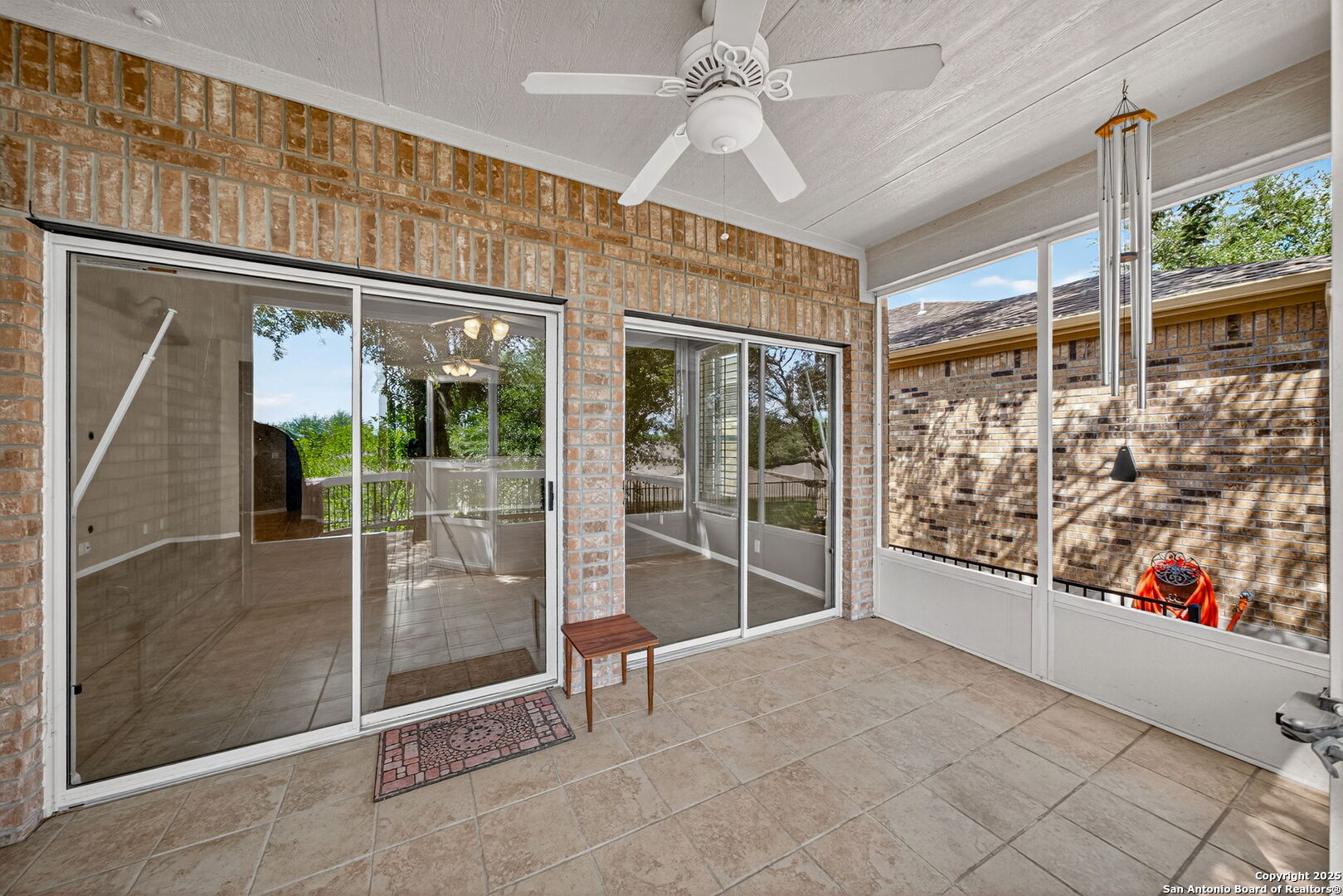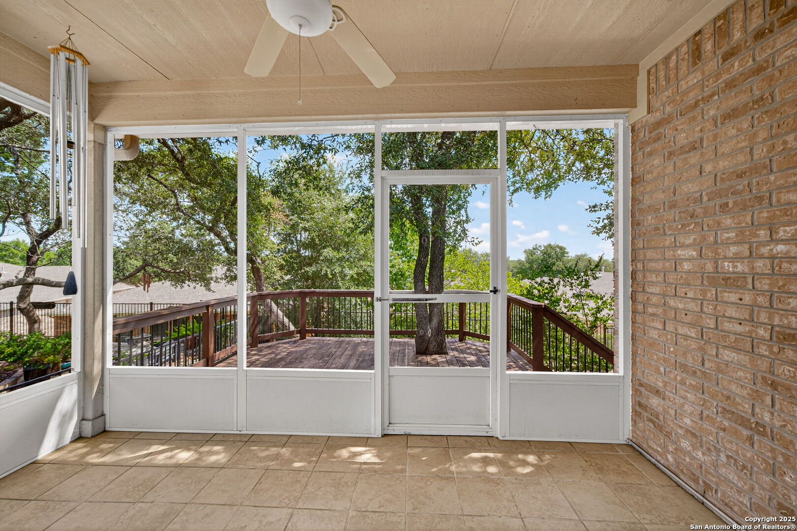 Incredible price for a home this clean with this many upgrades and features. Welcome to the 55+ Community of Hill Country Retreat! This sought-after Surrey Crest model on a quiet cul-de-sac offers 2 bedrooms, 2 baths, and an office. The kitchen features gas cooking, Corian countertops, ample cabinetry, and a large island. Refrigerator and plantation shutters convey. Open living area with tile floors and a wall of windows overlooking treetop views. Primary suite with custom closet, dual vanities, tub & shower. Guest bath includes solar tube. Relax on the screened-in patio or back deck. Updates include new roof (2020), water softener (2021), and complete HVAC system (2024). Garage includes 3 heavy-duty storage racks. Enjoy resort-style amenities: clubhouse, fitness center, indoor/outdoor pools, tennis, pickleball & scenic walking trails.