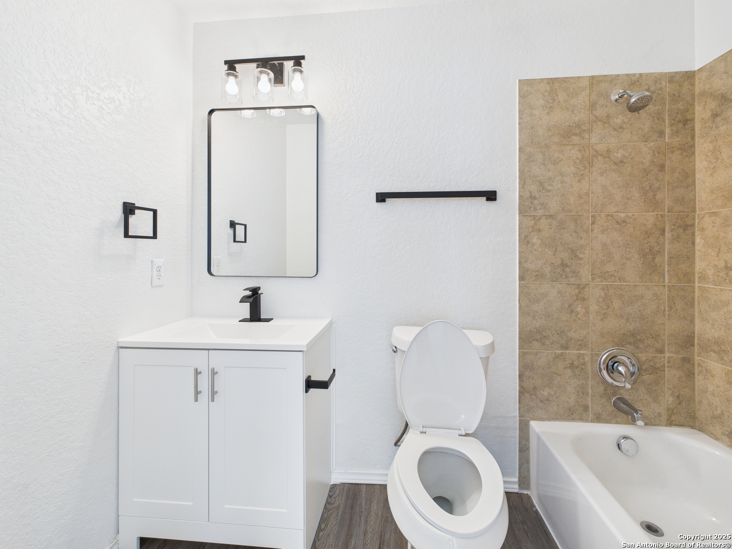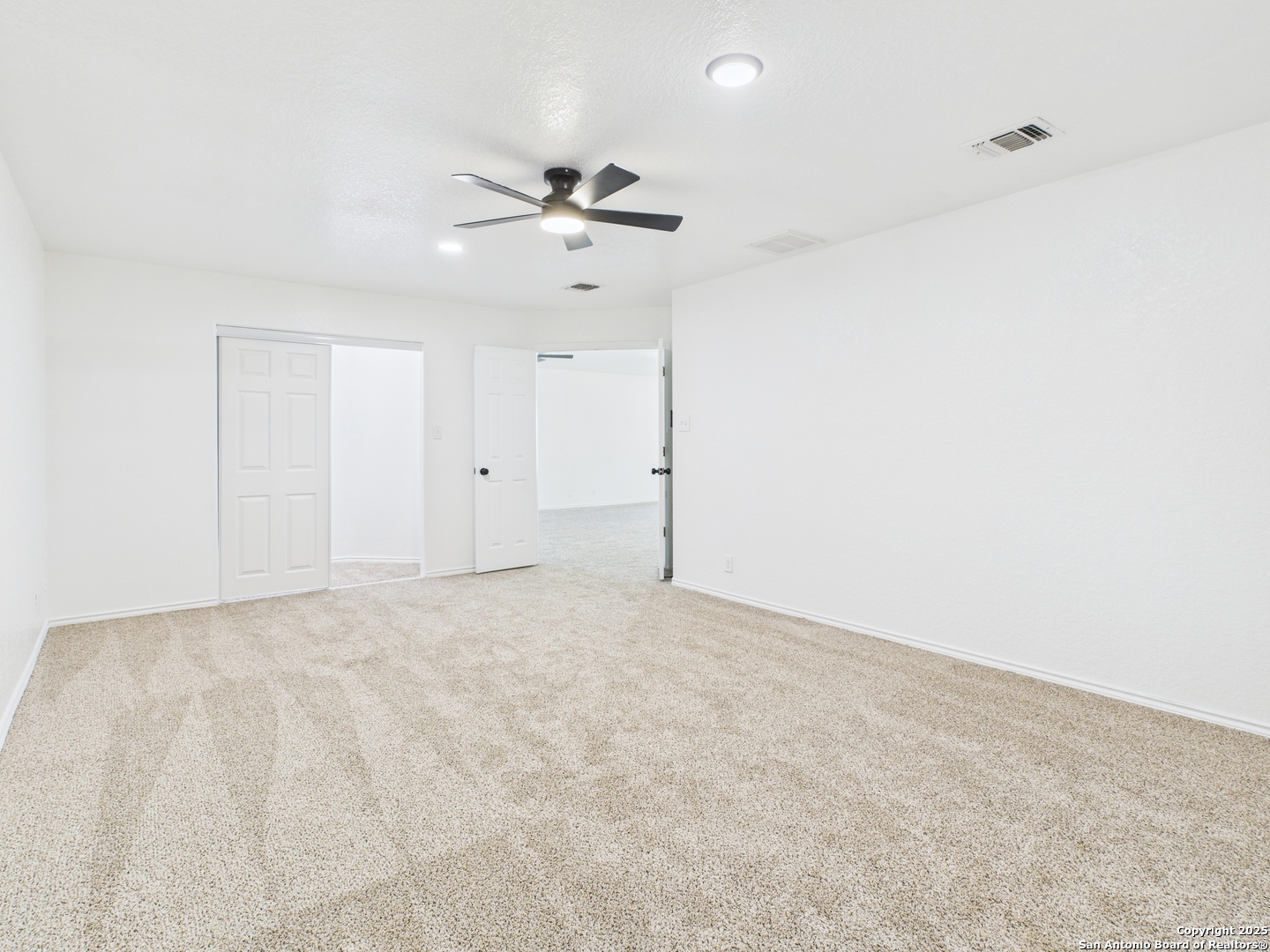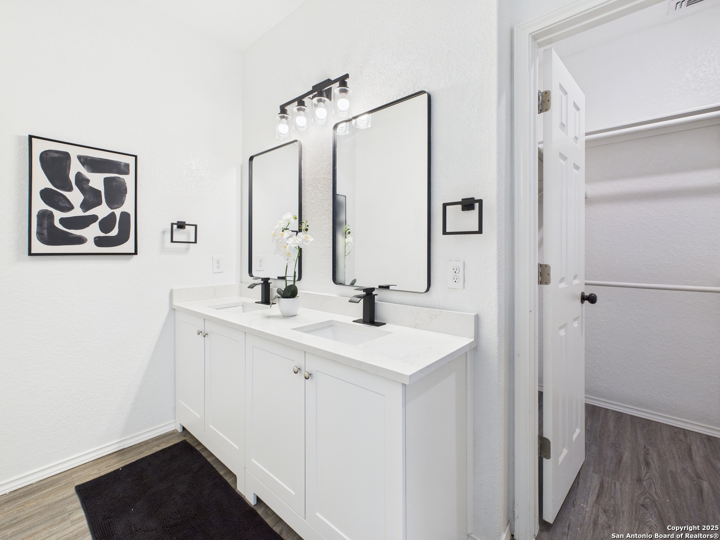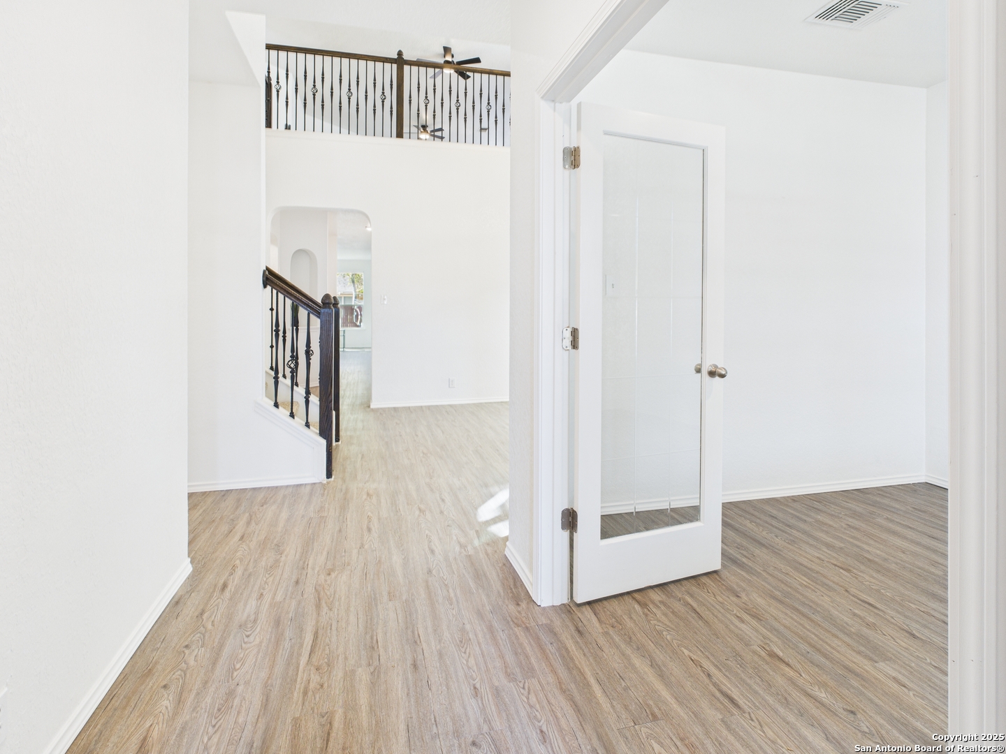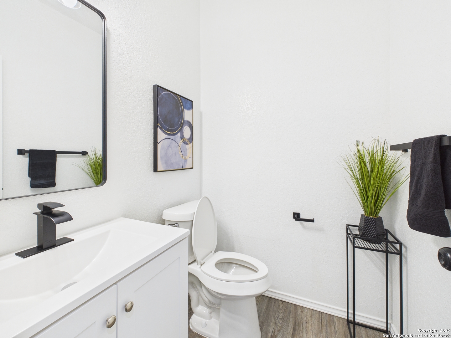 Welcome to this beautifully updated 5-bedroom, 3.5-bathroom home located in the desirable Republic Oaks subdivision. This spacious residence offers a flexible and functional layout with multiple living areas and thoughtful upgrades throughout. The main level features a generous primary suite complete with dual walk-in closets, a double vanity, and a walk-in shower, all accented by modern finishes and laminate flooring. The open-concept kitchen boasts white cabinetry, stainless steel appliances, and flows seamlessly into the living and dining areas-ideal for everyday living and entertaining. A bright sunroom offers the perfect space for relaxing or working from home, while upstairs you'll find a large game room and four additional bedrooms, one of which has a private en-suite bathroom-perfect for multigenerational living or guests. Throughout the home, updated light fixtures, ceiling fans, and stylish bathrooms with matte black hardware and white vanities add to the modern appeal. Step outside to enjoy a screened-in patio, a second-story balcony, and a private backyard shaded by mature trees, complete with a cozy firepit area-perfect for outdoor gatherings. With easy access to major highways, military bases, and shopping, this move-in-ready home truly has it all.