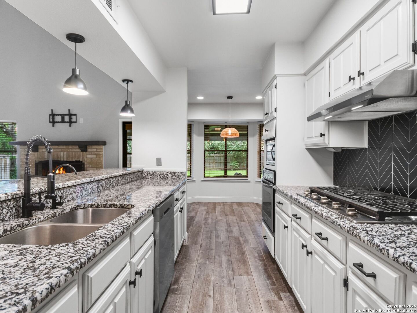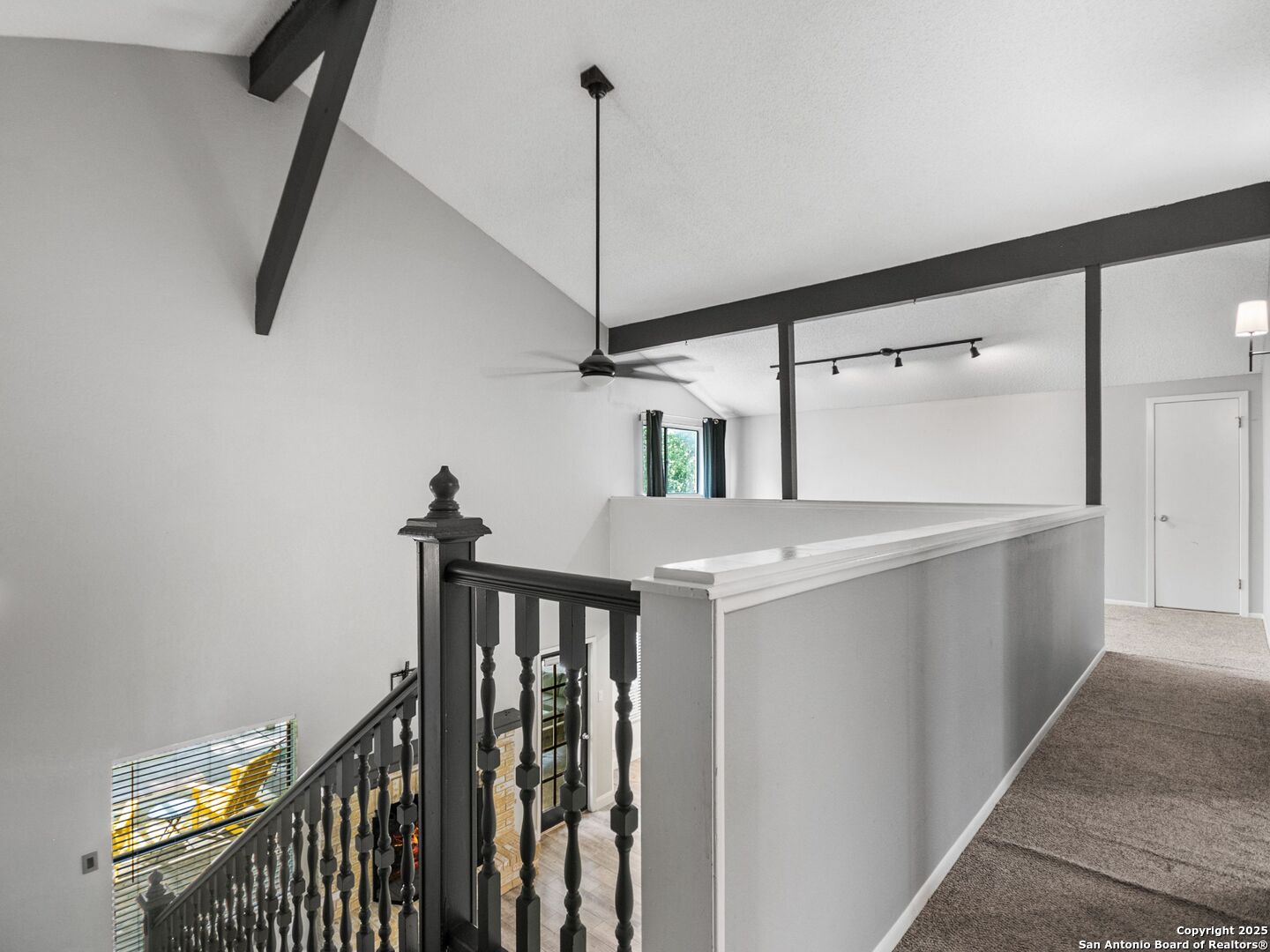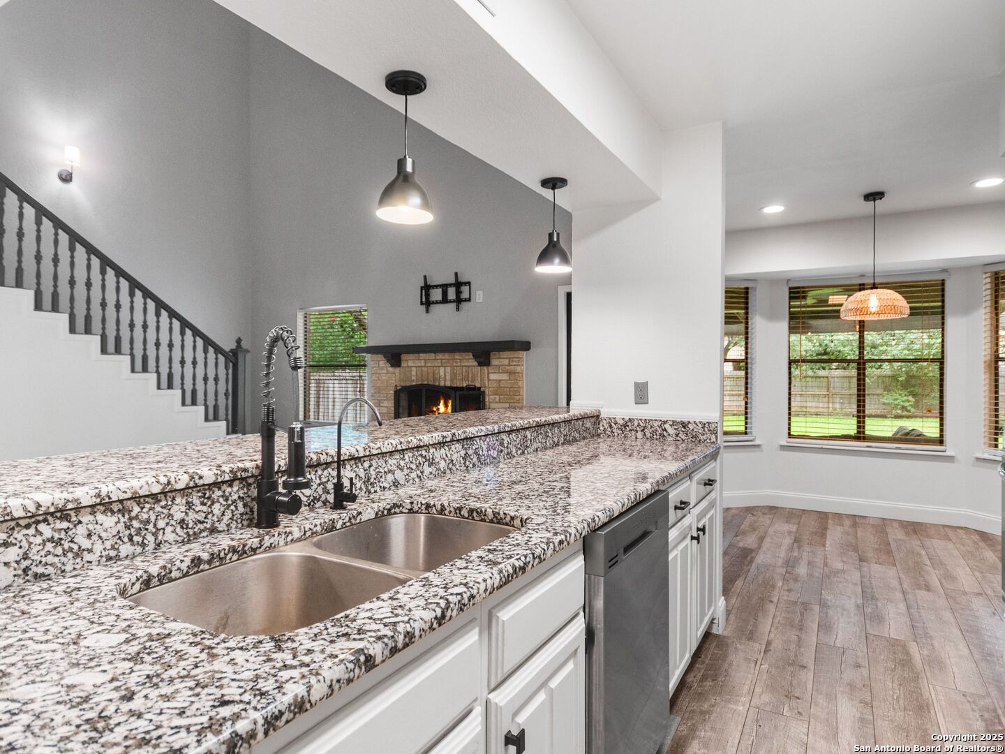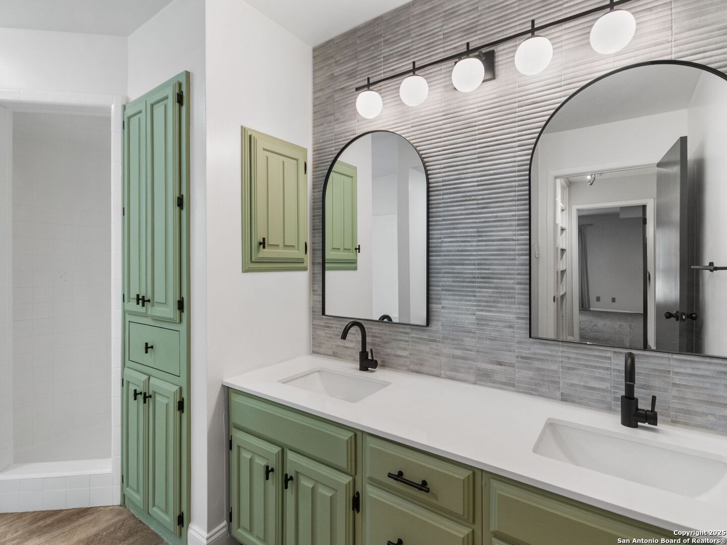 This beautifully updated property is perfectly situated in a well-established, tree-lined neighborhood with easy access to I-10 and Loop 1604. Enjoy the best of both worlds-peaceful residential living just minutes from major employers and amenities, including the Medical Center, USAA, Valero, UTSA, top-rated NISD schools, dining, and shopping. Inside, you're greeted by soaring 25-foot ceilings in the spacious living room, creating an open and airy feel. The home features a flexible floor plan designed to adapt to your lifestyle-ideal for growing families, remote work, or multi-use living spaces. The main living areas are outfitted with stylish wood-look ceramic tile flooring, combining durability with a warm, modern aesthetic. The kitchen is a chef's delight, featuring granite countertops, updated stainless steel appliances, ample cabinet space, and a layout perfect for entertaining or casual dining. The open-concept design allows easy flow from the kitchen to the living and dining areas. Additional updates include a new HVAC system installed in 2024, ensuring comfort and energy efficiency year-round. The finished garage offers a pristine epoxy floor, additional storage, and dedicated shop space-perfect for hobbies, home projects, or a fitness area. Step outside to a generously sized backyard with endless potential. There's ample room to install a pool, create an outdoor kitchen, or expand your garden. A large patio offers the perfect spot for gatherings, barbecues, or relaxing under the stars. The sprinkler system keeps your lawn and garden thriving with ease. The roof was replaced in 2016, adding long-term value and peace of mind. Every detail of this home has been lovingly maintained and thoughtfully upgraded. Whether you're looking for location, space, or quality upgrades, this home checks all the boxes. Don't miss this rare opportunity to own a move-in-ready gem in one of San Antonio's most convenient and established neighborhoods.