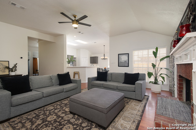 The home you have been waiting for is here! This Shavano Beauty has tall ceilings, semi open floorpan with two living rooms and two dining areas as well as a large kitchen with 4 bedrooms and 2 baths and plenty of storage. The front living can serve as a flex room to fit any families needs. The bedrooms are split with the bedroom wing that has 3 secondary bedrooms and a full bath along with a large laundry room and then the primary bedroom is oversized and in the back of the home with a large updated en suite bath and plenty of storage. The property has a private driveway perfect for kids to play away from the Road and a nice backyard for all to enjoy. Schedule your showing today!
