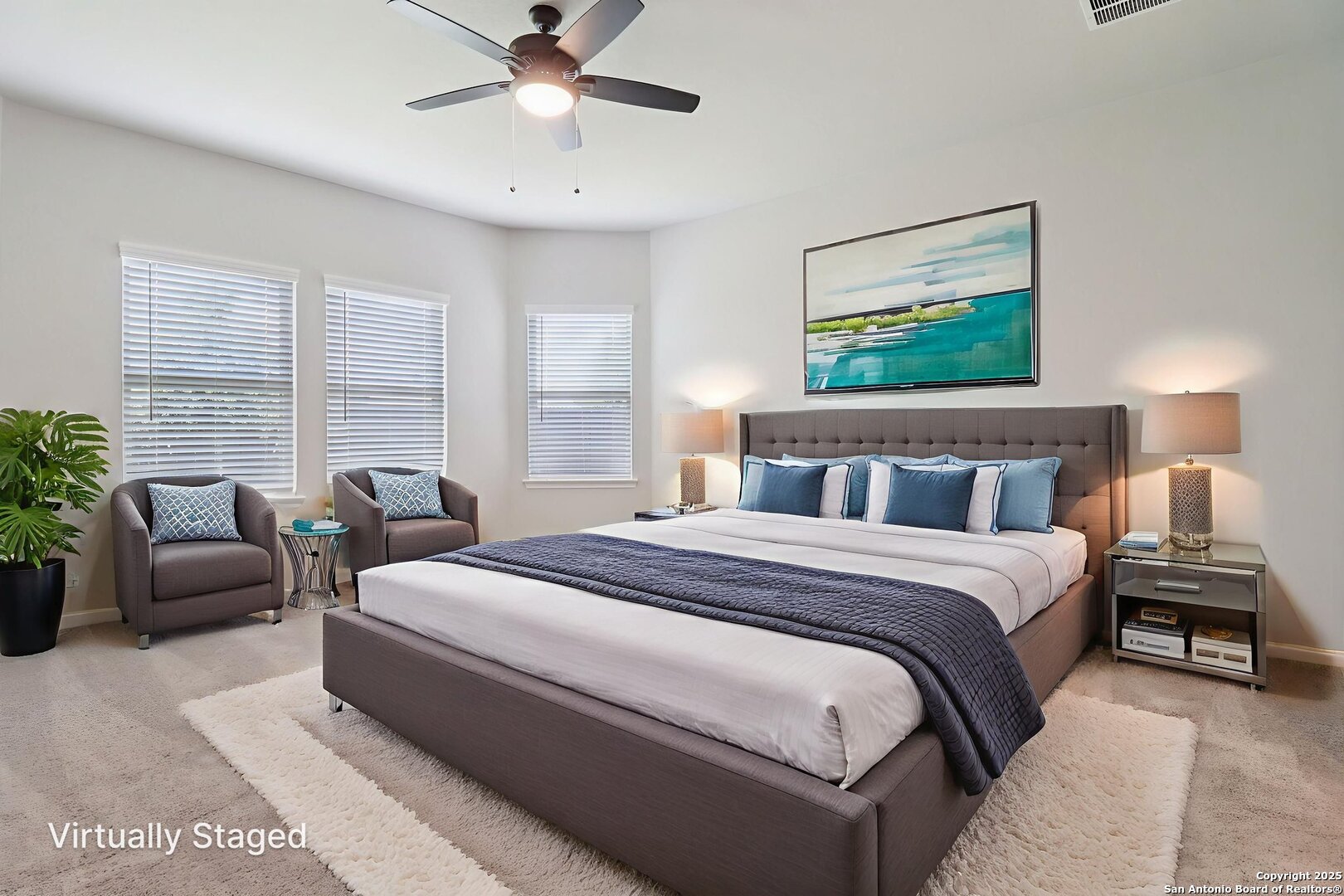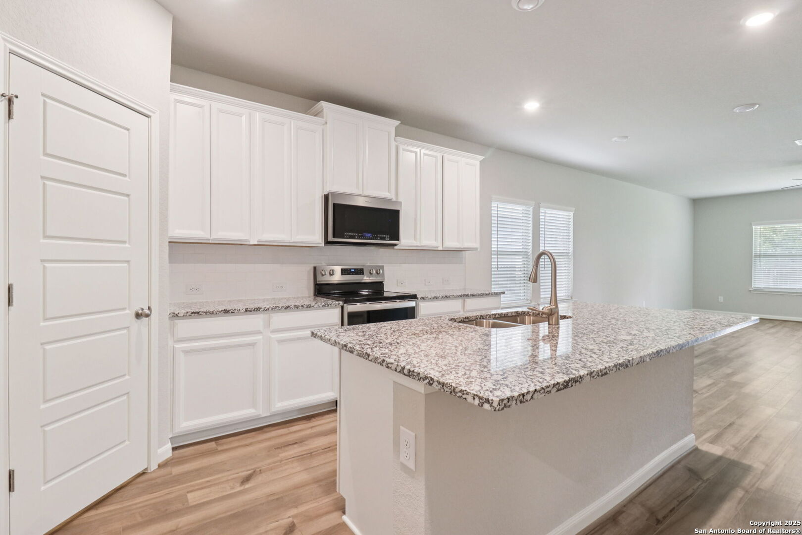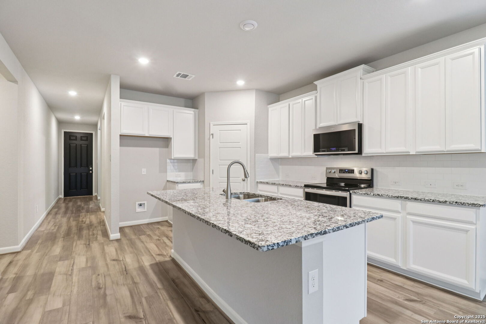 Brand NEW energy-efficient home ready NOW! Work from home in the quiet second-story study or transform it into the perfect movie-watching nook. Linen cabinets with off-white grey granite countertops, grey brown EVP flooring and warm grey brown carpet in our Serene package. Remington Ranch offers beautiful surroundings the whole family can enjoy. Farmhouse and hill-country style elevations will line the streets in this gorgeous community. With convenient access to major highways, shopping, dining and entertainment.