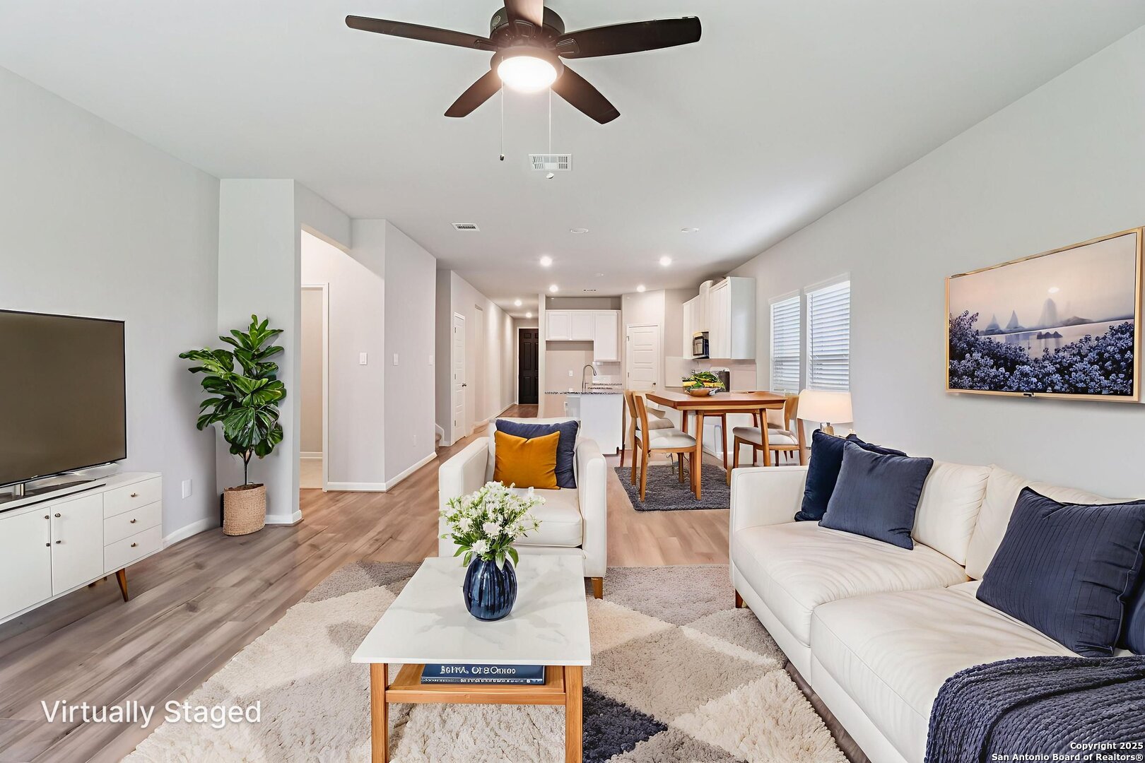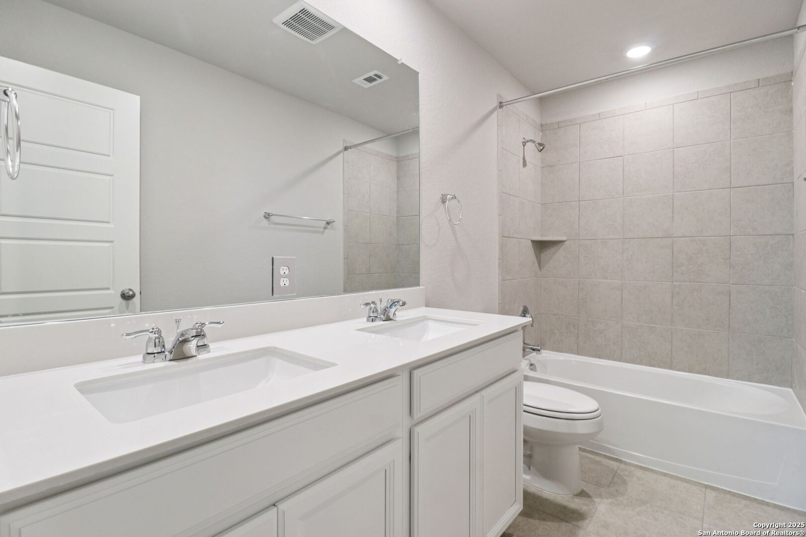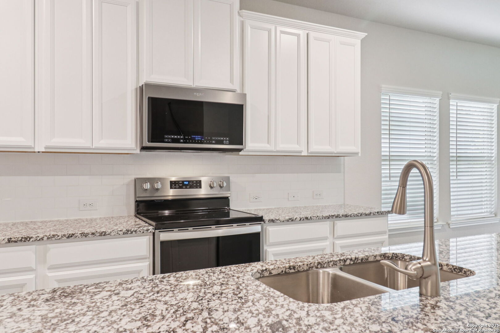 Brand NEW energy-efficient home ready NOW! Work from home in the quiet second-story study or transform it into the perfect movie-watching nook. Linen cabinets with off-white grey granite countertops, grey brown EVP flooring and warm grey brown carpet in our Serene package. Remington Ranch offers beautiful surroundings the whole family can enjoy. Farmhouse and hill-country style elevations will line the streets in this gorgeous community. With convenient access to major highways, shopping, dining and entertainment.