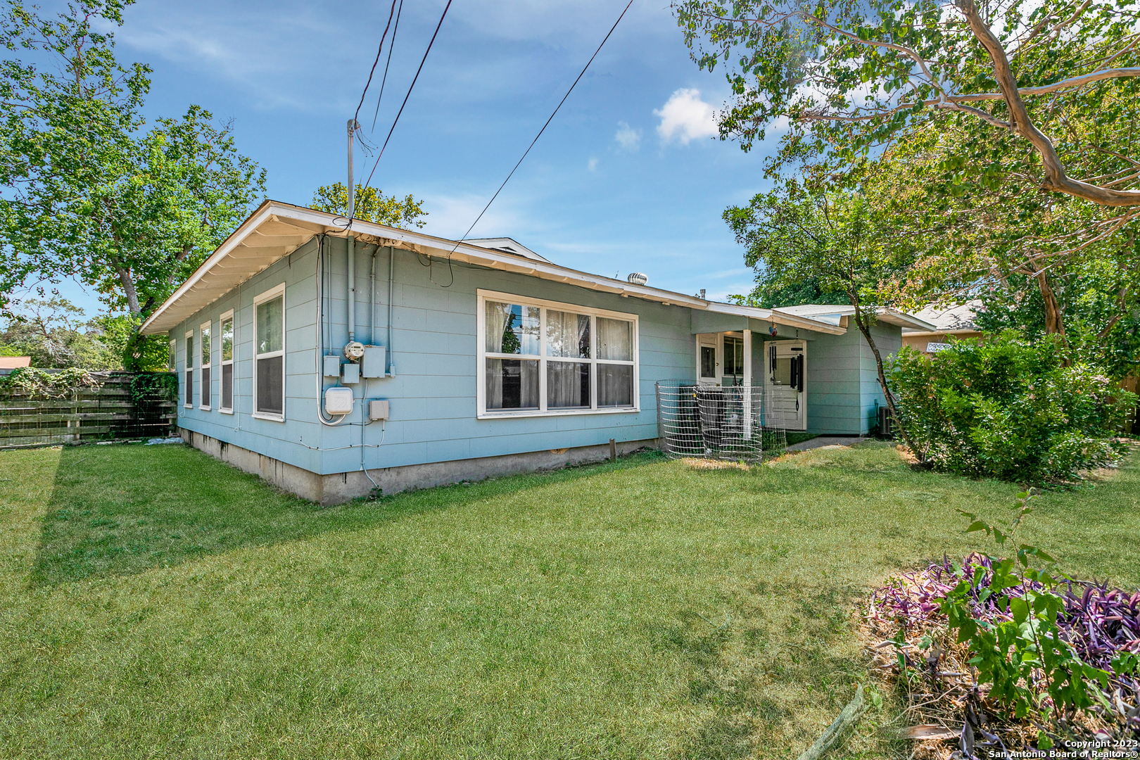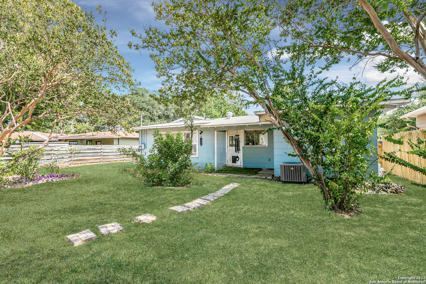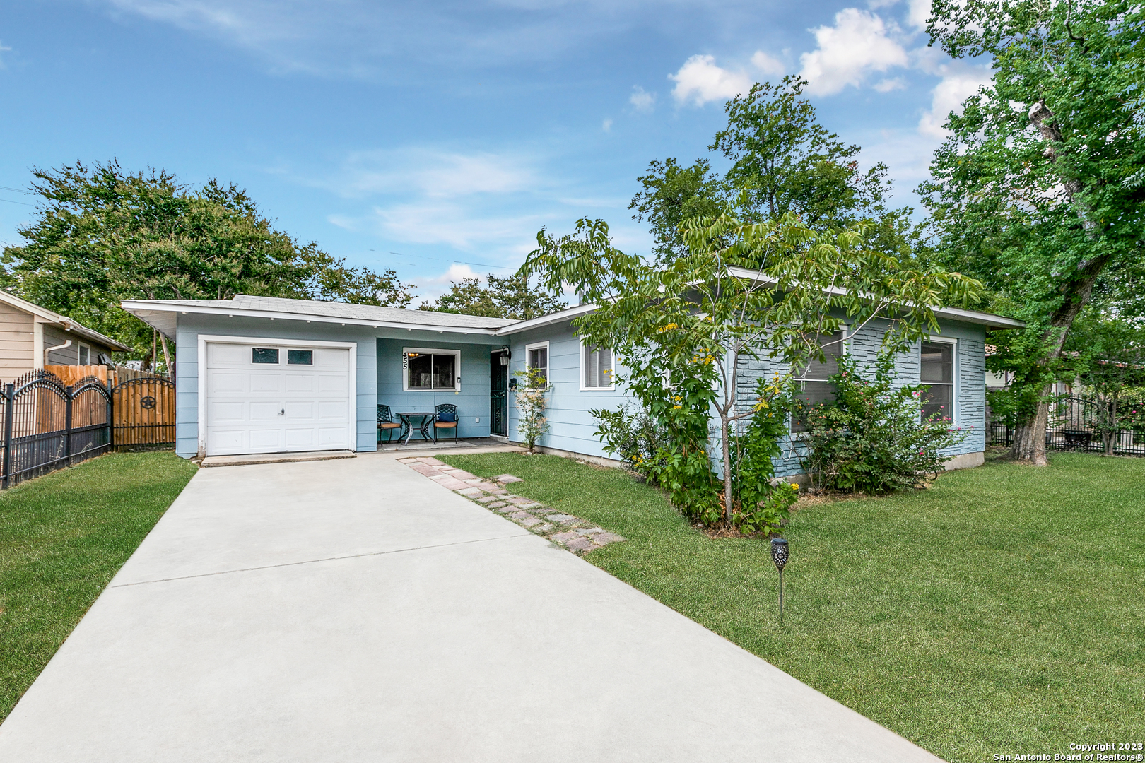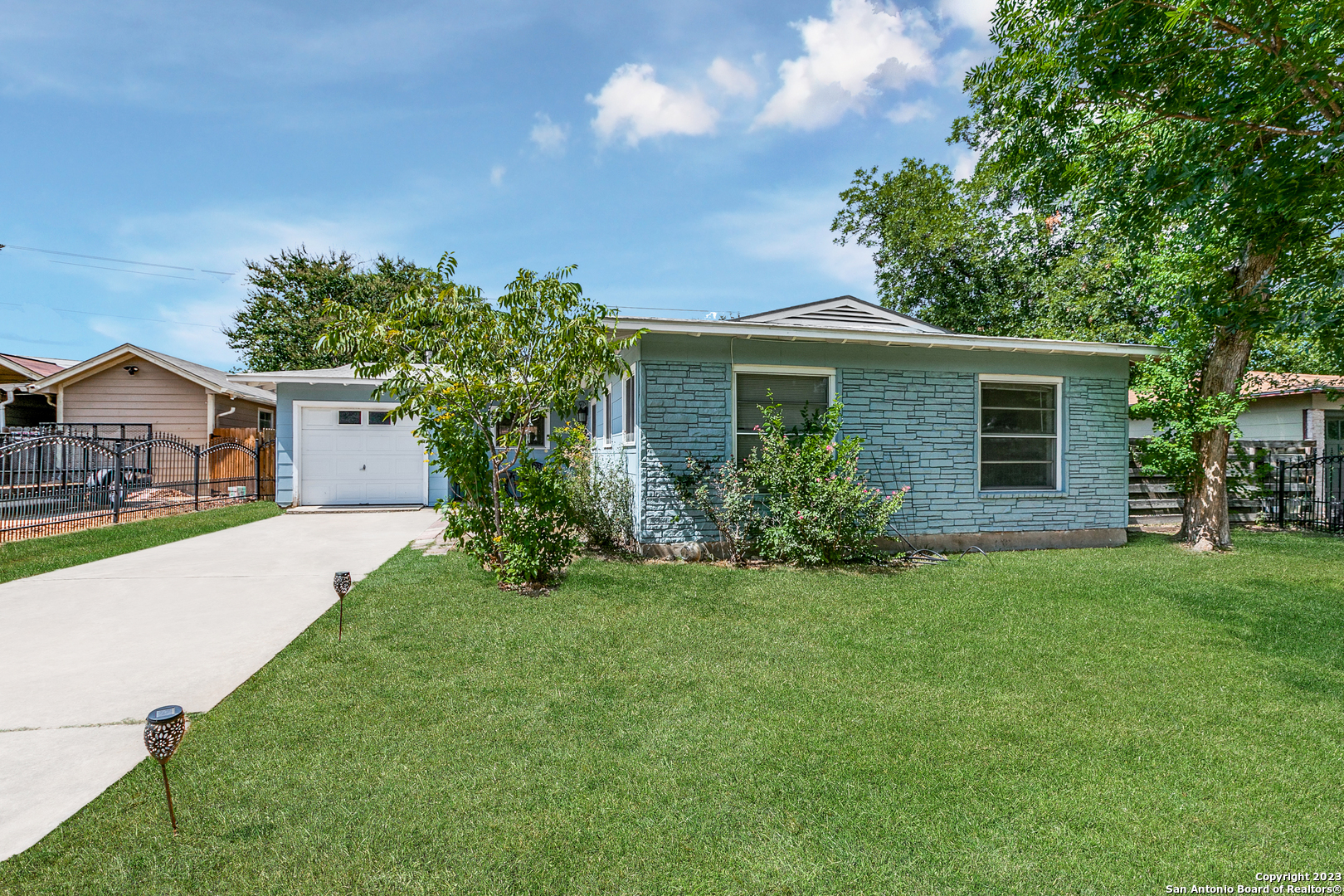 Incredibly Welcoming One-Story Home with Fully Fenced-In Yard! Conveniently situated near excellent schools (North East ISD), this 3BR/1BA, 1,066sqft property offers inviting charm with an attractive exterior color scheme, vibrant greenery, a spacious 7,800+sqft lot, and a lovely wrought-iron electric privacy gate. Originally built in 1953, the home features an iron front door, beautiful hardwood flooring, an openly flowing layout, soft natural light, and a sizeable living room. Envision sharing meals with loved ones in the fully-equipped and updated kitchen, which has wood cabinetry, ample countertops, new stove (gas lines added), a newer refrigerator (2020), porcelain tile, stainless-steel sink, farmhouse sink, ceiling fan, and an adjoining dining area. Three bedrooms are abundantly sized with dedicated closets. Affording exciting retro vibes, the full bathroom includes red tile work, a medicine cabinet, and a shower/tub combo. Step outdoors into the fully fenced-in yard to find an entertainment-friendly atmosphere with plenty of room for future customization, grilling, and partying. For additional fun, Downtown San Antonio is just 7.2-miles away. Experience the city with fabulous attractions, such as the Majestic Theatre (7.1-miles), San Antonio Museum of Art (7.6-miles), and San Antonio River Walk (9.7-miles). Other features: attached 1-car garage, laundry area, 6 months old A/C, near shopping, restaurants, I-410, I-10, Methodist Hospital, and entertainment, and much more! Call for a tour!