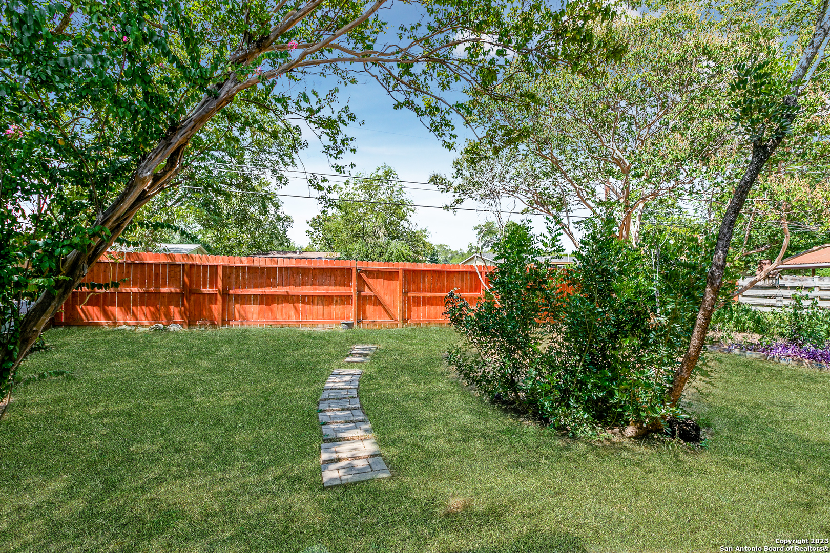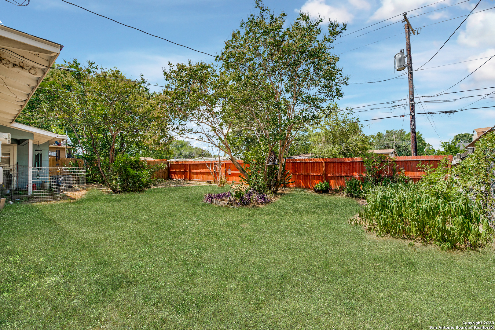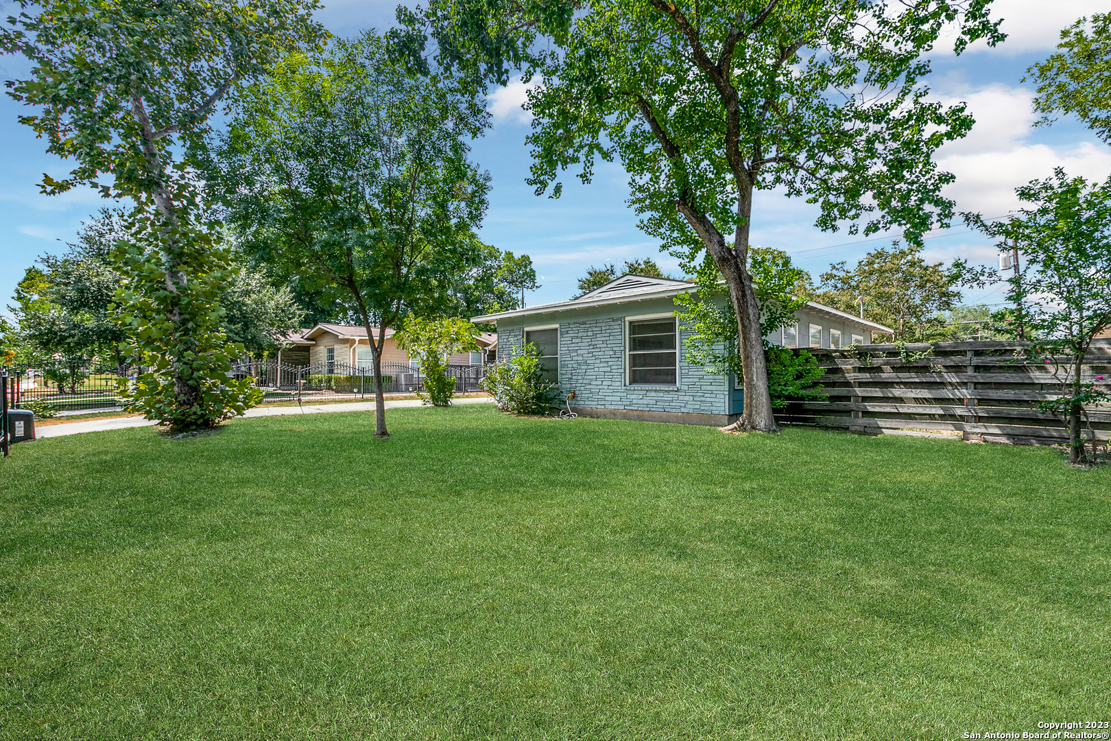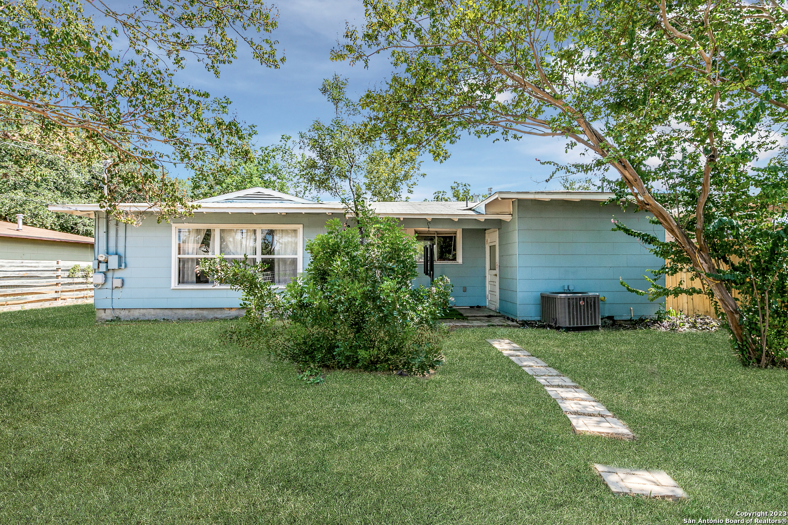 Incredibly Welcoming One-Story Home with Fully Fenced-In Yard! Conveniently situated near excellent schools (North East ISD), this 3BR/1BA, 1,066sqft property offers inviting charm with an attractive exterior color scheme, vibrant greenery, a spacious 7,800+sqft lot, and a lovely wrought-iron electric privacy gate. Originally built in 1953, the home features an iron front door, beautiful hardwood flooring, an openly flowing layout, soft natural light, and a sizeable living room. Envision sharing meals with loved ones in the fully-equipped and updated kitchen, which has wood cabinetry, ample countertops, new stove (gas lines added), a newer refrigerator (2020), porcelain tile, stainless-steel sink, farmhouse sink, ceiling fan, and an adjoining dining area. Three bedrooms are abundantly sized with dedicated closets. Affording exciting retro vibes, the full bathroom includes red tile work, a medicine cabinet, and a shower/tub combo. Step outdoors into the fully fenced-in yard to find an entertainment-friendly atmosphere with plenty of room for future customization, grilling, and partying. For additional fun, Downtown San Antonio is just 7.2-miles away. Experience the city with fabulous attractions, such as the Majestic Theatre (7.1-miles), San Antonio Museum of Art (7.6-miles), and San Antonio River Walk (9.7-miles). Other features: attached 1-car garage, laundry area, 6 months old A/C, near shopping, restaurants, I-410, I-10, Methodist Hospital, and entertainment, and much more! Call for a tour!