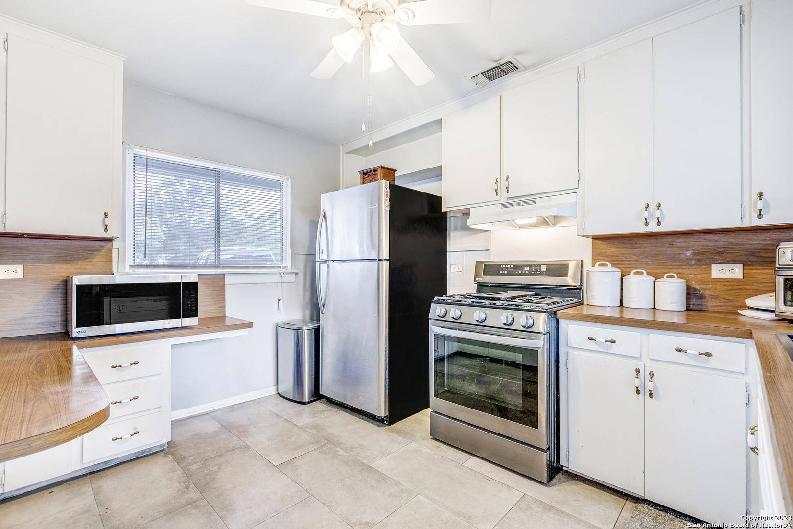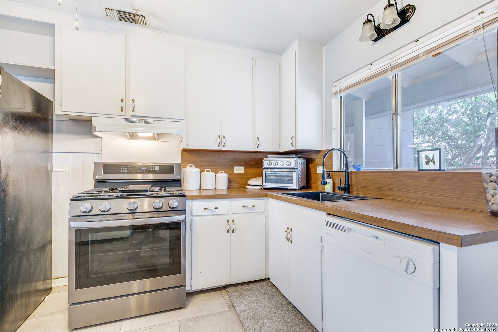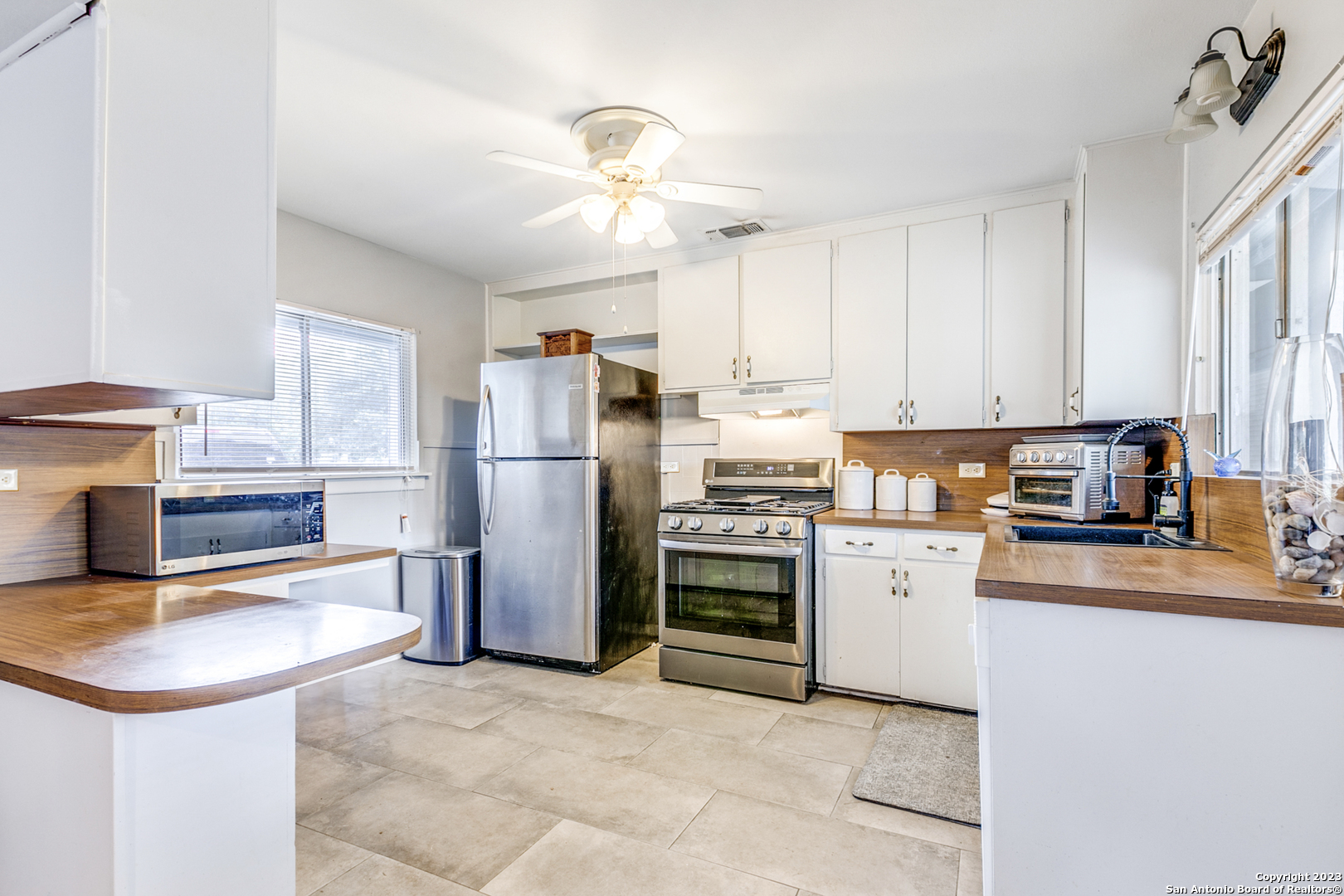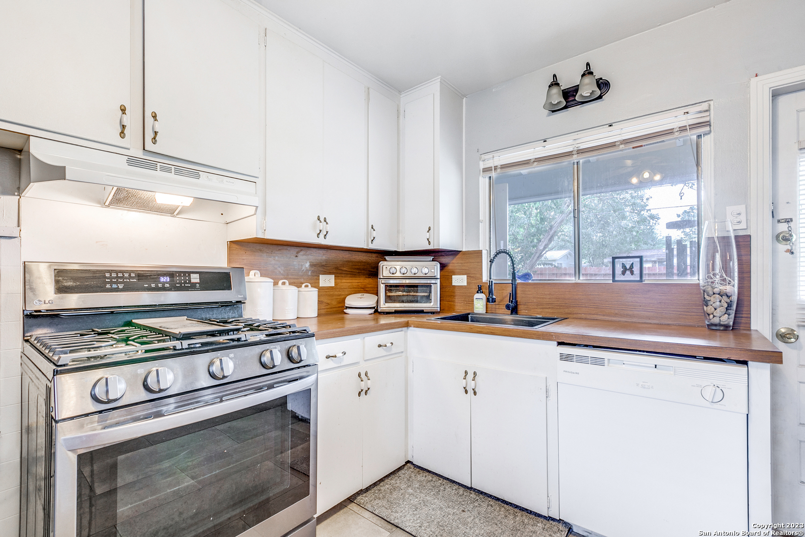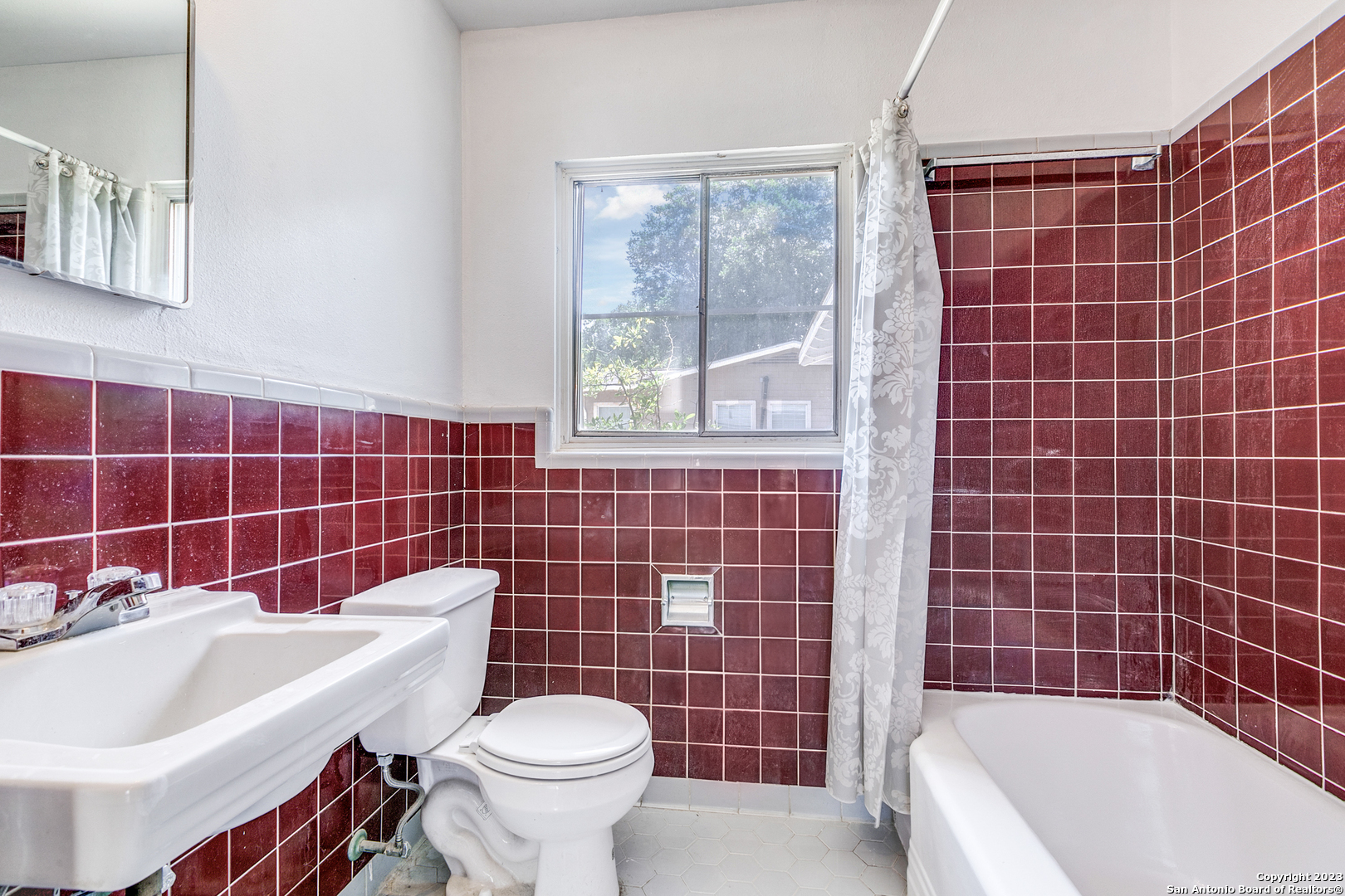 Incredibly Welcoming One-Story Home with Fully Fenced-In Yard! Conveniently situated near excellent schools (North East ISD), this 3BR/1BA, 1,066sqft property offers inviting charm with an attractive exterior color scheme, vibrant greenery, a spacious 7,800+sqft lot, and a lovely wrought-iron electric privacy gate. Originally built in 1953, the home features an iron front door, beautiful hardwood flooring, an openly flowing layout, soft natural light, and a sizeable living room. Envision sharing meals with loved ones in the fully-equipped and updated kitchen, which has wood cabinetry, ample countertops, new stove (gas lines added), a newer refrigerator (2020), porcelain tile, stainless-steel sink, farmhouse sink, ceiling fan, and an adjoining dining area. Three bedrooms are abundantly sized with dedicated closets. Affording exciting retro vibes, the full bathroom includes red tile work, a medicine cabinet, and a shower/tub combo. Step outdoors into the fully fenced-in yard to find an entertainment-friendly atmosphere with plenty of room for future customization, grilling, and partying. For additional fun, Downtown San Antonio is just 7.2-miles away. Experience the city with fabulous attractions, such as the Majestic Theatre (7.1-miles), San Antonio Museum of Art (7.6-miles), and San Antonio River Walk (9.7-miles). Other features: attached 1-car garage, laundry area, 6 months old A/C, near shopping, restaurants, I-410, I-10, Methodist Hospital, and entertainment, and much more! Call for a tour!