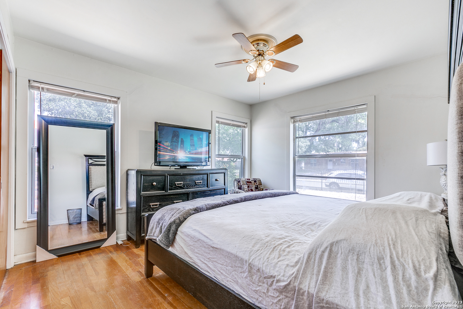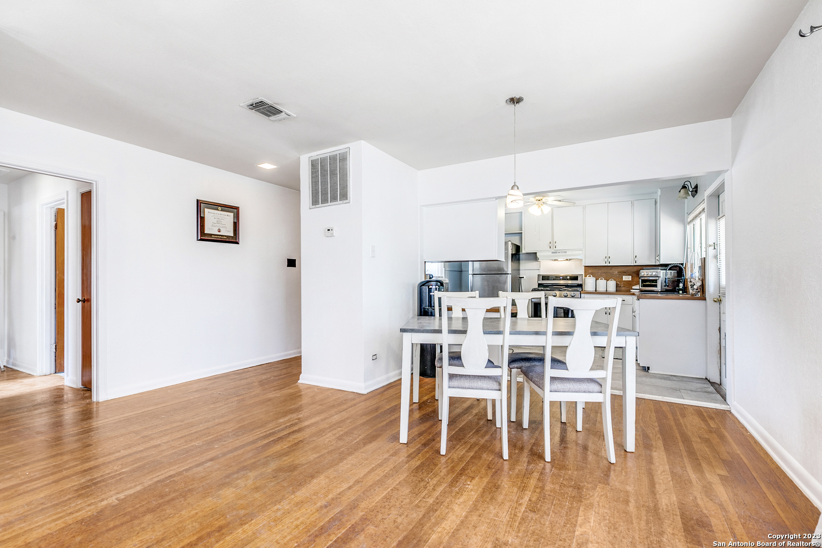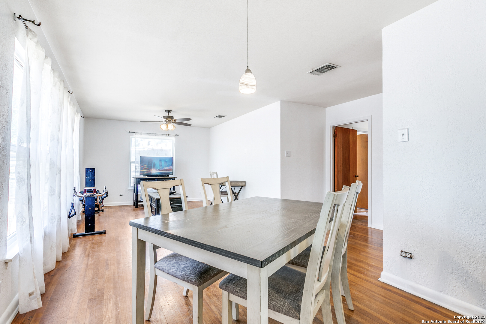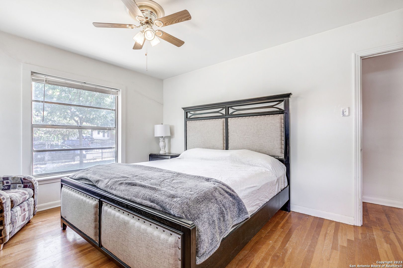Incredibly Welcoming One-Story Home with Fully Fenced-In Yard! Conveniently situated near excellent schools (North East ISD), this 3BR/1BA, 1,066sqft property offers inviting charm with an attractive exterior color scheme, vibrant greenery, a spacious 7,800+sqft lot, and a lovely wrought-iron electric privacy gate. Originally built in 1953, the home features an iron front door, beautiful hardwood flooring, an openly flowing layout, soft natural light, and a sizeable living room. Envision sharing meals with loved ones in the fully-equipped and updated kitchen, which has wood cabinetry, ample countertops, new stove (gas lines added), a newer refrigerator (2020), porcelain tile, stainless-steel sink, farmhouse sink, ceiling fan, and an adjoining dining area. Three bedrooms are abundantly sized with dedicated closets. Affording exciting retro vibes, the full bathroom includes red tile work, a medicine cabinet, and a shower/tub combo. Step outdoors into the fully fenced-in yard to find an entertainment-friendly atmosphere with plenty of room for future customization, grilling, and partying. For additional fun, Downtown San Antonio is just 7.2-miles away. Experience the city with fabulous attractions, such as the Majestic Theatre (7.1-miles), San Antonio Museum of Art (7.6-miles), and San Antonio River Walk (9.7-miles). Other features: attached 1-car garage, laundry area, 6 months old A/C, near shopping, restaurants, I-410, I-10, Methodist Hospital, and entertainment, and much more! Call for a tour!