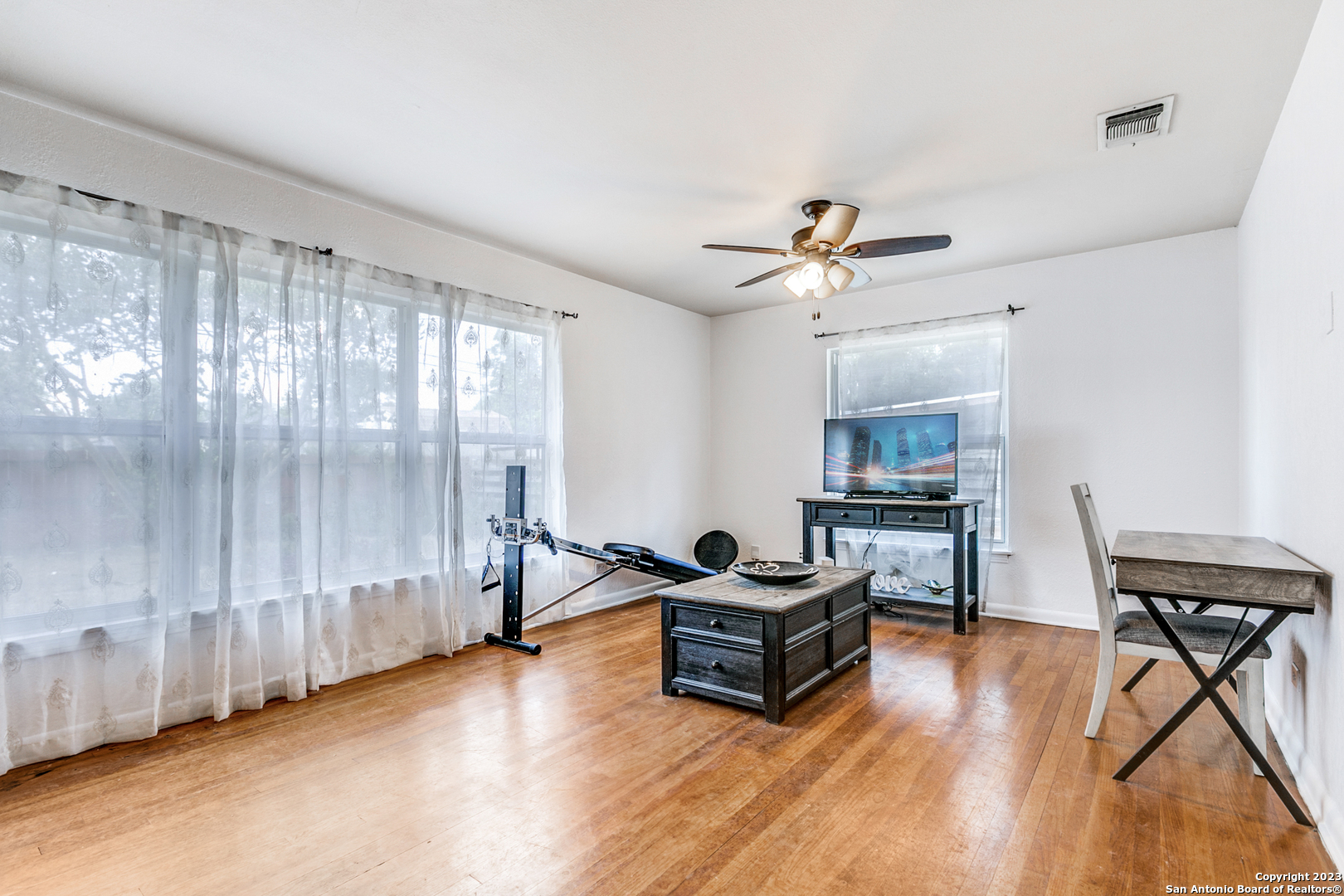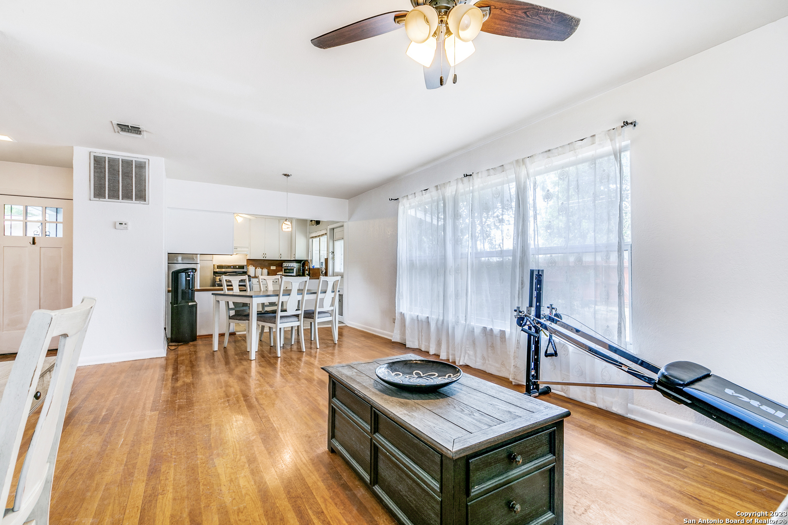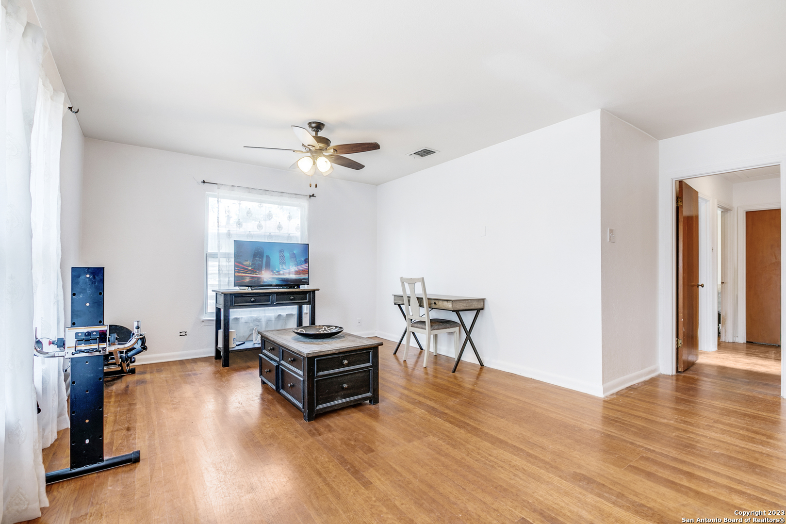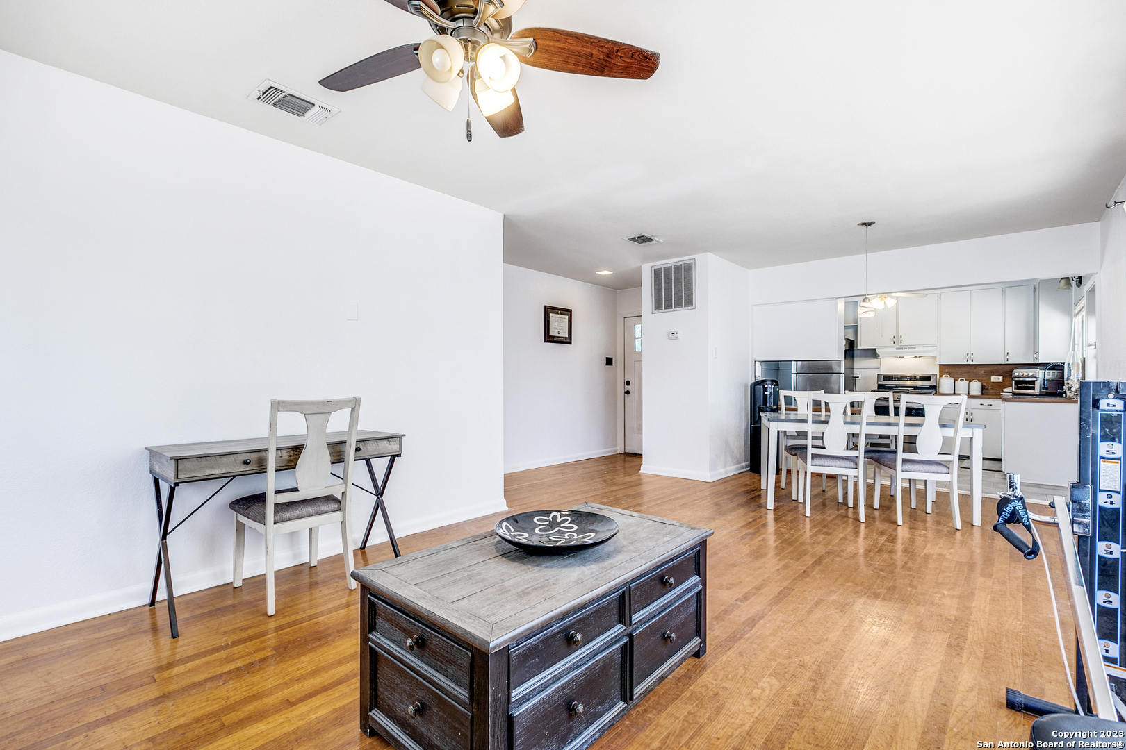 Incredibly Welcoming One-Story Home with Fully Fenced-In Yard! Conveniently situated near excellent schools (North East ISD), this 3BR/1BA, 1,066sqft property offers inviting charm with an attractive exterior color scheme, vibrant greenery, a spacious 7,800+sqft lot, and a lovely wrought-iron electric privacy gate. Originally built in 1953, the home features an iron front door, beautiful hardwood flooring, an openly flowing layout, soft natural light, and a sizeable living room. Envision sharing meals with loved ones in the fully-equipped and updated kitchen, which has wood cabinetry, ample countertops, new stove (gas lines added), a newer refrigerator (2020), porcelain tile, stainless-steel sink, farmhouse sink, ceiling fan, and an adjoining dining area. Three bedrooms are abundantly sized with dedicated closets. Affording exciting retro vibes, the full bathroom includes red tile work, a medicine cabinet, and a shower/tub combo. Step outdoors into the fully fenced-in yard to find an entertainment-friendly atmosphere with plenty of room for future customization, grilling, and partying. For additional fun, Downtown San Antonio is just 7.2-miles away. Experience the city with fabulous attractions, such as the Majestic Theatre (7.1-miles), San Antonio Museum of Art (7.6-miles), and San Antonio River Walk (9.7-miles). Other features: attached 1-car garage, laundry area, 6 months old A/C, near shopping, restaurants, I-410, I-10, Methodist Hospital, and entertainment, and much more! Call for a tour!