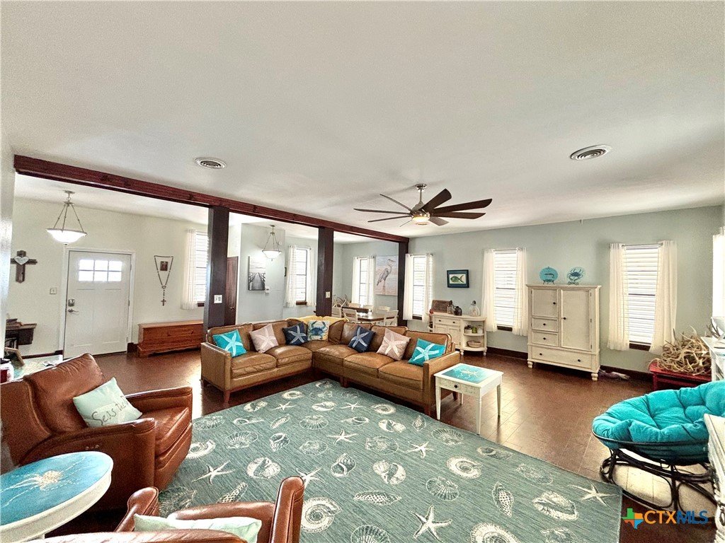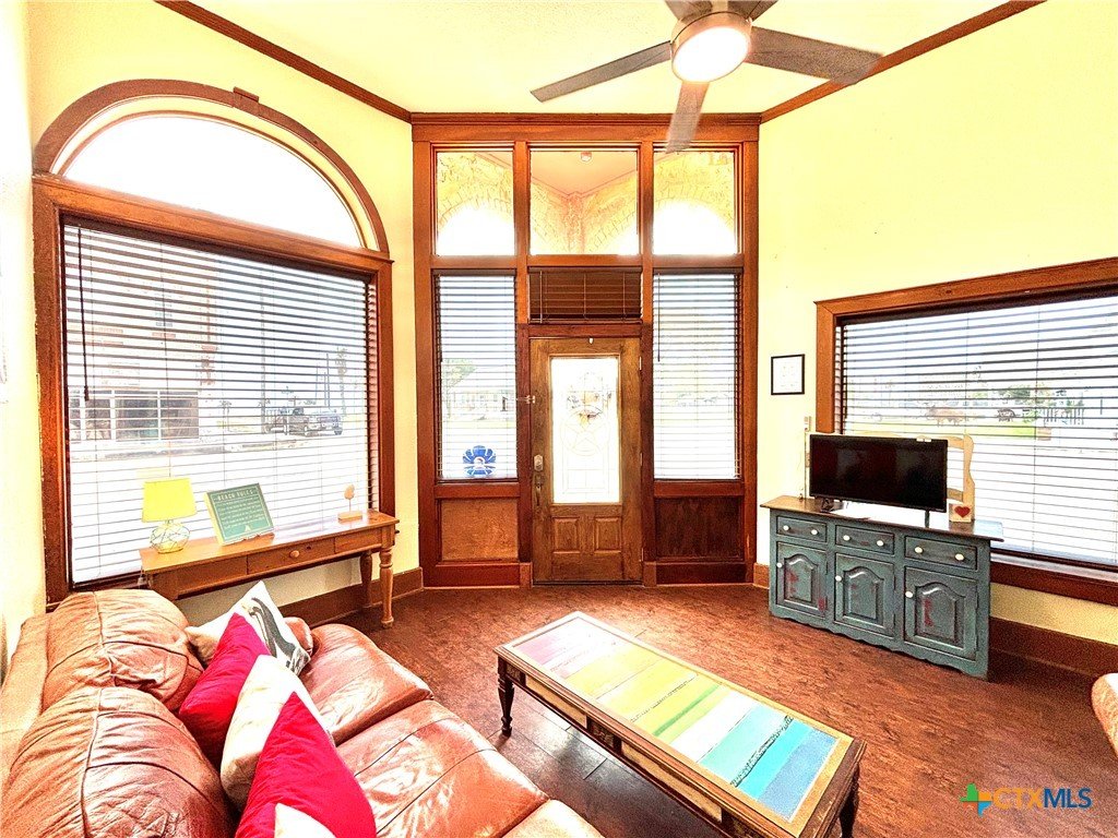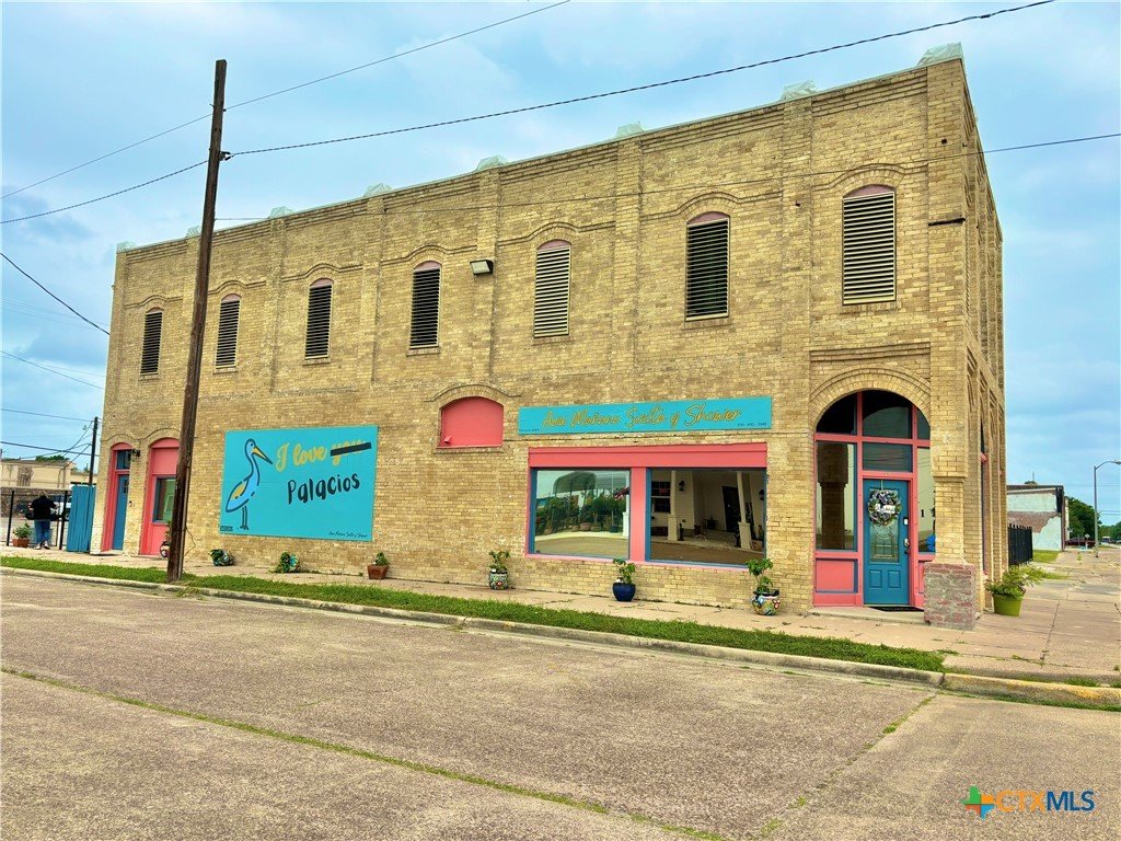 Magnificent 2 Story, 5 Bed, 5 Bath, Historic home, 1 block from “Tres Palacios Bay”, in renowned Palacios, Texas! This gracious 3 Bedroom, 3 Bath home has separate rental units, on main floor of building, comprised of 2, 1 Bedroom, 1 Bath Rental “Bed and Shower” units, complete with circa 1900 “private sitting rooms”. The main home, on 2nd floor, has inviting entry foyer, traditional promenade hallway upstairs, which runs from kitchen to living and dining areas. (10') tall windows & doors, and (14') ceilings, standard to this style of home, create a light, airy ambience. Exposed support beams, finished in real wood tones, harken back to this romantic period. This spacious, open concept is an exceptional place to entertain family and friends. 2 Bedrooms, off main hall, are both graced with 2 bathrooms off same, main walkway. The Kitchen combines new and old; original cabinets which run