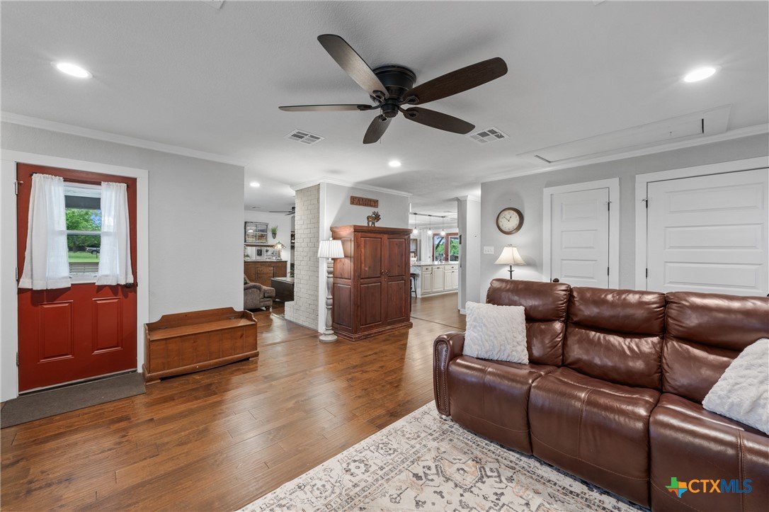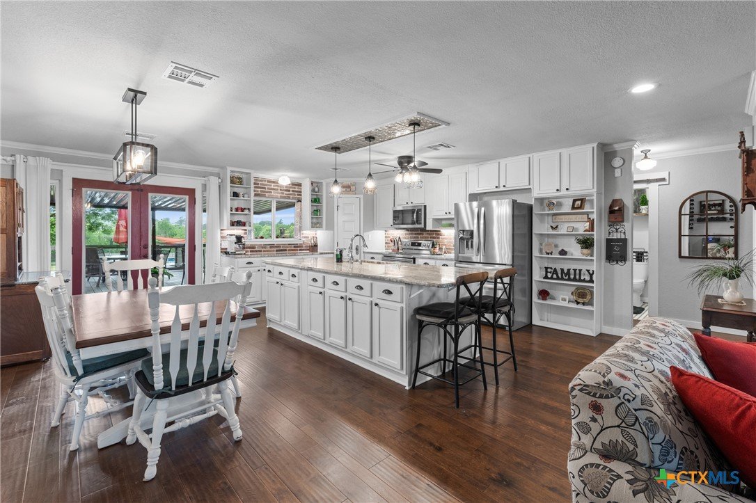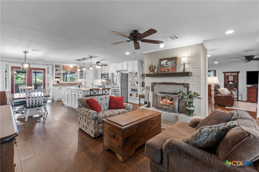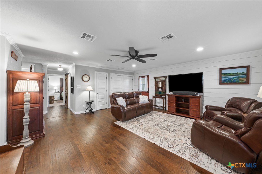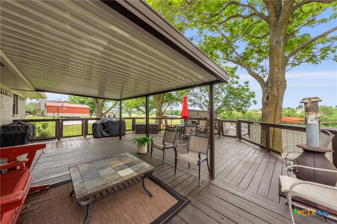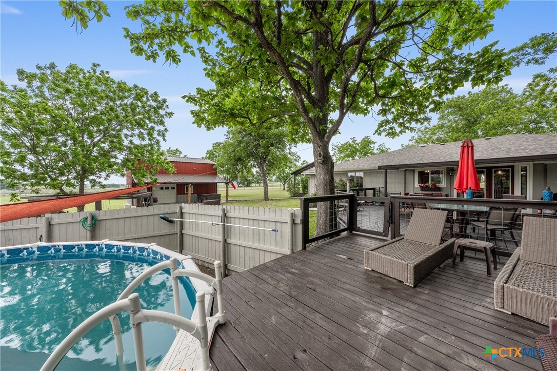 Welcome to your private countryside retreat where comfort, recreation, and thoughtful design come together seamlessly across 5.07 fully fenced and gated acres of land. This 3 bedroom, two-and-a-half-bath residence offers beautifully remodeled interior space. The open-concept living area showcases engineered hardwood flooring, enhanced by crown molding and a sophisticated flow between kitchen, dining, and living spaces. Anchoring it all is a striking 10-foot by 4-foot center island—a culinary command center that invites conversation and casual gatherings alike. For added functionality, a half bath complements the living space. The primary bedroom features soft carpeting and a private sanctuary feel. The Primary bathroom was thoughtfully enlarged for added comfort. Recent updates to the whole house include a replaced roof (2024), plumbing and electrical systems, and a replaced HVAC unit. Step outdoors and prepare to be captivated. A covered back porch and sprawling deck offer scenic views and ample space to gather. Fun-seekers will appreciate the pickleball/basketball court with remote-controlled solar lighting; the above-ground pool with surrounding deck and sunshades; an outdoor movie area with swings and fire pit designed to tell stories around. Bonus alert: The detached barndominium (approximately 20' x 30') has 600-square-foot guest quarters with its own mini-split HVAC system, kitchenette, loft-style bedroom, full bath, CAT 6 wiring, finished walls, foam insulation, and stained cement floors, it’s ideal for visitors or a creative escape. The remainder of the barndominium is storage space. Behind the solar-powered main gate and second access entrance, this property balances privacy with purposeful amenities. Proximity to Troy ISD and no City Taxes further enhances its appeal. Whether you're entertaining or enjoying the quiet hum of country life, this home is ready for a new chapter—maybe yours. Priced at $649,900. Schedule your personal tour today.