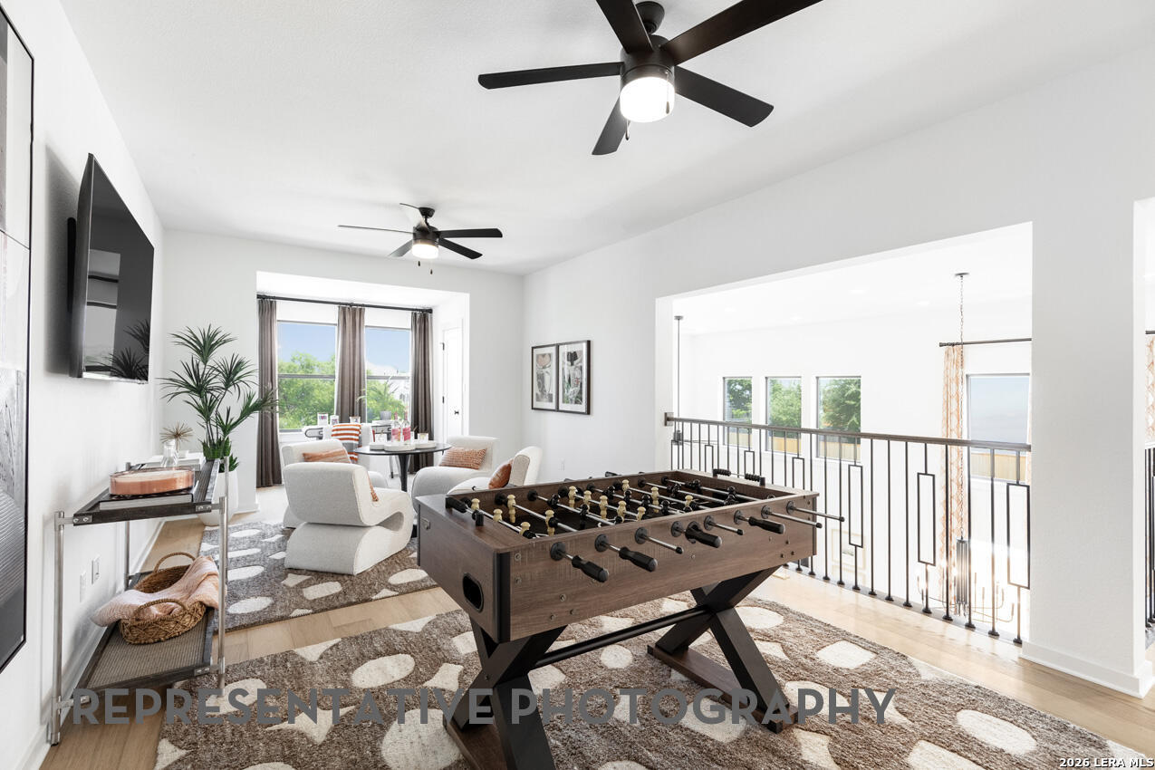 Stunning 2-Story Highland Home in Mont Blanc! Discover this beautiful Highland Homes floor plan located in Mont Blanc, conveniently situated off I-35 North - exit Schwab and turn right on Eckhardt Rd in Schertz. This thoughtfully designed two-story home offers both luxury and functionality: Spacious Kitchen - Large island overlooking the family and dining areas, abundant counter space and cabinetry, built-in appliances, and a gas cooktop - perfect for entertaining and everyday living. Primary Suite Downstairs - A true retreat featuring a spa-like bath with a freestanding soaking tub and separate shower. Secondary Bedroom Downstairs - Complete with its own private bath, ideal for guests or multigenerational living. Entertainment Room Downstairs - Perfect for family movie nights or hosting friends. Family Room with Vaulted Ceilings - Open and airy, overlooking large outdoor patio for seamless indoor-outdoor living. Upstairs - Two additional bedrooms plus a spacious game room for extra living and play space. This home truly checks all the boxes - space, elegance, and comfort in a prime location. Interested in learning more or scheduling a private tour? I'd love to help you explore this incredible opportunity!