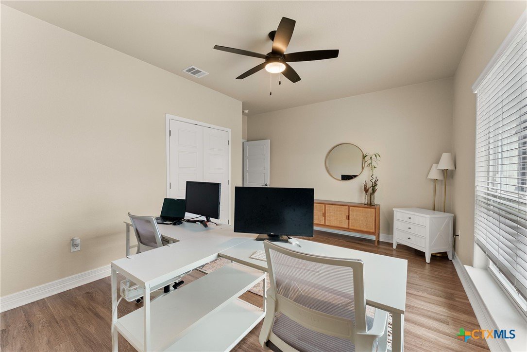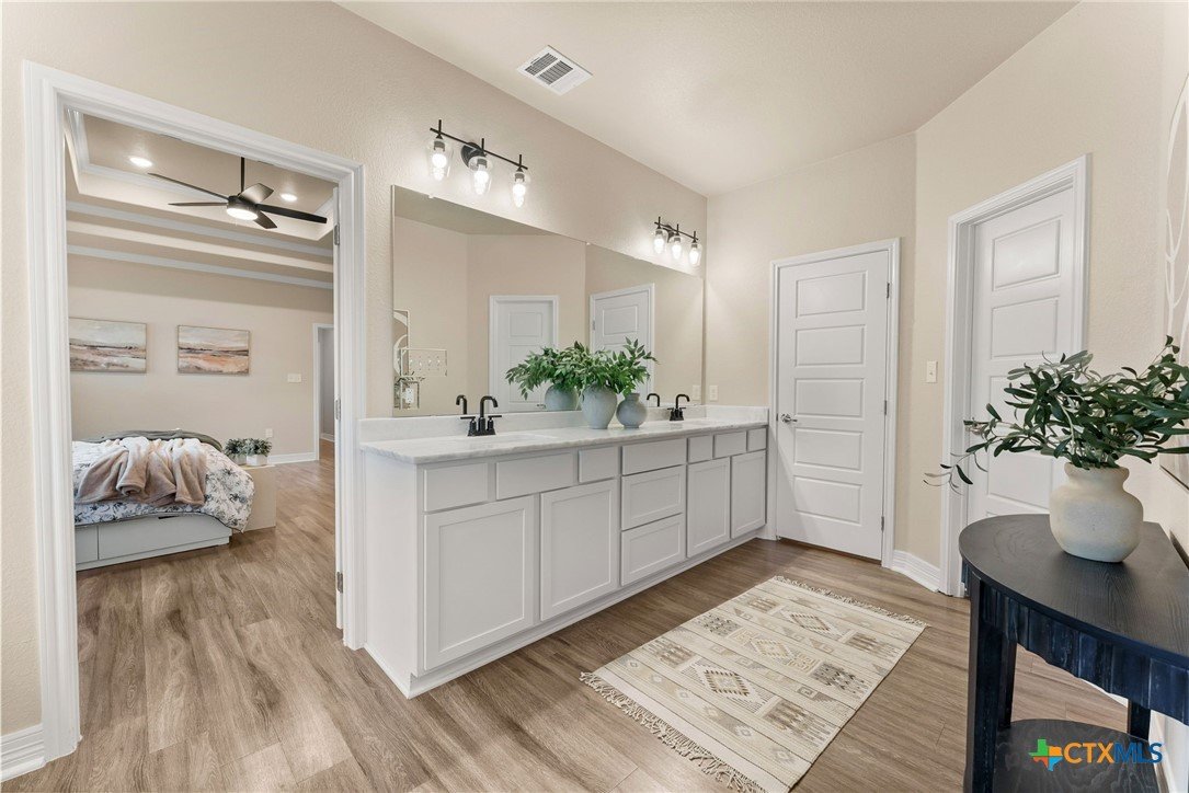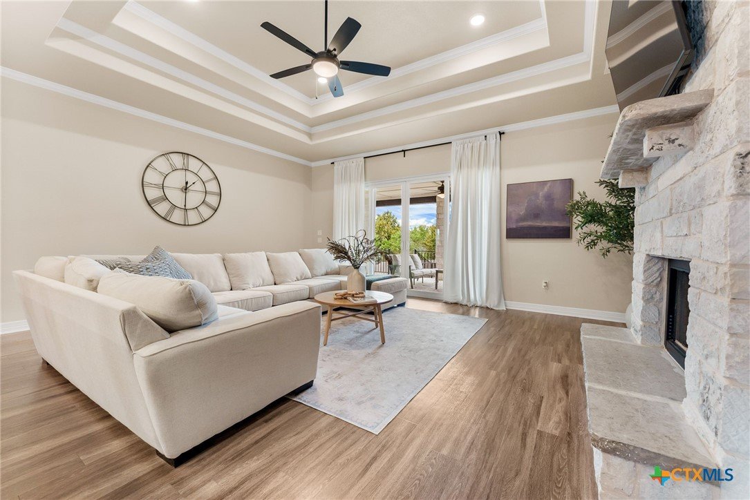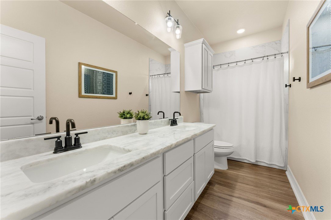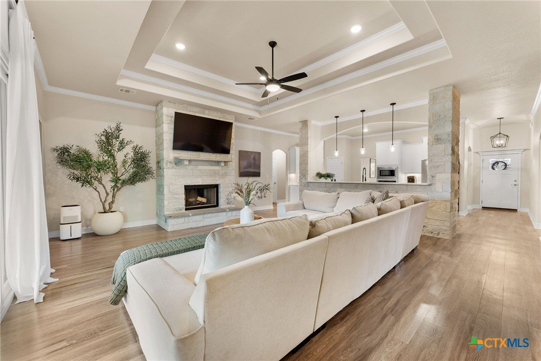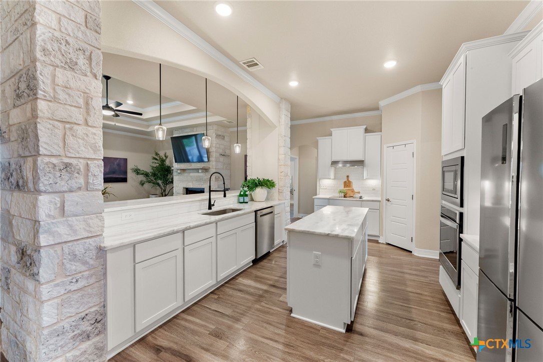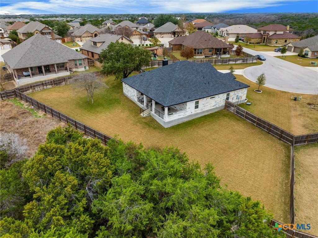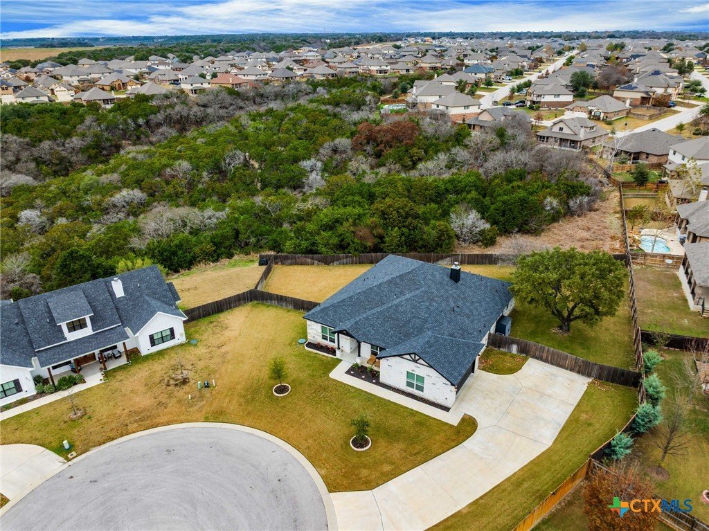 Tucked away on a private cul-de-sac in the highly sought-after Three Creeks community, this immaculate, one-of-a-kind home sits on over half an acre, offering a rare combination of space, privacy, and charm. From the moment you arrive, you’ll see that this is not a cookie-cutter property—thoughtful details, quality finishes, and a huge backyard perfect for entertaining, play, or quiet relaxation set it apart. Inside, the bright, open floor plan is designed for both everyday living and entertaining. High ceilings create an airy feel throughout the home, while the living room flows naturally into the kitchen. The dining area is thoughtfully split by the kitchen, offering a seamless connection between meal prep and conversation. The kitchen itself is a showstopper, featuring beautiful stone work framing the space, granite countertops, a large island, and ample storage, making it as functional as it is inviting. The primary suite is a private retreat, complete with a spa-inspired en-suite bath featuring dual vanities, soaking tub, walk-in shower, and a spacious walk-in closet. The additional bedrooms are generously sized and thoughtfully positioned, offering comfort and privacy for family or guests. Step outside to enjoy the oversized backyard, a rare find in Three Creeks, with plenty of room for outdoor living, play, or future enhancements. The community offers walking trails, parks, playgrounds, and a friendly, welcoming atmosphere. With quick access to Hwy 190 and I-35, this home combines peaceful, private living with everyday convenience. From the well-maintained finishes and stone-accented kitchen to the expansive backyard, this home delivers a move-in-ready lifestyle with comfort, style, and functionality that’s hard to match.