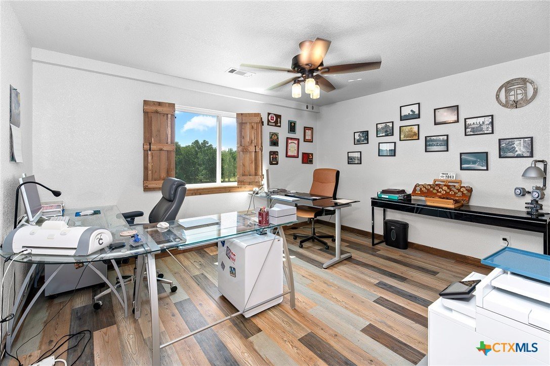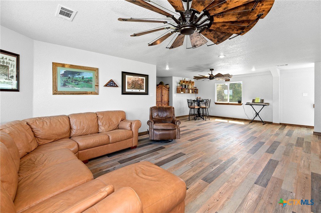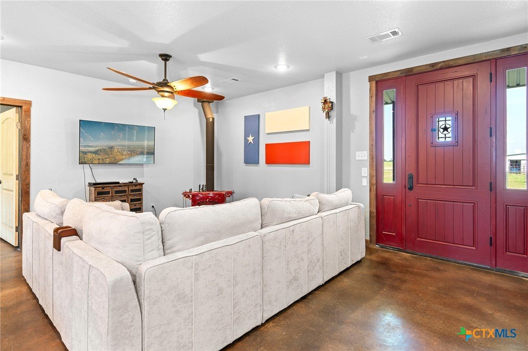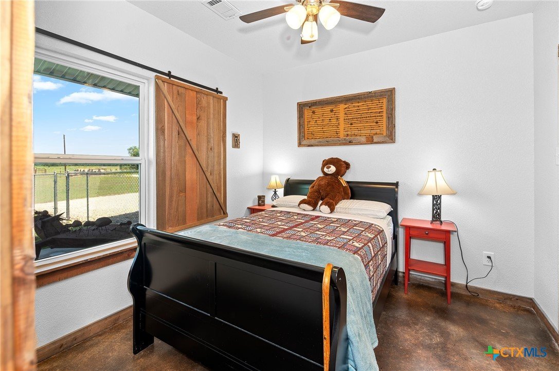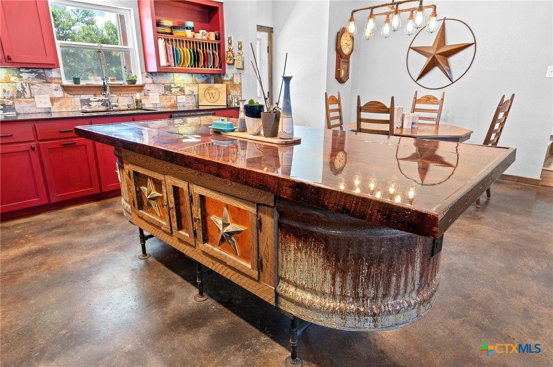 Welcome to your dream retreat! This stunning custom-built barndominium sits on 20 picturesque acres, offering the perfect blend of rustic elegance and modern comfort. Just 2 miles from the city limits, enjoy peaceful country living with quick access to town amenities. Inside, you’ll find 5 spacious bedrooms and 3.5 baths designed for comfort and style. The open-concept living area features a cozy wood-burning stove and plenty of natural light—perfect for family gatherings or quiet evenings. The gourmet kitchen impresses with a custom trough island crafted from 100-year-old barn wood, complemented by modern appliances and ample counter space for every culinary need. The luxurious primary suite offers dual sinks, double shower heads, and body sprays for a true spa-like escape. Step outside to a 10-foot wrap-around porch overlooking rolling pastures, mature trees, and open fields. The property also includes a large attached shop and garage with an upstairs loft—ideal for storage, projects, or hobbies. Fully fenced and cross-fenced with a peaceful pond, this one-of-a-kind property combines timeless country charm with thoughtful craftsmanship and modern convenience.