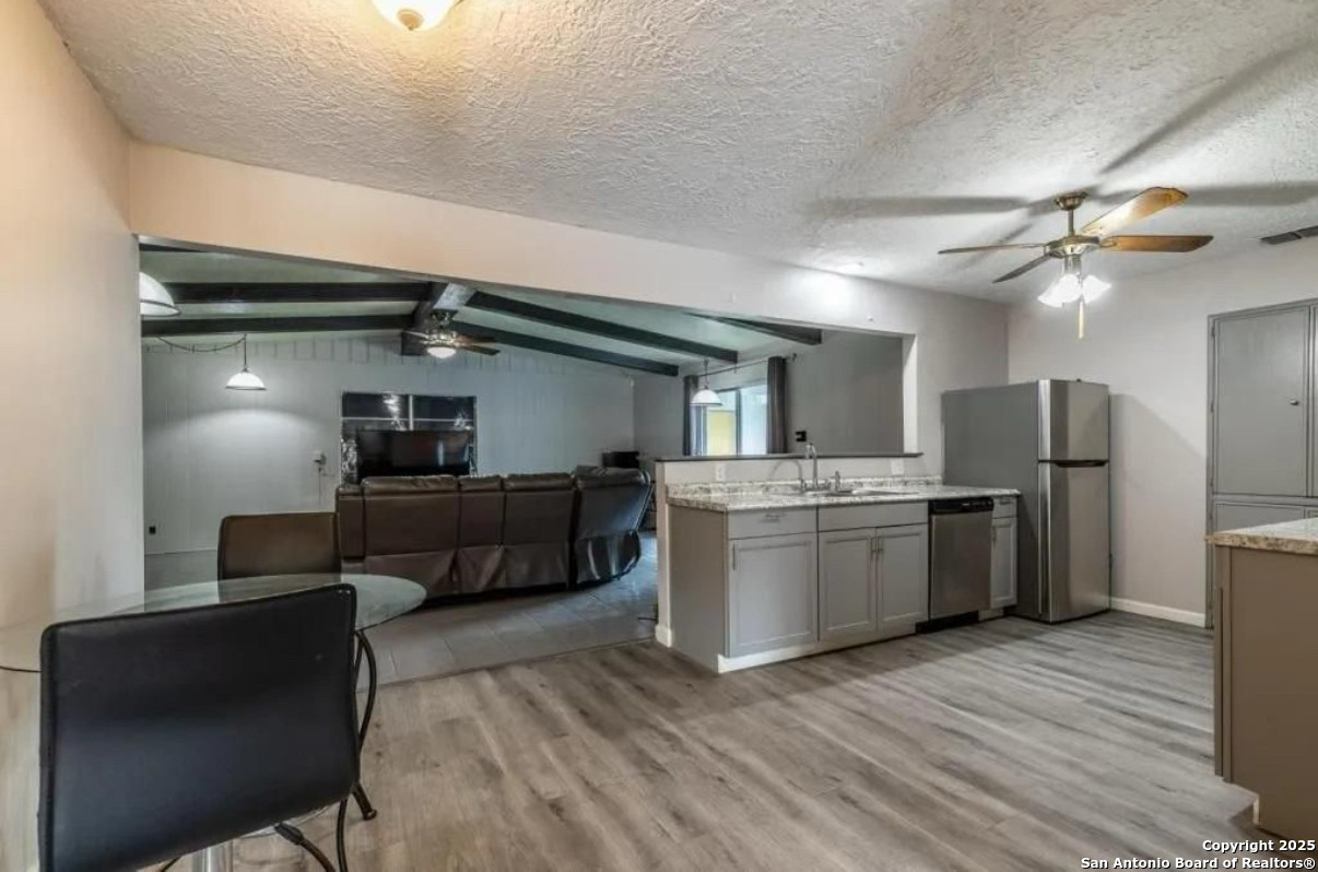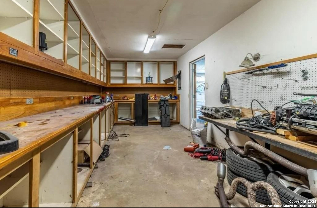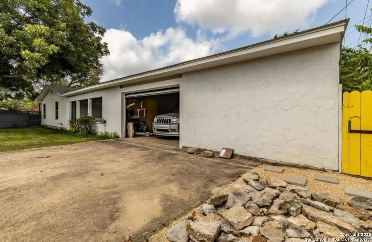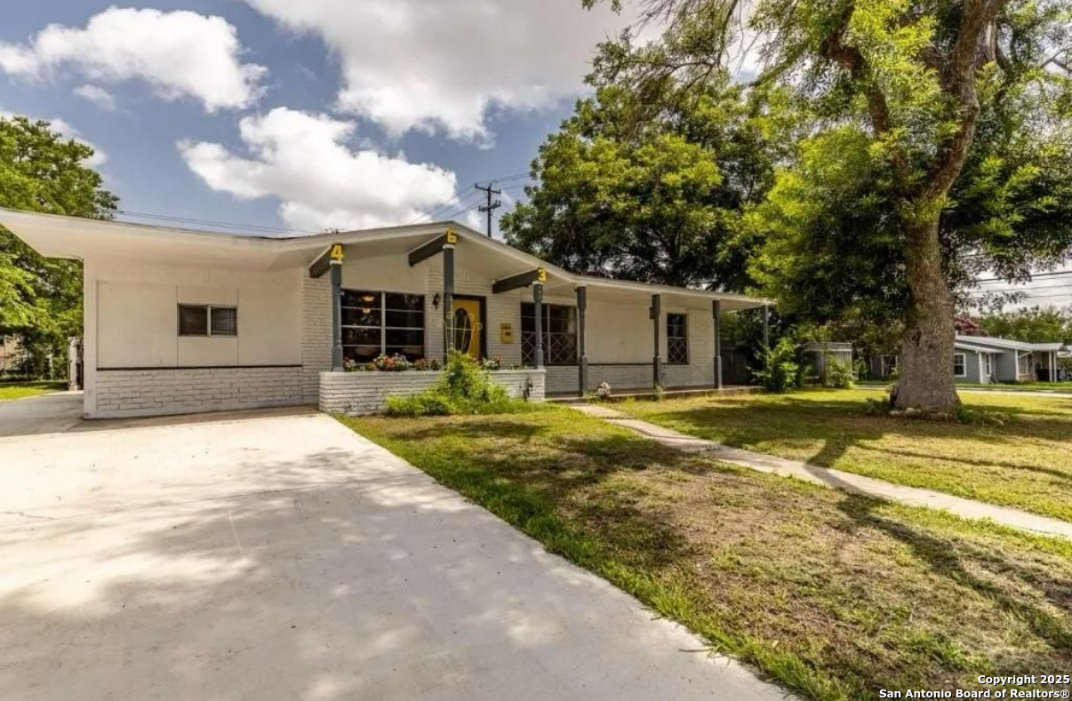 Mid-Century Charm Meets Modern Potential in North Central San Antonio! Welcome to 463 Sprucewood Ln a spacious 4 bedroom, 3 bathroom home offering 1,800 square feet of living space on a generous lot in the desirable Ridgeview neighborhood. This eye catching mid-century ranch features a distinct architectural roofline, covered front porch and vibrant curb appeal that sets it apart from the rest. Inside, you'll find an inviting layout filled with natural light and opportunity. With two primary suites and ample communal space, this home is ideal for multi-generational living or entertaining. But what truly sets this property apart is the stunning oversized drive-through double-door bay garage, perfect for car enthusiasts, hobbyists or anyone in need of extra storage. Plus, a dedicated workshop provides the ultimate space for DIY projects, crafts or home-based business needs. The spacious backyard offers mature trees and privacy ready for your custom touch. Conveniently located just minutes from San Antonio International Airport, North Star Mall, Loop 410 and Hwy 281, this gem combines location, charm and potential. Whether you're an investor or a visionary homeowner, this is a rare opportunity you won't want to miss!