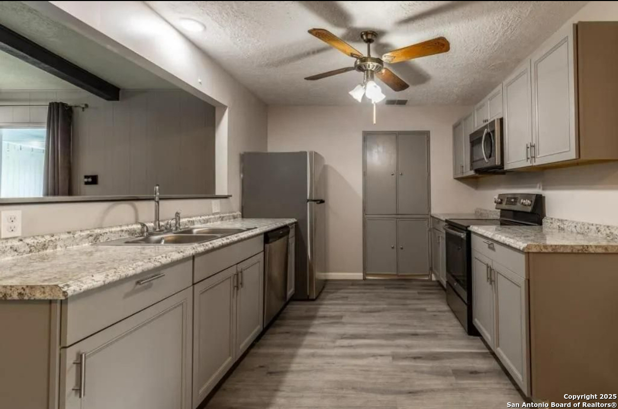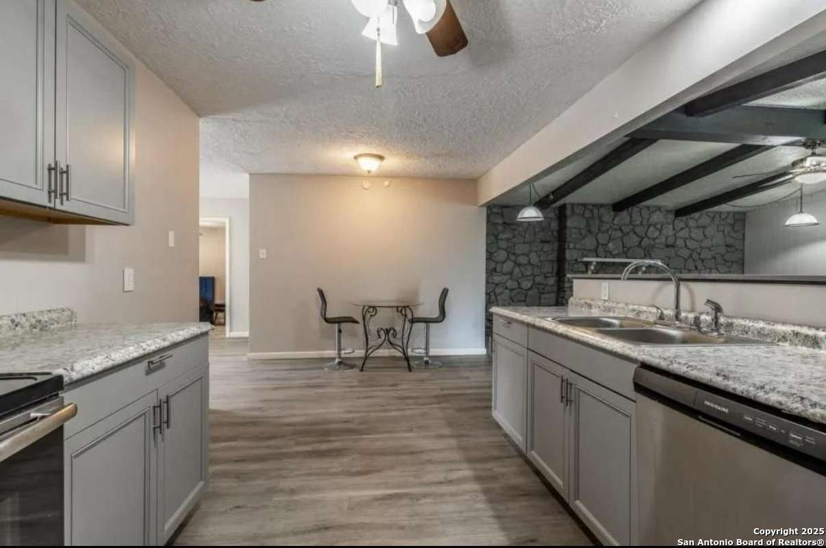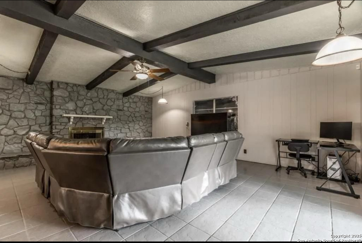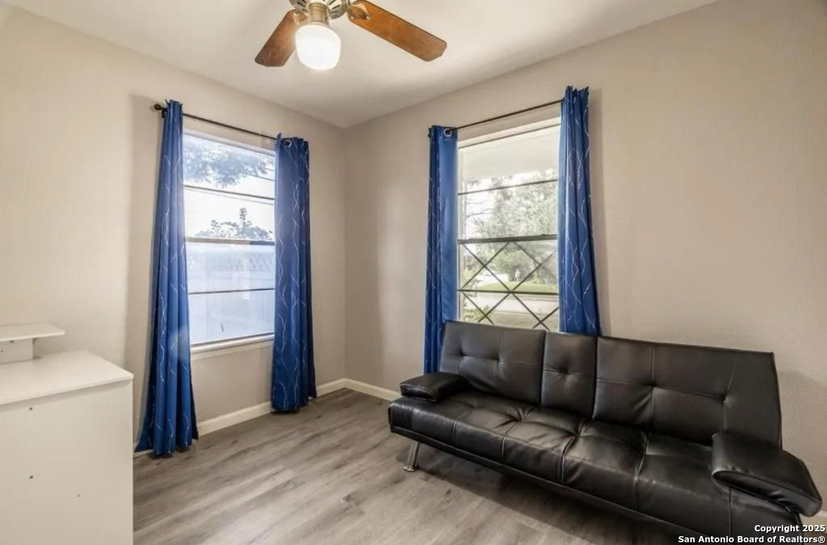 Mid-Century Charm Meets Modern Potential in North Central San Antonio! Welcome to 463 Sprucewood Ln a spacious 4 bedroom, 3 bathroom home offering 1,800 square feet of living space on a generous lot in the desirable Ridgeview neighborhood. This eye catching mid-century ranch features a distinct architectural roofline, covered front porch and vibrant curb appeal that sets it apart from the rest. Inside, you'll find an inviting layout filled with natural light and opportunity. With two primary suites and ample communal space, this home is ideal for multi-generational living or entertaining. But what truly sets this property apart is the stunning oversized drive-through double-door bay garage, perfect for car enthusiasts, hobbyists or anyone in need of extra storage. Plus, a dedicated workshop provides the ultimate space for DIY projects, crafts or home-based business needs. The spacious backyard offers mature trees and privacy ready for your custom touch. Conveniently located just minutes from San Antonio International Airport, North Star Mall, Loop 410 and Hwy 281, this gem combines location, charm and potential. Whether you're an investor or a visionary homeowner, this is a rare opportunity you won't want to miss!