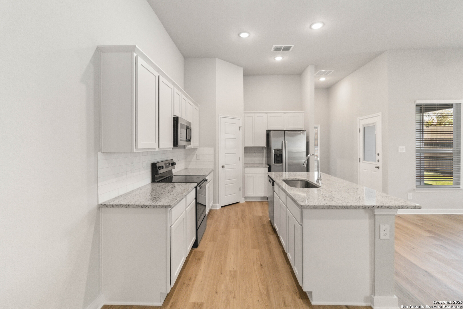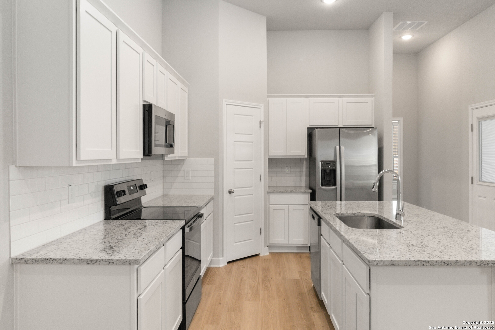 Introducing this brand-new 4-bedroom, 3-bathroom luxury duplex strategically nestled in a prime location within Emma Park. Boasting proximity to top-tier educational institutions and a plethora of shopping options, this residence offers the ideal blend of convenience and luxury. Step into a spacious floorplan accentuated by a large granite countertop island in the kitchen, perfect for enhancing your culinary experience. Adorned with sleek granite countertops and contemporary recessed lighting, the kitchen exudes elegance and functionality, providing a warm and inviting ambiance for gatherings. Experience an unparalleled sense of space and grandeur with impressive 11-foot ceilings throughout the home, creating an airy and open atmosphere. Enjoy turn-key convenience with stainless steel appliances, including a refrigerator, ensuring a hassle-free transition into your new abode. Outside, full sod and irrigation add to the ease of maintenance. Don't miss the opportunity to make this your new home in the vibrant community of Emma Park. Schedule your visit today!