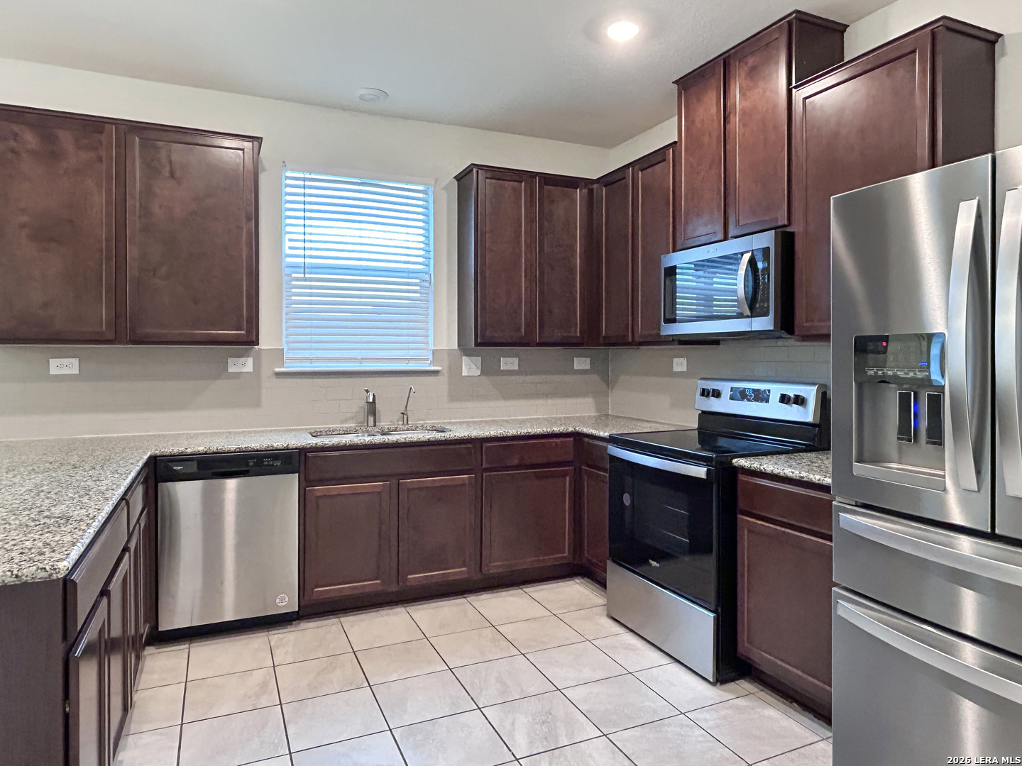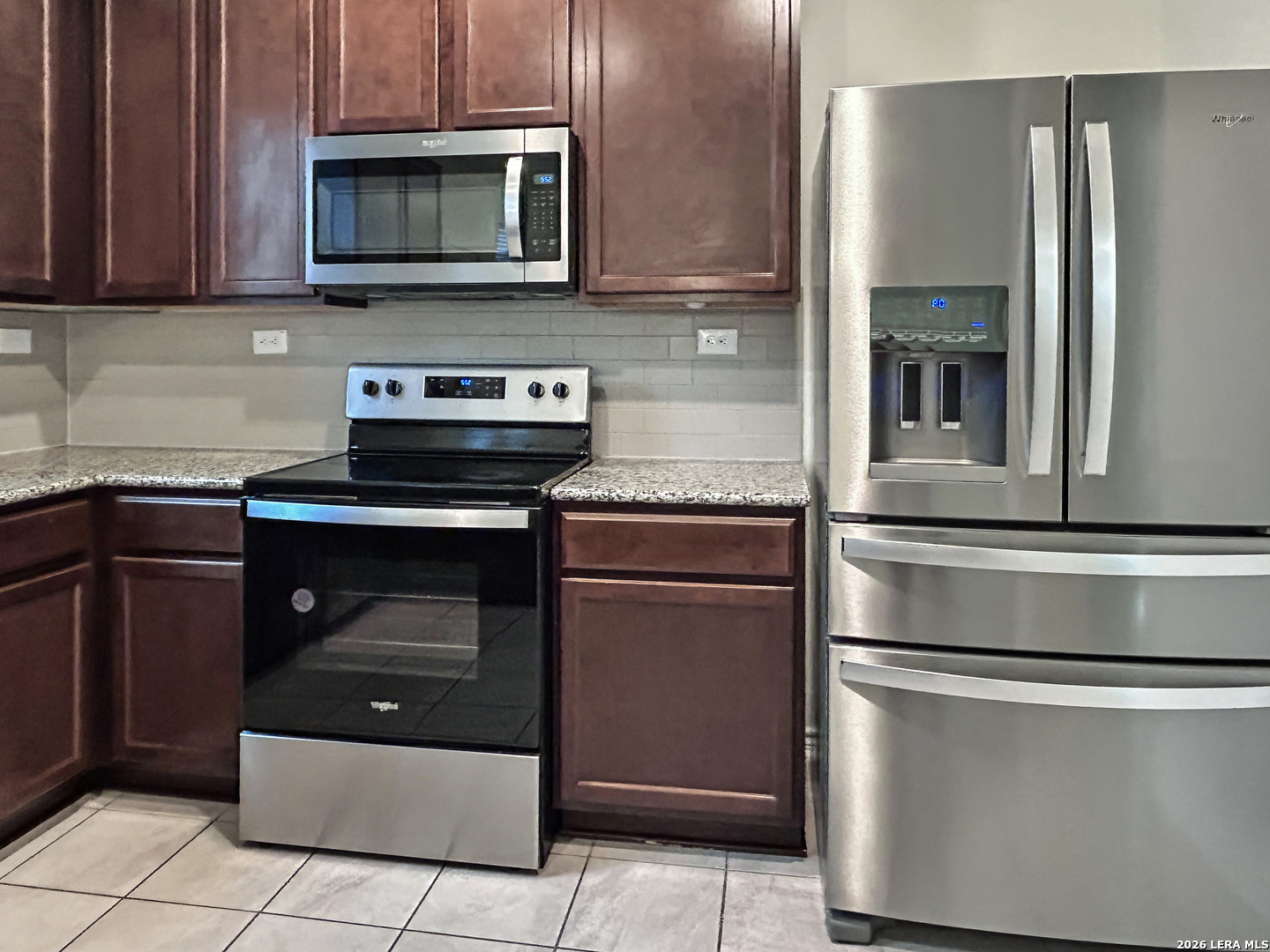 Contemporary, open-concept home in Converse with standout finishes and space to spread out. The kitchen has granite countertops, stainless steel appliances, smooth-top stove, and a breakfast bar, plus an extra-large pantry for effortless storage. All appliances are included, including the washer and dryer, making move-in easy. Downstairs offers low-maintenance tile throughout, while upstairs features a spacious multi-use loft-perfect for a second living area, home office, or game room. Every bedroom includes a walk-in closet, and the primary suite feels like a retreat with a separate garden tub and walk-in shower. Enjoy evenings on the covered patio overlooking a large backyard, and appreciate the convenience of a two-car garage.