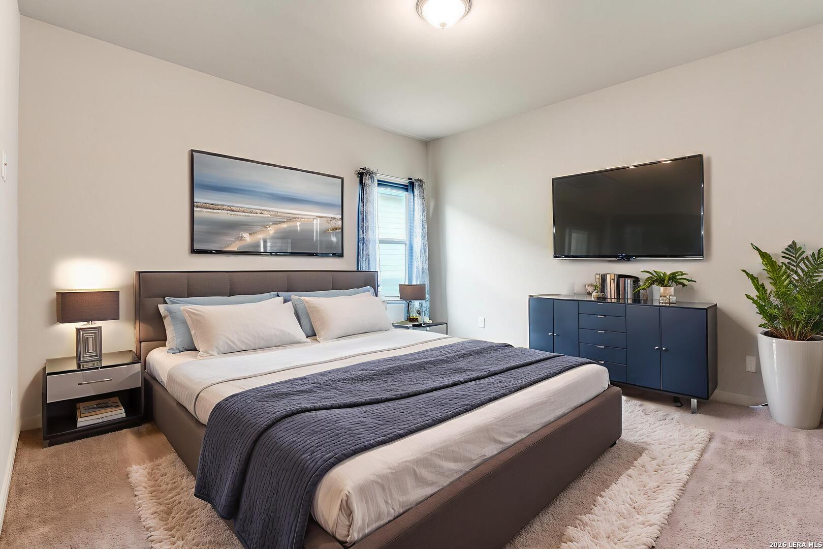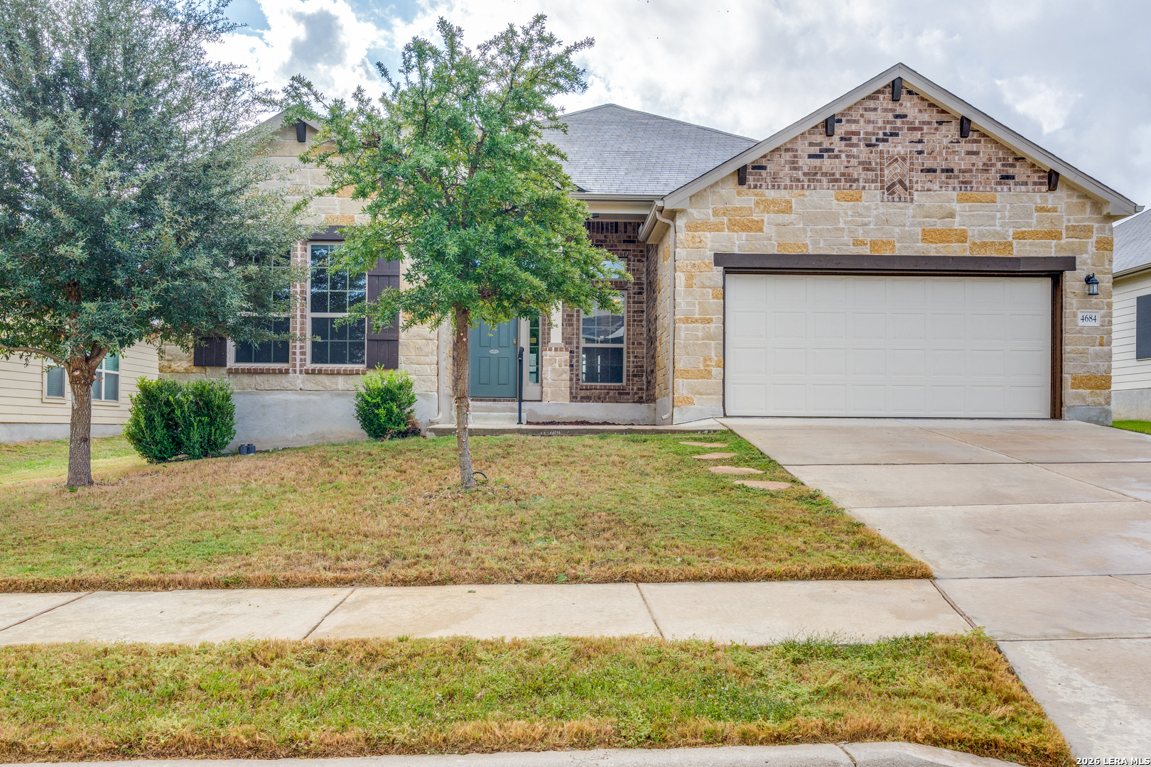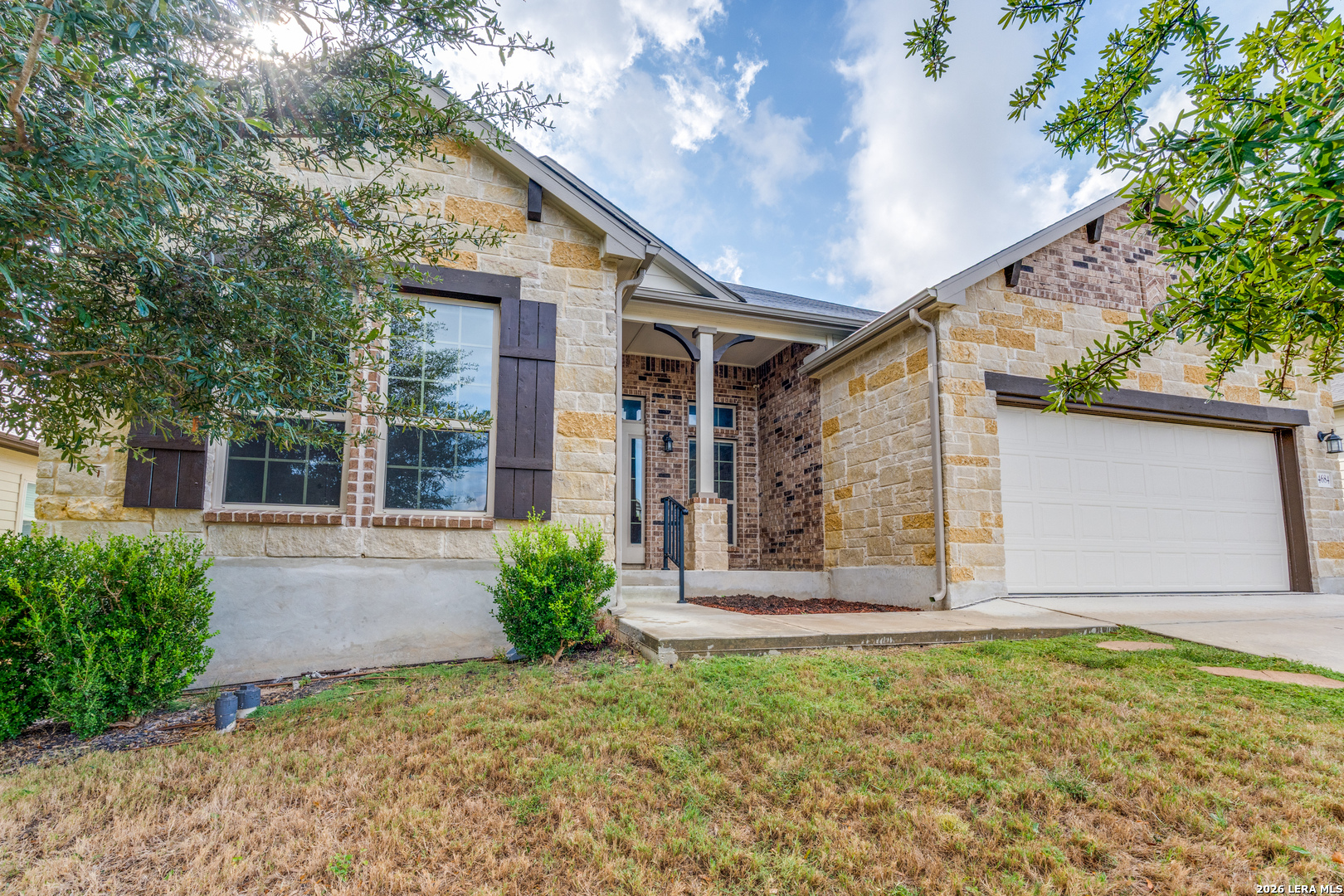 Welcome home to this 2020 Legend Homes builds in the desirable Cypress Point community. This stylish single-story residence offers convenient access to I-35, New Braunfels, San Antonio, local military bases, major employers, and surrounding cities. The inviting stone and brick exterior opens to a thoughtfully designed floor plan featuring 4 bedrooms, 3 full baths, and 2 spacious living areas. The kitchen is a standout with 42-inch mocha-stained cabinetry, a large granite island, stainless steel appliances, and abundant natural light. Tile flooring flows throughout the home, complementing the open-concept layout that connects the kitchen, dining, and living spaces-ideal for everyday living or entertaining. The private primary suite includes a spa-like bath with dual vanities, a soaking tub, separate shower, and enclosed toilet area. Enjoy outdoor living with covered front and back patios, a fenced yard, sprinkler system, and gutters. The 2-car garage offers extra storage and a water softener. Sitting on a 0.17-acre lot, this move-in-ready home combines comfort, style, and convenience in a prime location.
