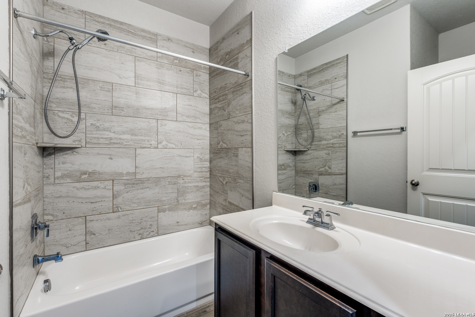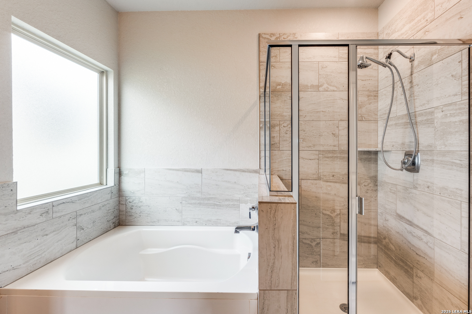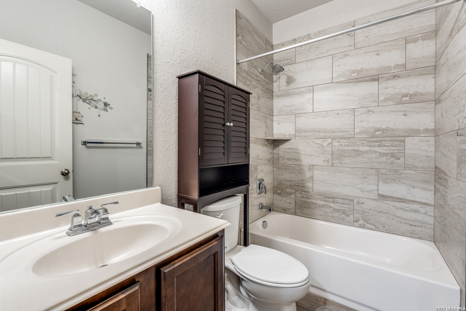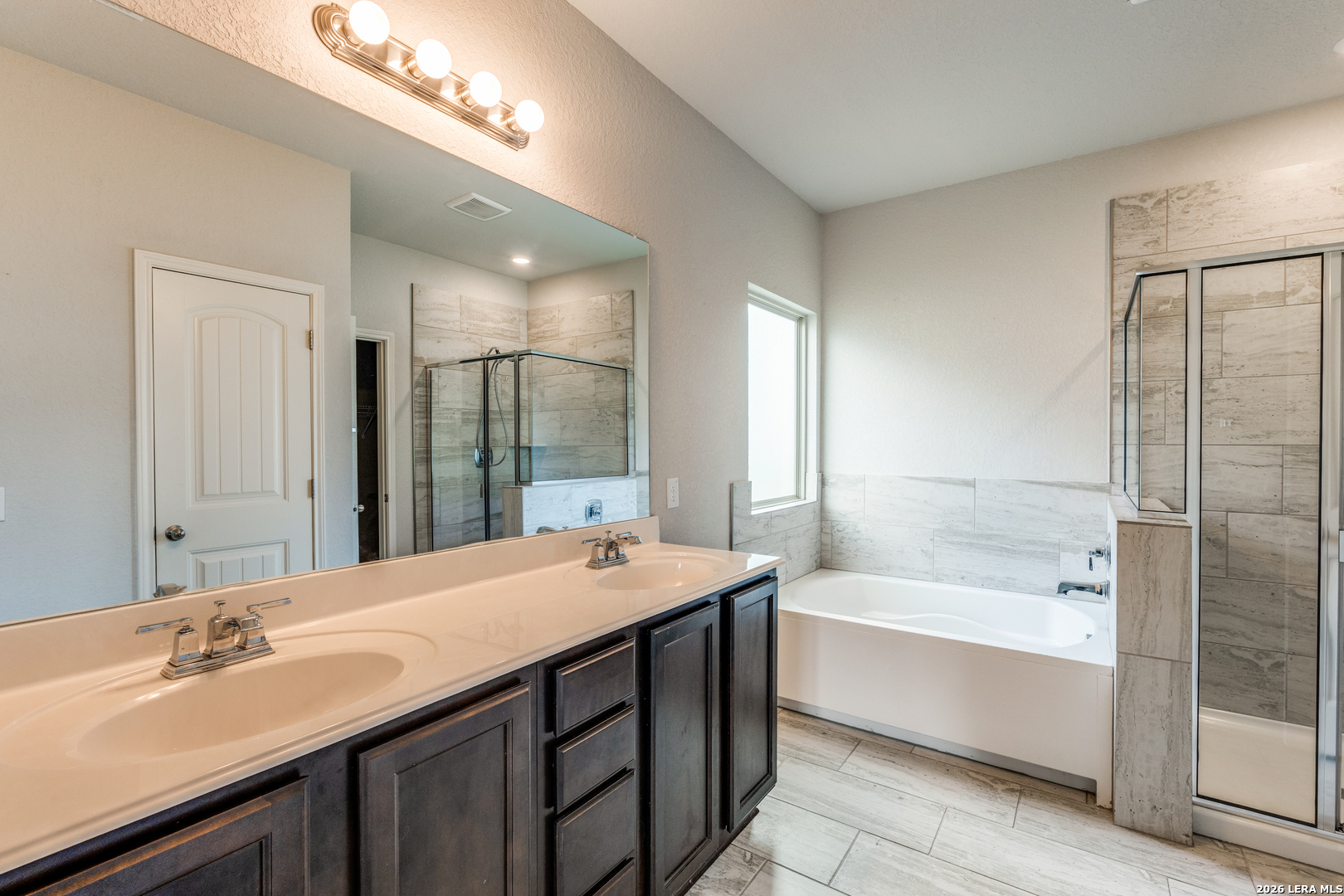 Welcome home to this 2020 Legend Homes builds in the desirable Cypress Point community. This stylish single-story residence offers convenient access to I-35, New Braunfels, San Antonio, local military bases, major employers, and surrounding cities. The inviting stone and brick exterior opens to a thoughtfully designed floor plan featuring 4 bedrooms, 3 full baths, and 2 spacious living areas. The kitchen is a standout with 42-inch mocha-stained cabinetry, a large granite island, stainless steel appliances, and abundant natural light. Tile flooring flows throughout the home, complementing the open-concept layout that connects the kitchen, dining, and living spaces-ideal for everyday living or entertaining. The private primary suite includes a spa-like bath with dual vanities, a soaking tub, separate shower, and enclosed toilet area. Enjoy outdoor living with covered front and back patios, a fenced yard, sprinkler system, and gutters. The 2-car garage offers extra storage and a water softener. Sitting on a 0.17-acre lot, this move-in-ready home combines comfort, style, and convenience in a prime location.