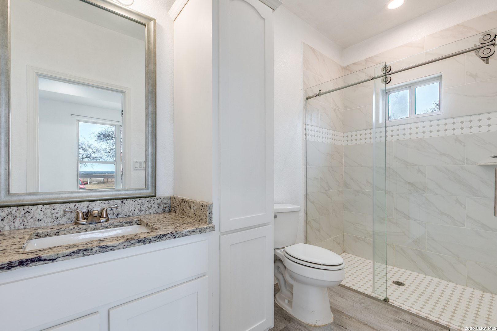 Custom 2018-built country home on 2.3 acres in the Blue Quail area of Lytle, offering space, privacy, and a peaceful setting outside city limits with an easy commute to San Antonio. This spacious 2,945 SF home features 4 bedrooms, 3.5 baths, high ceilings, a dedicated media room, and laminate flooring throughout. The kitchen offers granite countertops, ample cabinetry, recessed lighting, and ceiling fans throughout the home. Exterior highlights include a detached carport and a functional animal shelter / multi-use outbuilding, providing flexibility for storage, hobby use, or future customization. Property is serviced by a septic system and includes a POA. Enjoy the freedom of acreage living with the comfort of a newer home-schedule your private showing today.