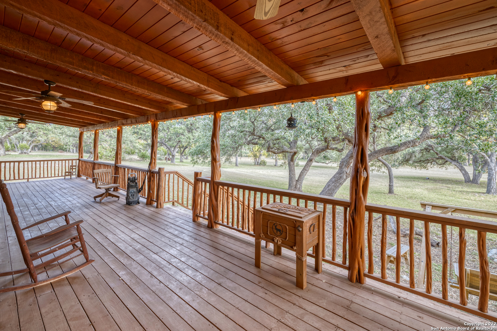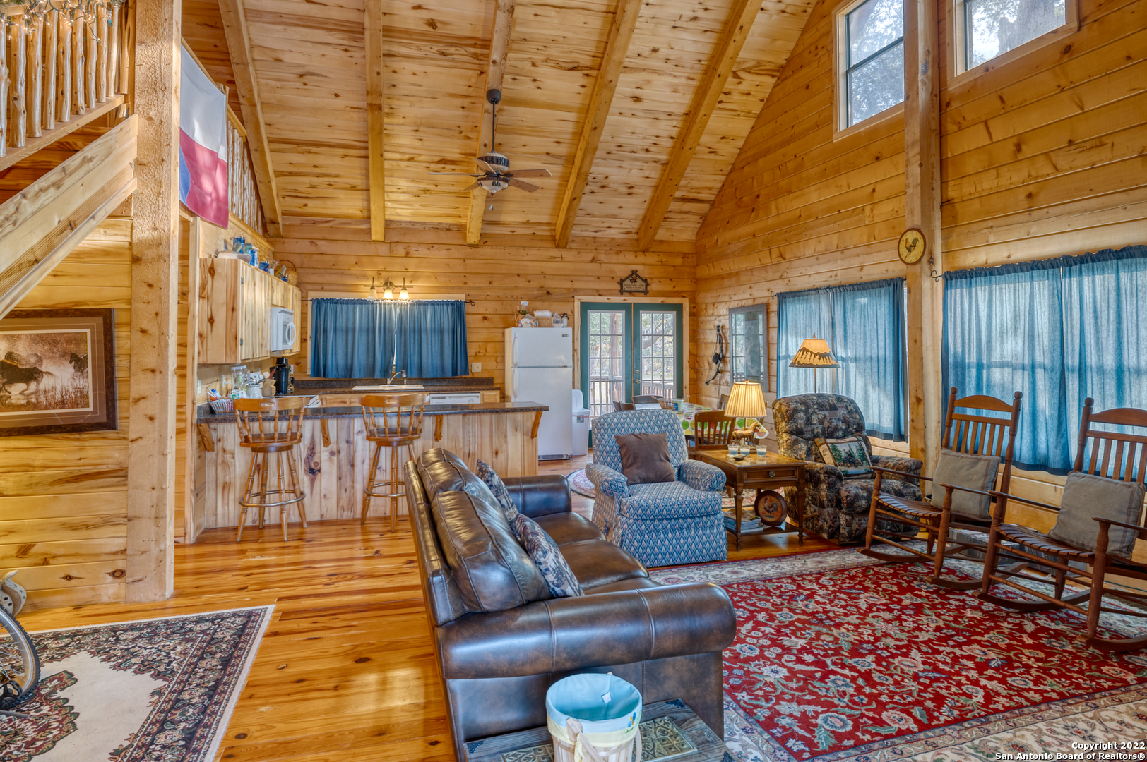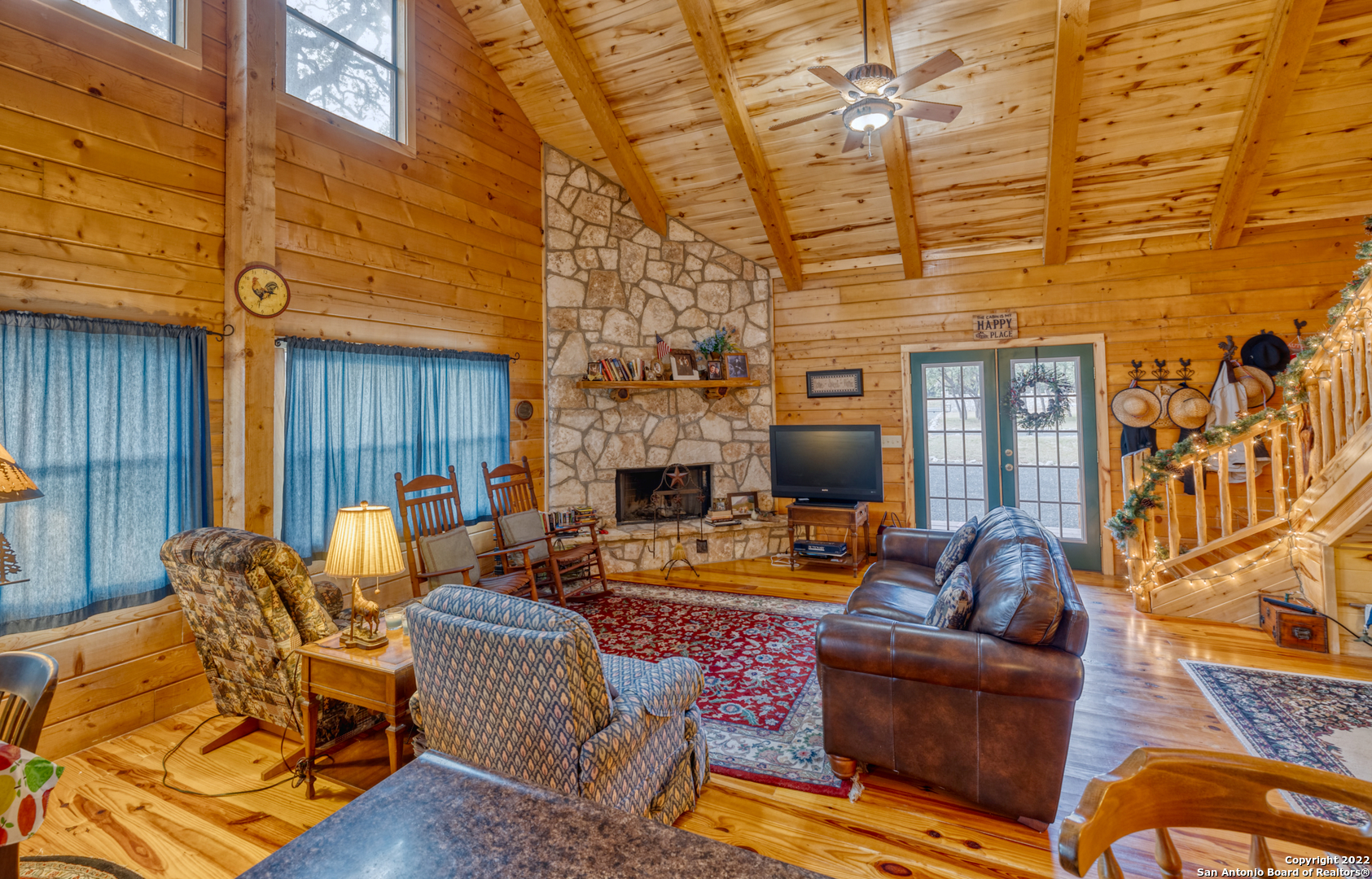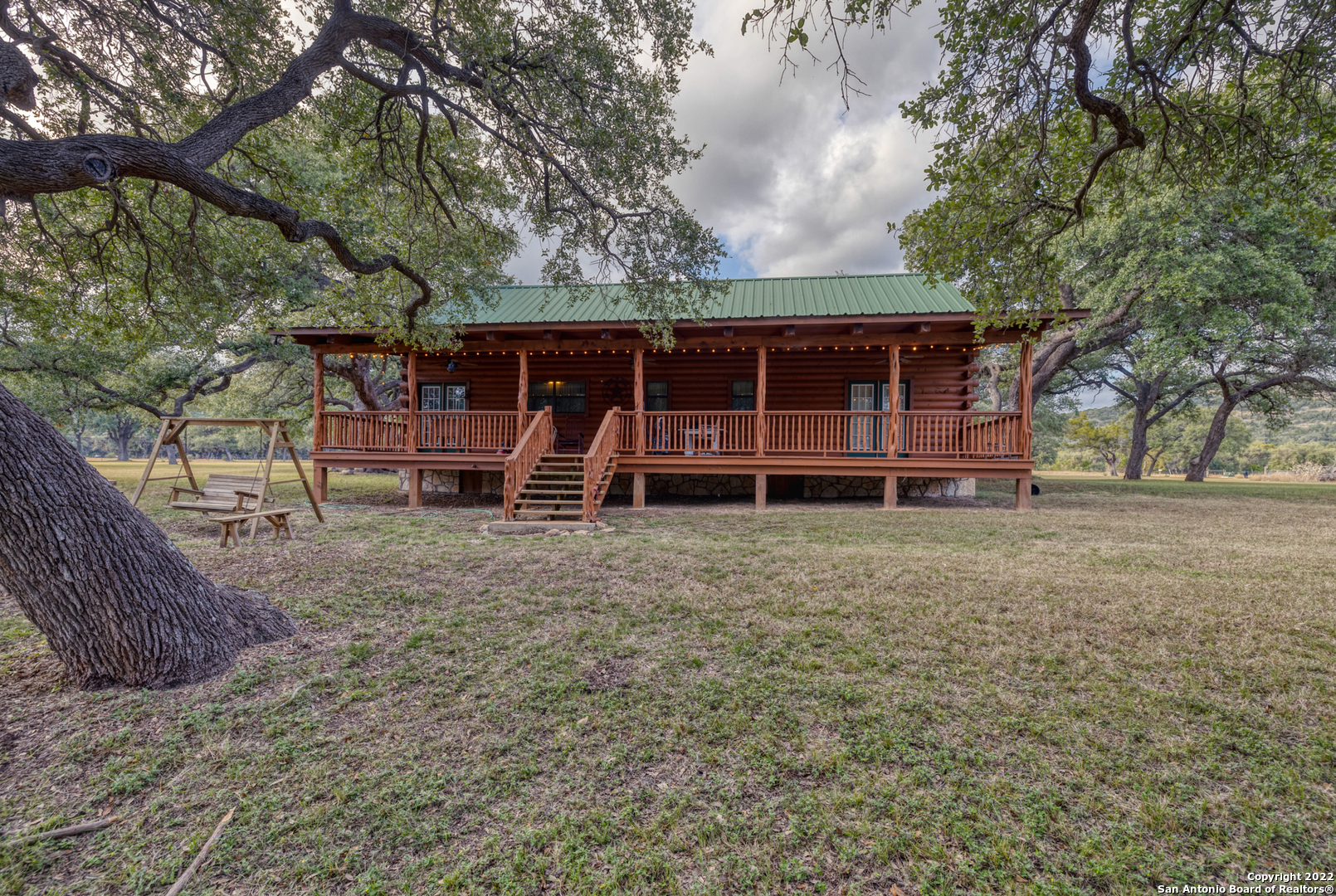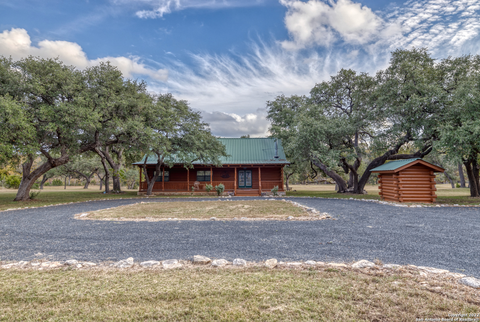 Frio River Frontage. But wait, it's much more. 10 acres situated on the East Prong (main water supply for the Frio and never dry) of the Frio River, approx 5 miles N of Leaky with easy access of hwy 83 awaits your forever paradise. Lined with cypress trees on both sides of the river is where the new owner will own Frio river frontage and where a lifetime of memories will be made. When it comes to land, there isn't much better with various species of trees located throughout the property that provide ample Summer shade, not to mention the true beauty of some of the largest cypress and Texas Live Oaks around. This property is exempt from the native juniper that exists in this area so your left with true beauty. Large beach area at rivers edge with rolling grass knolls all the way down makes for a picturesque setting filled with native grasses and a feeling of living out in the Plains. When your ready to go home, if you ever do, you'll have a 2400 square foot log cabin that is a 3 BR/2BA w/loft with large back porch awaiting for you. Your gated rock entrance with electronic gate and great rock circle drive make it very easy to get to. Furnishings, water well and septic in place to make it 100% turnkey! Frio Territories is lightly restricted to protect your investment but no active HOA. Escape from the city and find heaven on earth in the Frio Canyon with this once in a lifetime find!