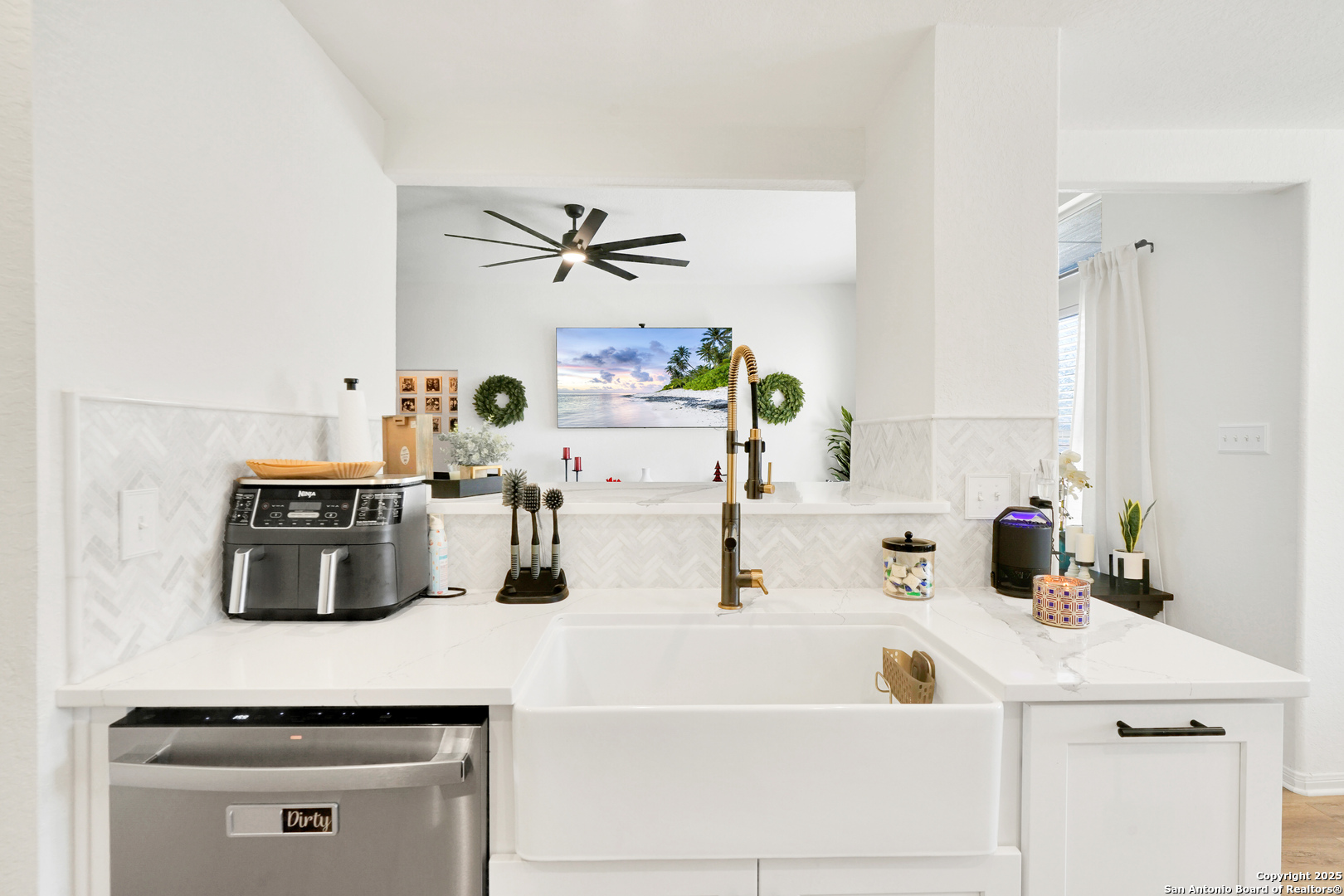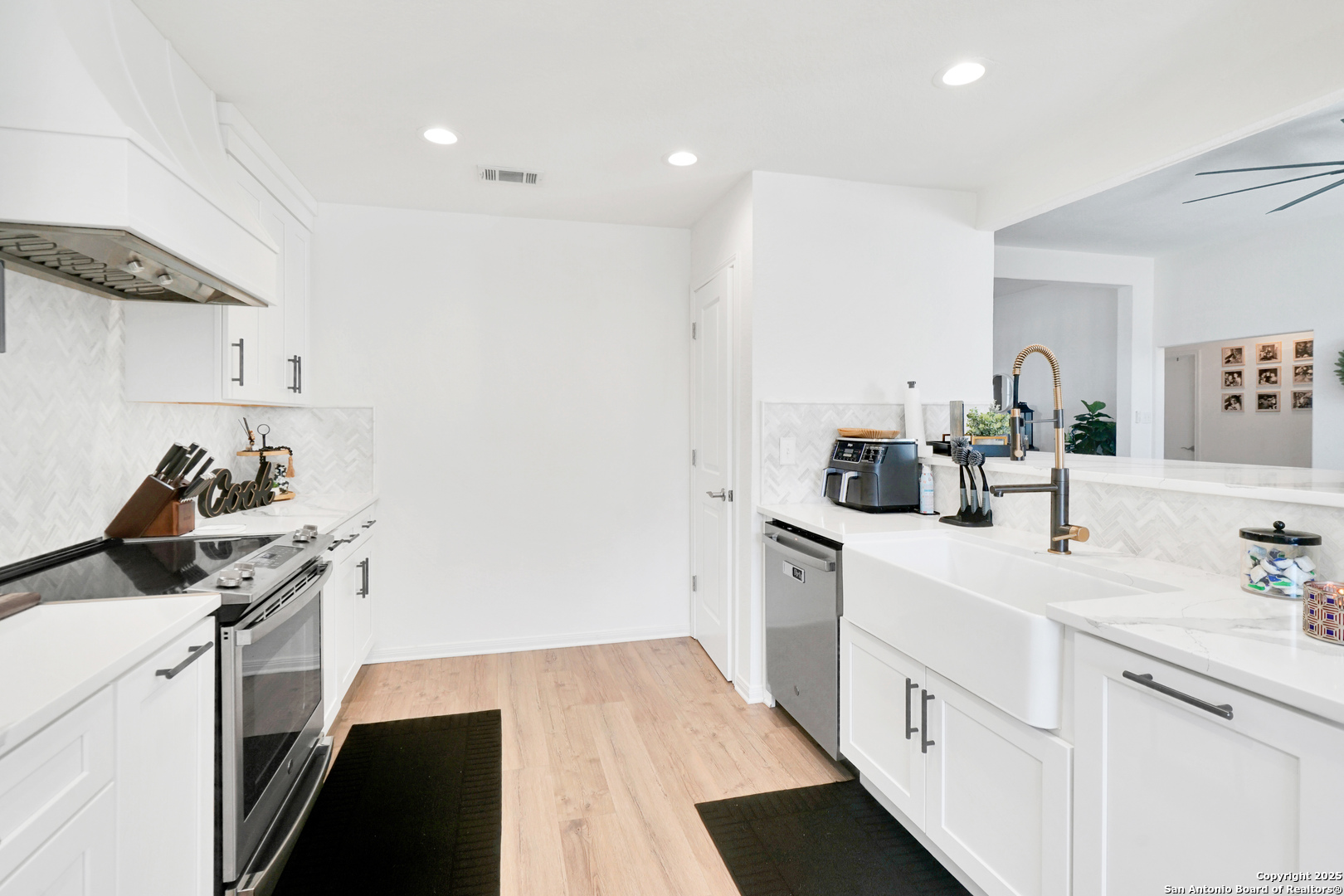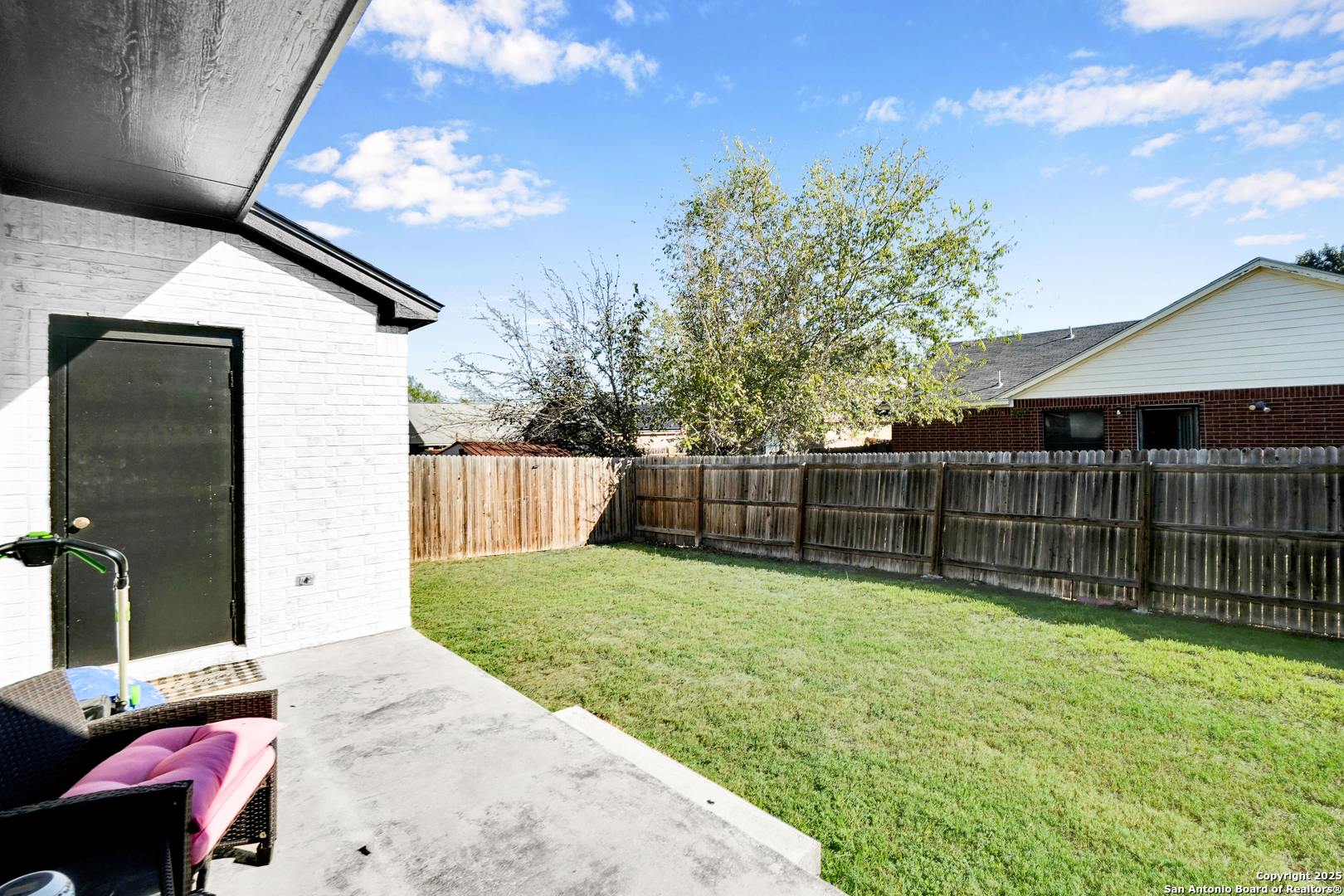Current interest rate may be assumable. Situated in the sought-after Highland Farms subdivision, this beautifully maintained and updated single-story, all-brick home offers 3 bedrooms, and 2 baths; combining style, functionality, and comfort. The home's open floor plan creates a seamless flow between the living and dining areas, providing bright, inviting spaces perfect for everyday living and entertaining. The split bedroom layout places the primary suite apart from the secondary bedrooms, offering privacy and a tranquil retreat. Bedrooms are carpeted for comfort, while the bathrooms and laundry room feature ceramic tile, and the remainder of the home, including the living room and kitchen, boasts upgraded laminate flooring. Recent updates are extensive and impressive, including a brand-new custom kitchen, a new roof, water heater, AC unit, laminate flooring, and exterior lime wash paint. Step outside to a generously sized, grassed backyard with a charming covered patio area, ideal for relaxing or hosting gatherings. Although the curtain rods, curtains and refrigerator are not included the Washer and Dryer may convey with the home purchase! This home's prime location ensures easy access to Ft. Sam, Randolph AFB, local schools, and shopping, making it a perfect blend of convenience, modern updates, and timeless appeal.