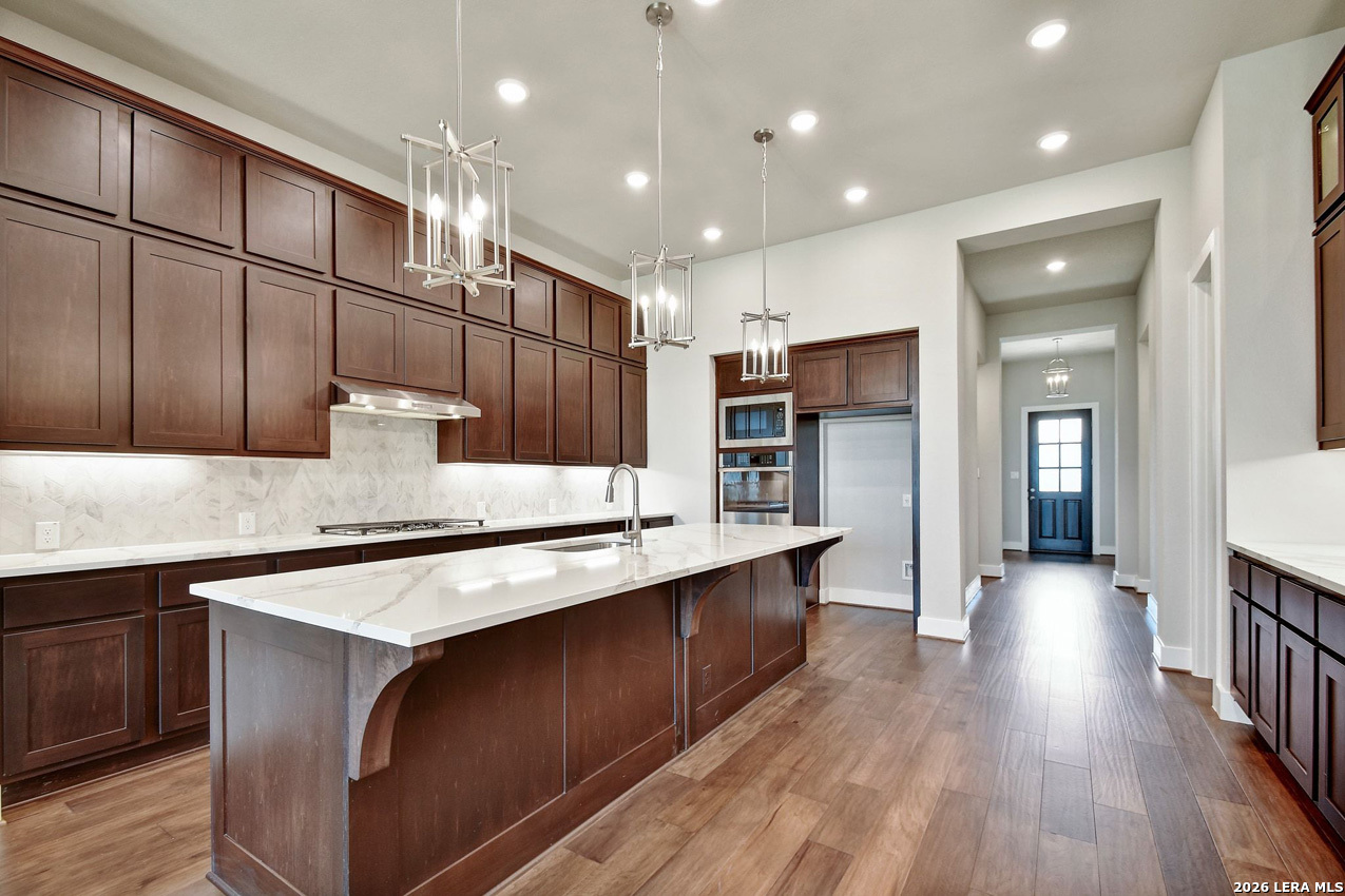 Move-In Ready Beauty at Highland Homes - Mont Blanc. Located just 1/2 mile from I-35 North off Eckhardt Rd, this stunning Ramsey floor plan offers the perfect blend of space, style, and convenience and it's ready for you to call home NOW. The heart of the home is a bright, open kitchen featuring. Double ovens, 5-burner gas cooktop, Quartz countertops Oversized kitchen island, Hutch with extra cabinetry. The kitchen flows seamlessly into the family room with vaulted ceilings, a gas-starter fireplace, and wood flooring throughout the main living areas-ideal for everyday living and entertaining. A private computer/office space is tucked just behind the family room, offering quiet functionality without feeling disconnected. Enjoy a spacious game room with large windows overlooking the backyard-perfect for relaxing or hosting guests. Also offers 4 Bedrooms | 3.5 Bathrooms, Study, and 3-Car Tandem Garage. This thoughtfully designed home checks every box for comfort, flexibility, and location. Don't miss your opportunity to make it yours! Offering great incentives towards the home and incentives towards buyer closing cost.