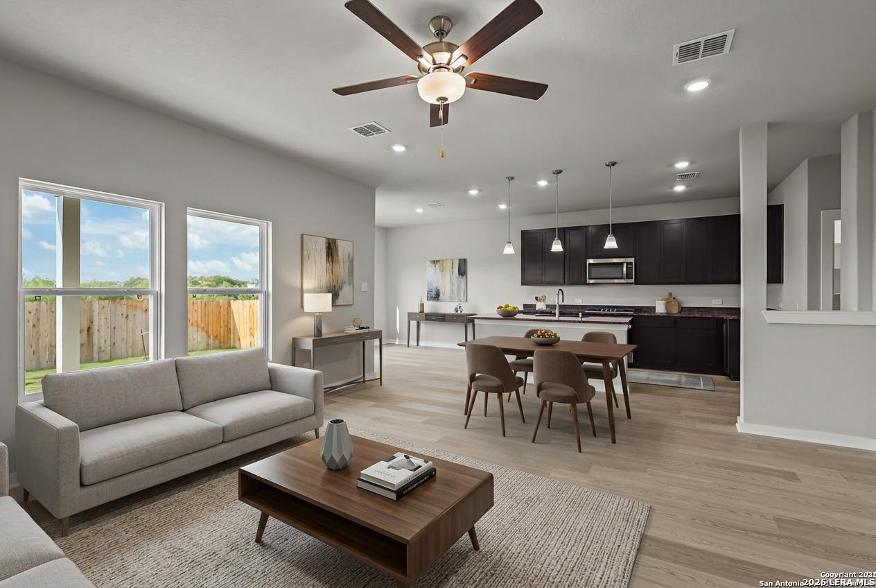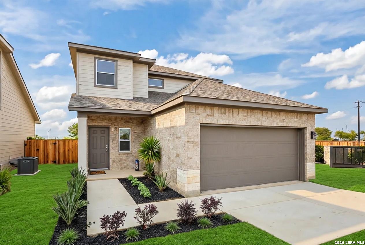 Welcome to the Kerr Plan! This modern two-story home offers 1,647 sq. ft. of thoughtfully designed living space, featuring 3 bedrooms and 2.5 baths in an open and bright layout. You'll love the low-maintenance lifestyle and energy-efficient features this home provides. The kitchen is a standout, showcasing a beautiful island, 42" cabinets, 9-foot ceilings, solid granite countertops, and stainless steel appliances. Enjoy the upstairs game room for relaxation or entertainment, and unwind outside on the covered patio-perfect for the Texas heat. The spacious primary suite includes a large bedroom, a well-appointed bathroom, and a walk-in closet. Situated in a greenbelt lot, this home offers added privacy for families and is close to the community amenity center. Come visit today and discover the charm of this beautiful home in Garden Grove!