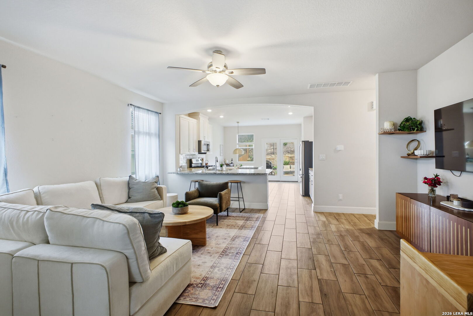 *** OPEN HOUSE, SATURDAY MARCH 14th 1P - 3P *** Welcome to your dream home! This move-in-ready single-story gem is nestled in a private cul-de-sac in highly desired resort style community of Cibolo Canyons, offering a fantastic lifestyle with easy access to everything you need. The home boasts excellent curb appeal and an open floor plan with natural light. Step into a spacious living room that seamlessly flows into a stunning kitchen, featuring white cabinets, granite countertops, stainless steel appliances, and gas cooking. French doors lead you to a covered patio overlooking a large backyard, perfect for family BBQs and outdoor play! The primary suite is a private oasis with a full bath, double vanity, and a large walk-in shower. In addition to the study, the home includes two additional spacious bedrooms, one with charming wallpaper, and a full bath with a decorative board and batten wall. Relish the beautifully landscaped yard, complete with rose bushes, agave plants, and over 20 different plants. Located on a large lot backing up to the 5th hole of the TPC Oaks Golf Course, enjoy tranquility and accessibility to walk up to the golf course! This amazing community offers resort-style amenities, including two amenity centers with a lazy river, large pools, a kids' splash pad, fitness centers, a soccer field, and scenic walking trails. Conveniently located off Bulverde Rd and Evans Rd, just minutes from Loop 1604, Hwy 281, JW Marriott Hill Country Resort, and excellent shopping and dining options. Don't miss the chance to make this beautiful home yours-schedule your showing today!