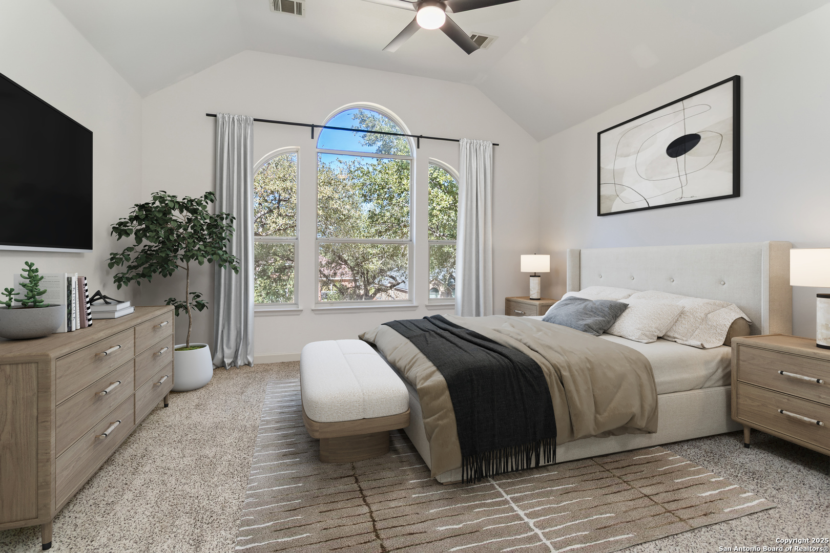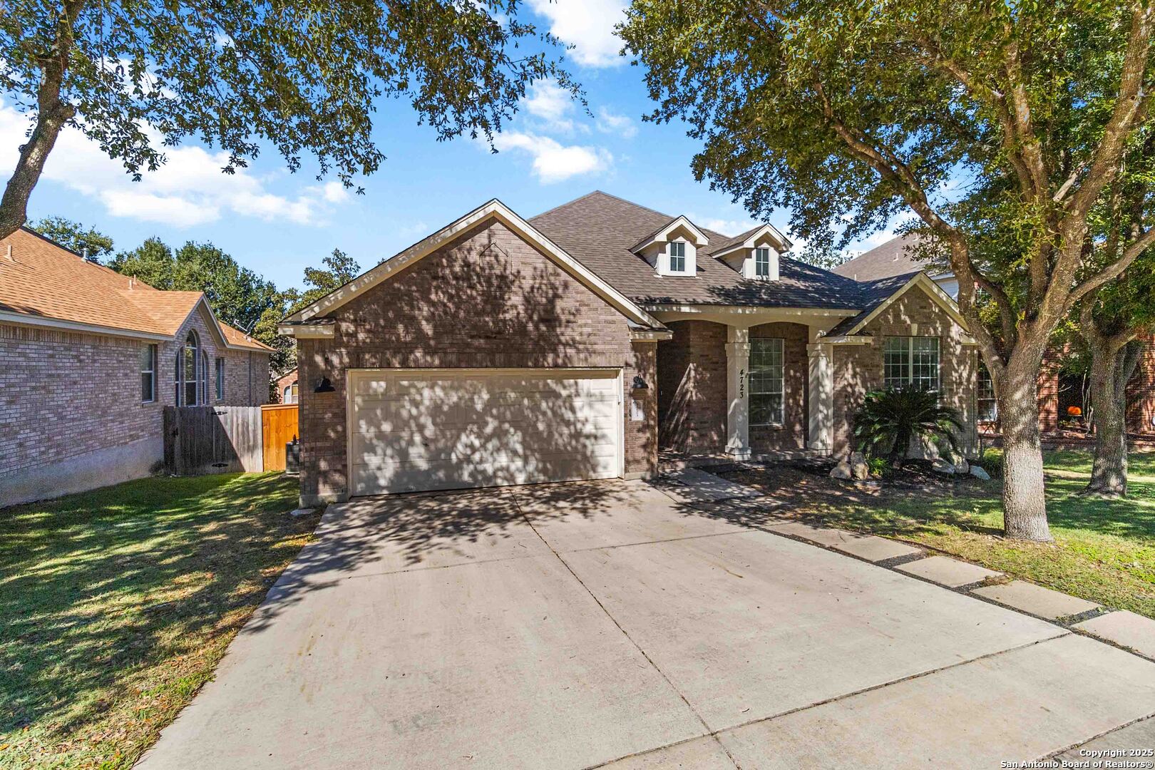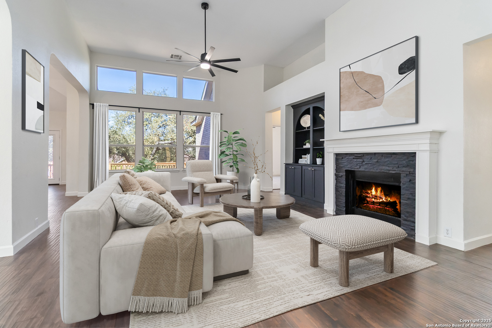 Welcome to Stonegate Hill Community-a highly sought-after gated enclave nestled in the serene Westover Hills area, surrounded by majestic old-growth trees that offer a tranquil retreat from the hustle and bustle of city life. Step into this stylish 4-bedroom home, where a grand entryway greets you with soaring ceilings and beautiful tile floors. The modern light fixtures and abundant windows fill the space with natural light, creating a warm and inviting ambiance. Unwind in the cozy living room by the fireplace, host memorable dinners in the elegant formal dining room, and unleash your culinary creativity in the expansive kitchen. The shaded backyard is perfect for relaxation, whether you're enjoying the deck or gathering around the outdoor fireplace on chilly evenings. All bedrooms, including a private office, are conveniently located on the main floor. The secluded primary suite is a true sanctuary, featuring a luxurious en-suite bathroom that every homeowner dreams of. Upstairs, discover a thoughtfully designed rec/media room. As a homeowner, you'll have access to fantastic community amenities, including a sparkling pool, tennis and basketball courts, a shaded playground, a clubhouse, picnic areas, and organized special events that foster a sense of community. Location is key! Enjoy top-tier healthcare with full-service hospitals, a variety of shopping and dining options, convenient freeway access, highly-rated NISD schools, and the excitement of SeaWorld & Santikos Movie Theater just minutes away. Don't miss out on the opportunity to take advantage of the seller's low VA assumable interest rate!