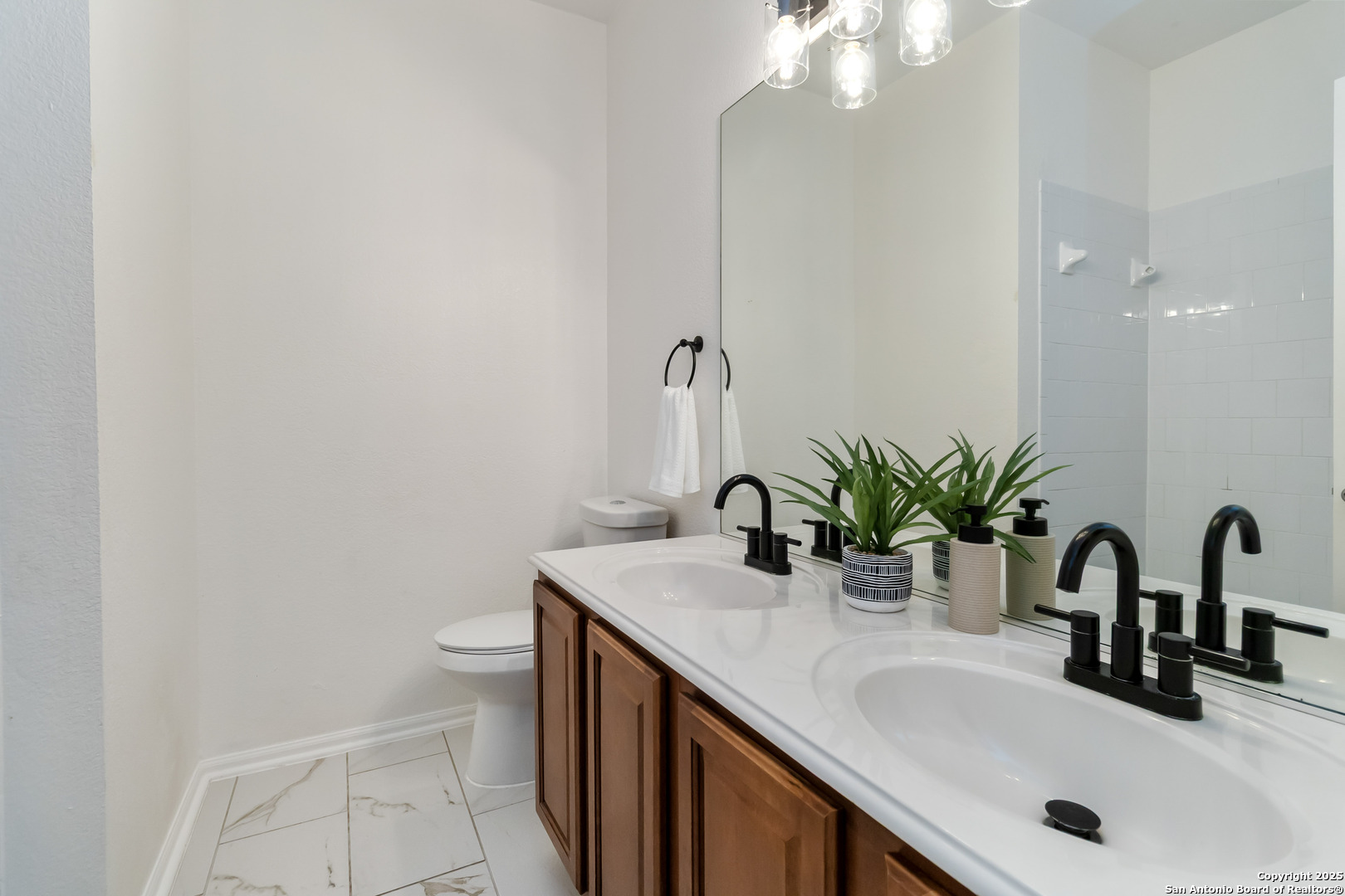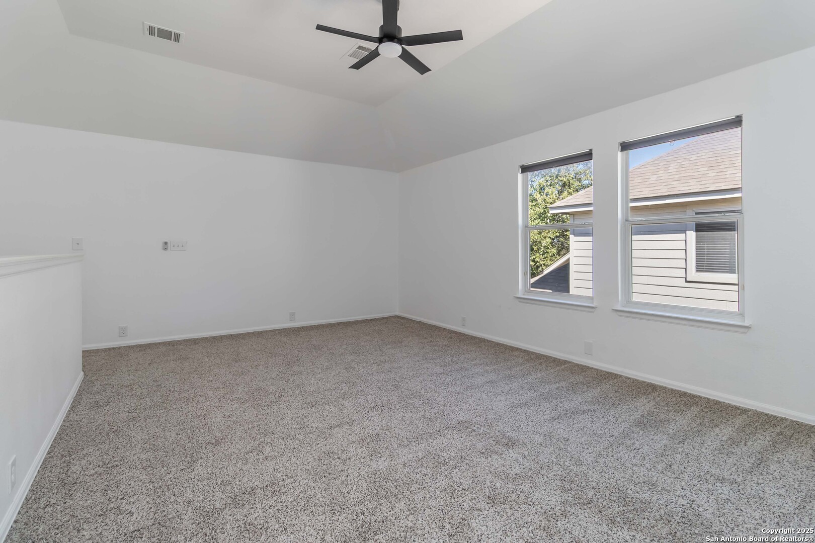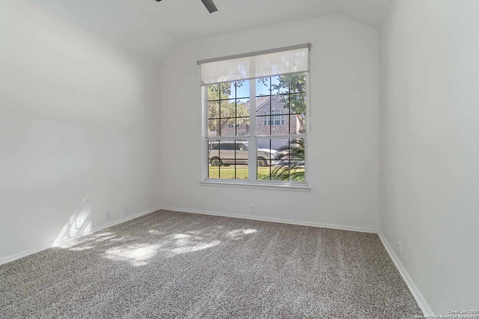 Welcome to Stonegate Hill Community-a highly sought-after gated enclave nestled in the serene Westover Hills area, surrounded by majestic old-growth trees that offer a tranquil retreat from the hustle and bustle of city life. Step into this stylish 4-bedroom home, where a grand entryway greets you with soaring ceilings and beautiful tile floors. The modern light fixtures and abundant windows fill the space with natural light, creating a warm and inviting ambiance. Unwind in the cozy living room by the fireplace, host memorable dinners in the elegant formal dining room, and unleash your culinary creativity in the expansive kitchen. The shaded backyard is perfect for relaxation, whether you're enjoying the deck or gathering around the outdoor fireplace on chilly evenings. All bedrooms, including a private office, are conveniently located on the main floor. The secluded primary suite is a true sanctuary, featuring a luxurious en-suite bathroom that every homeowner dreams of. Upstairs, discover a thoughtfully designed rec/media room. As a homeowner, you'll have access to fantastic community amenities, including a sparkling pool, tennis and basketball courts, a shaded playground, a clubhouse, picnic areas, and organized special events that foster a sense of community. Location is key! Enjoy top-tier healthcare with full-service hospitals, a variety of shopping and dining options, convenient freeway access, highly-rated NISD schools, and the excitement of SeaWorld & Santikos Movie Theater just minutes away. Don't miss out on the opportunity to take advantage of the seller's low VA assumable interest rate!