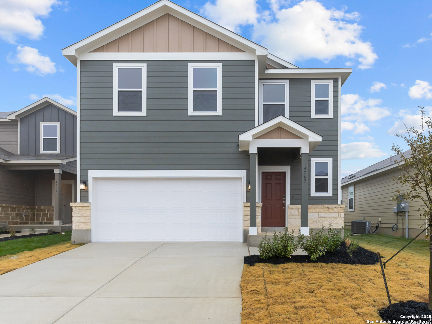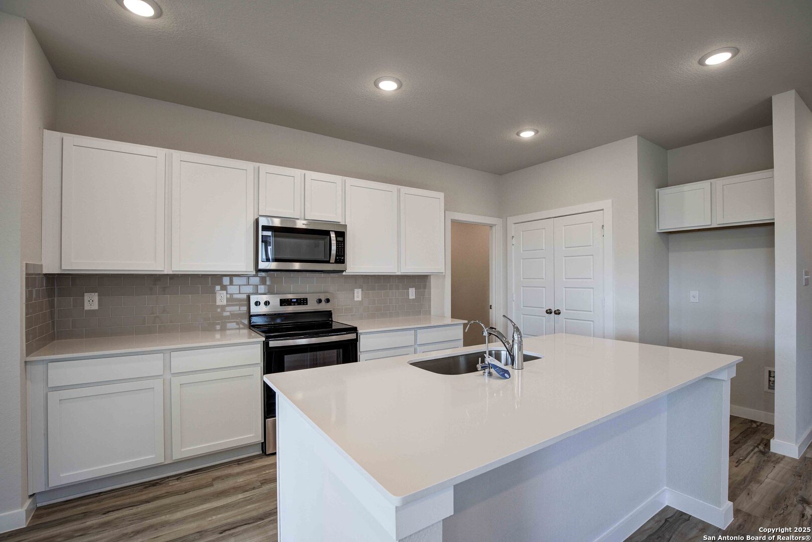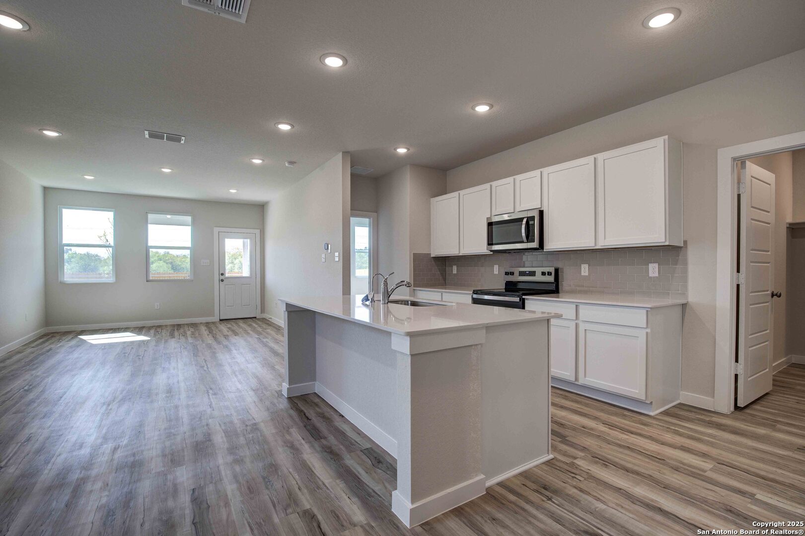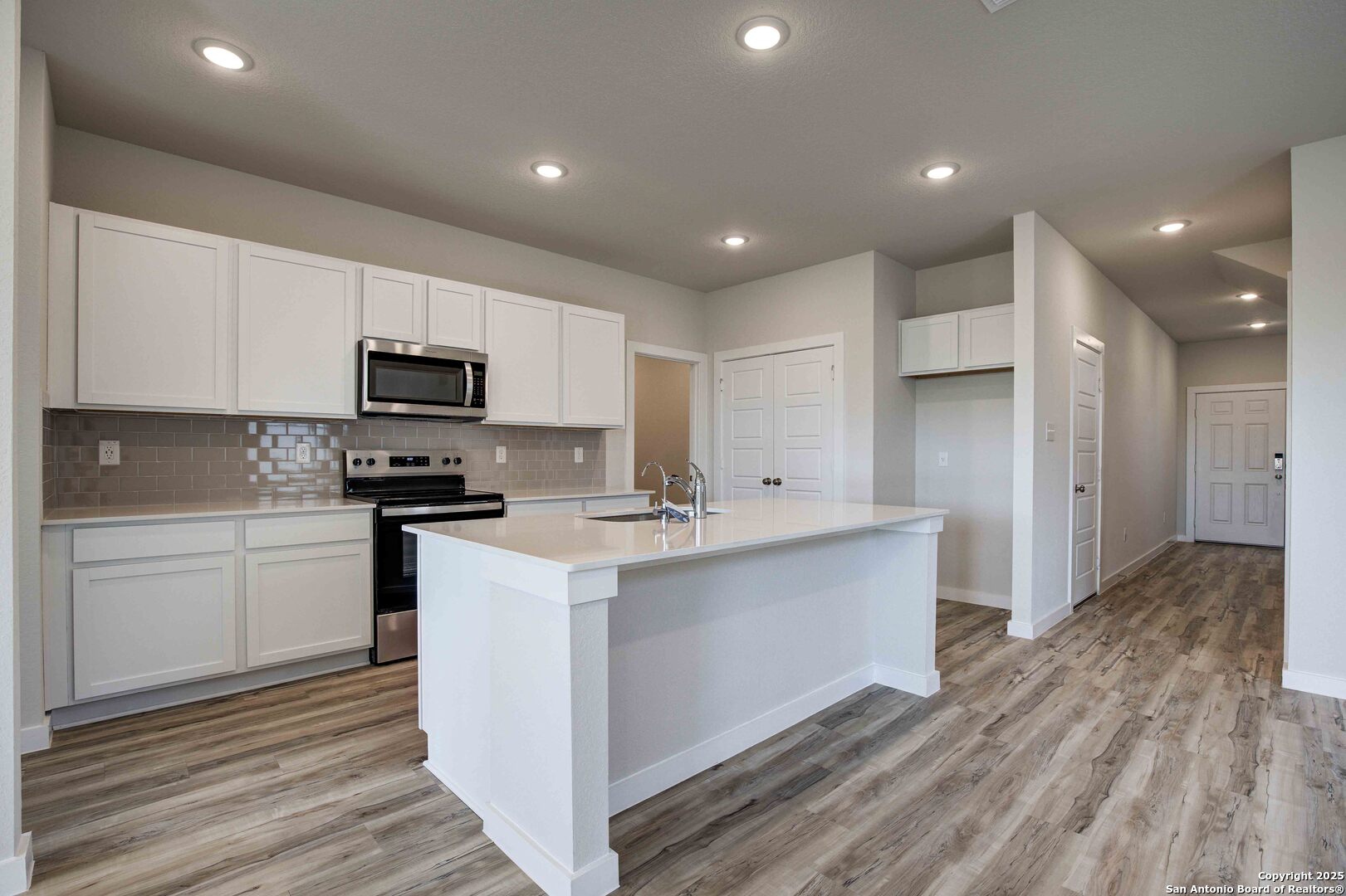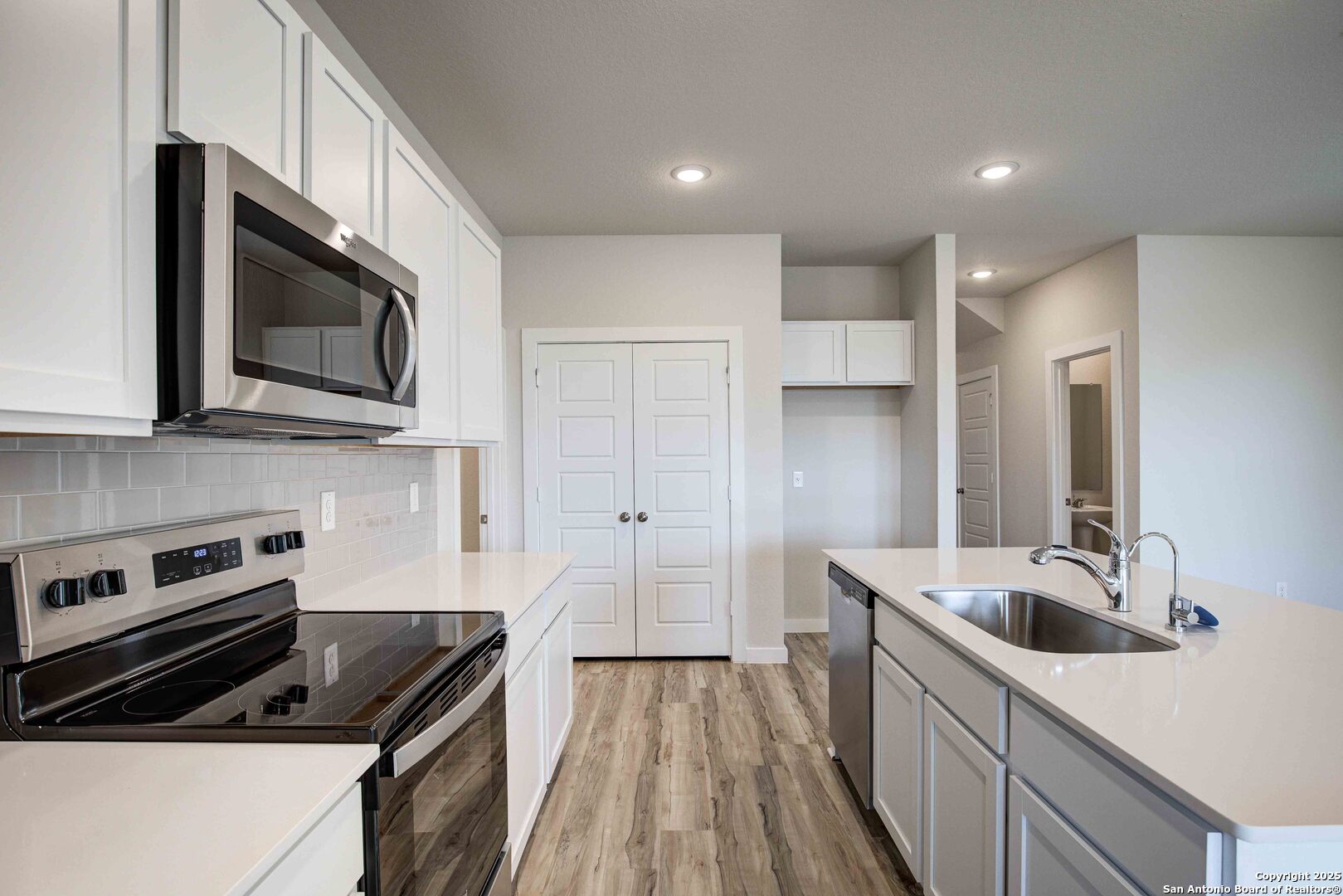 At the heart of the Hawthorne Plan plan, you'll find a welcoming open kitchen with a convenient center island and a built-in pantry. The kitchen oversees a spacious dining area and an airy great room a few steps away. The luxurious owner's suite is adjacent, boasting a walk-in closet and a private bath. You'll also find a powder room on this floor. There are three bedrooms upstairs, one which can be optioned as a versatile loft space. An additional full bath rounds out this level. Additional home highlights and upgrades: 36" white kitchen cabinets, quartz countertops and backsplash Luxury wood-look vinyl plank flooring in common areas Stainless-steel appliances Additional recessed throughout home Large walk-in shower at primary Cultured marble countertops and modern rectangular sinks in bathrooms Landscape package with sprinkler system Garage door opener with two remotes Exceptional included features, such as our Century Home Connect smart home package and more!