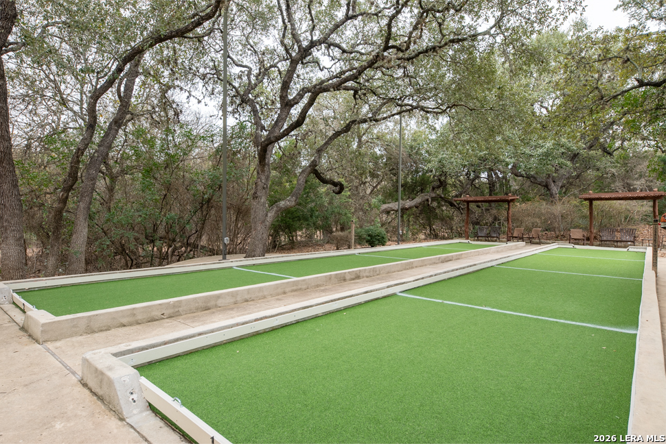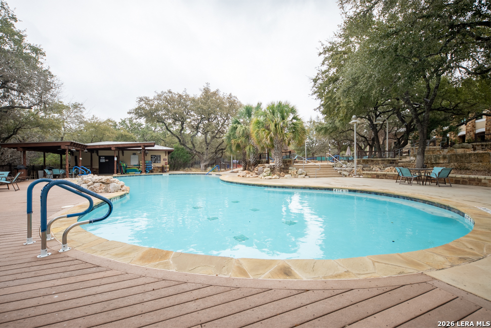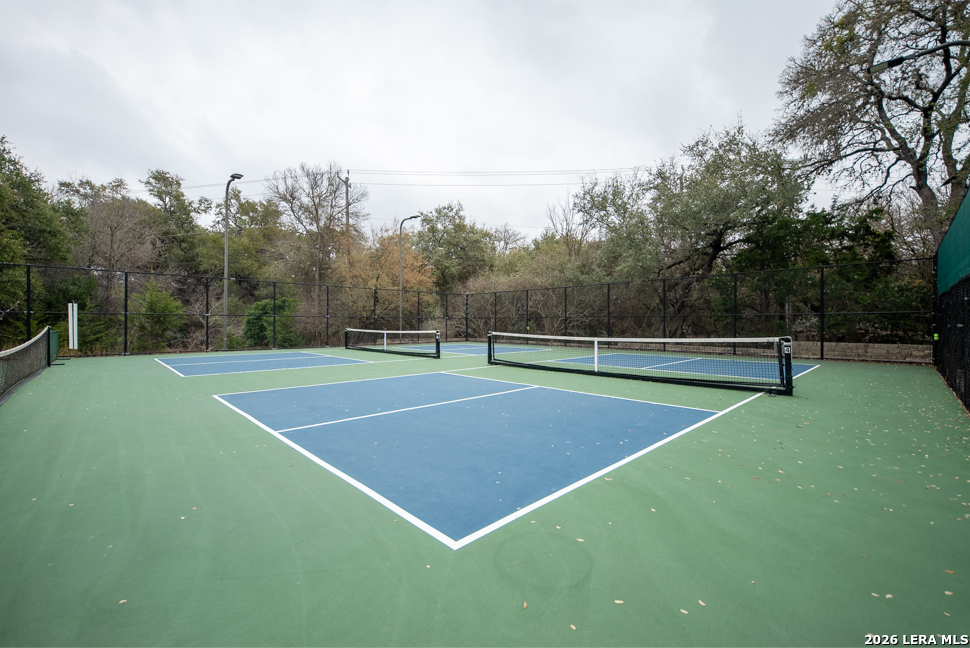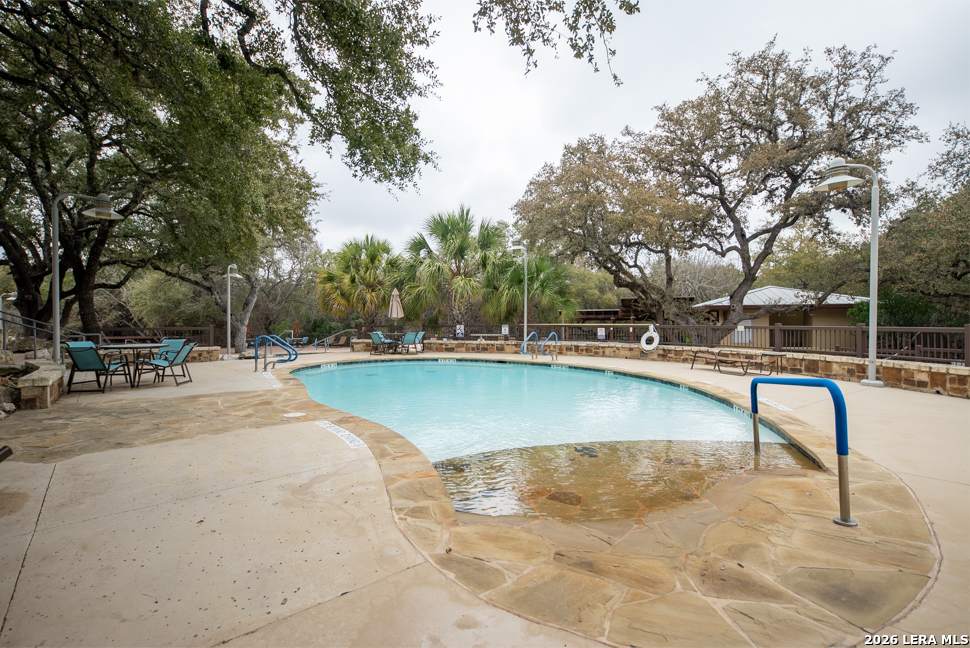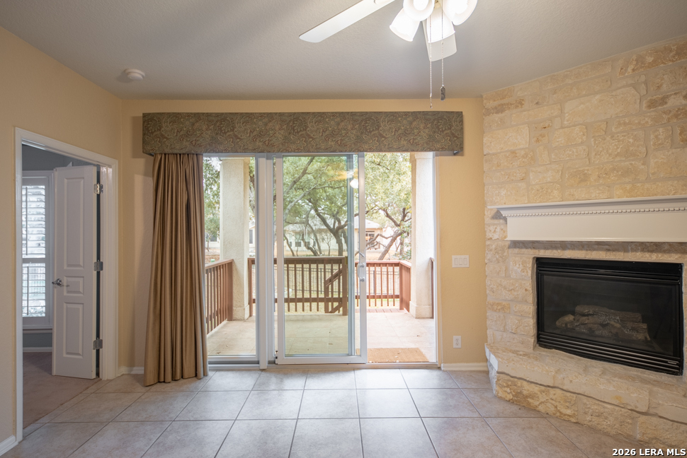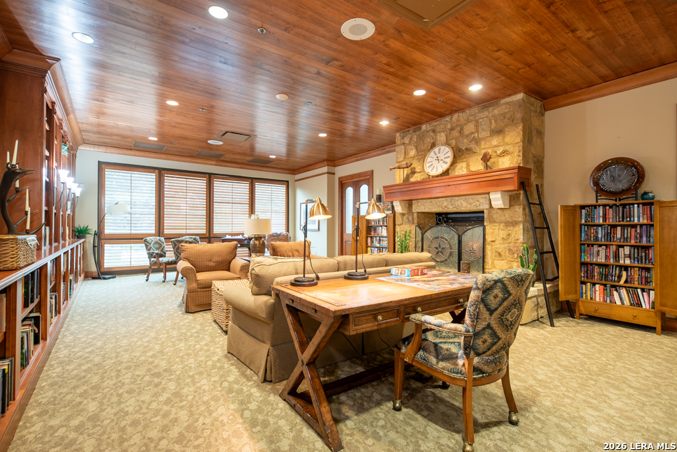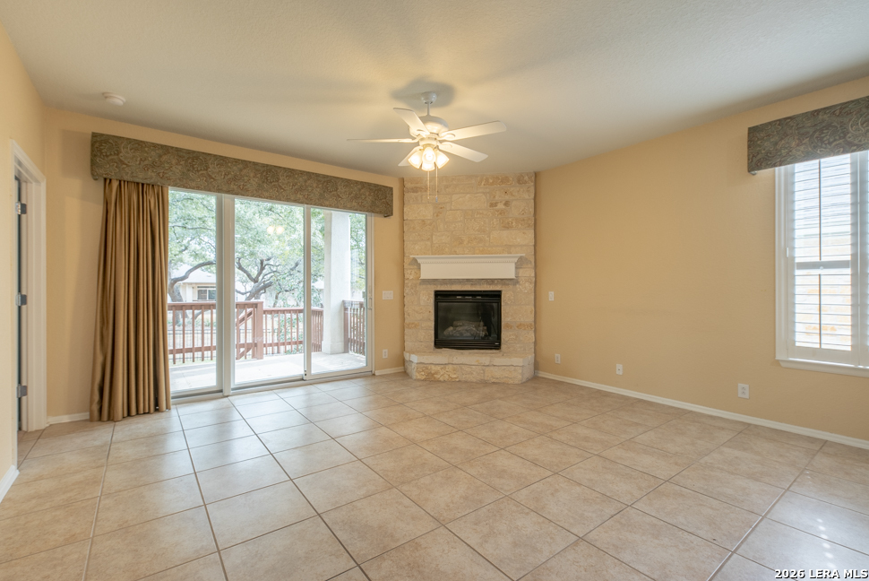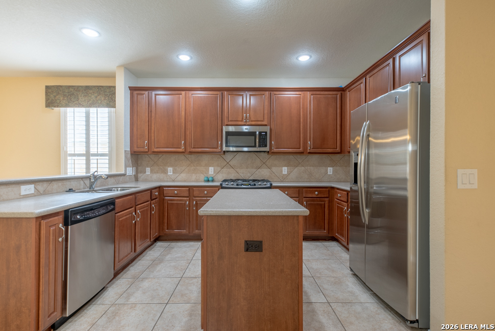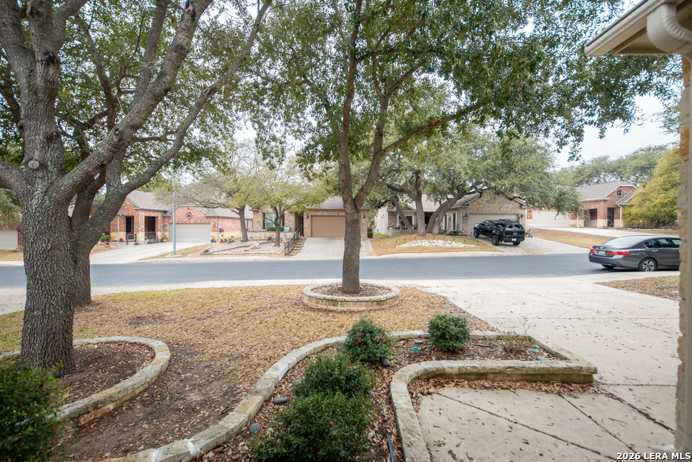 WELCOME TO THIS 55+ COMMUNITY! Eye-catching Sisterdale rock exterior, covered front porch, and beautiful landscaping greet you at the door. Inside, enjoy 16x16 tile flooring throughout (carpet only in bedrooms), designer neutral paint, and a striking corner rock fireplace in the open living area. The kitchen is a chef's dream with Corian countertops, large center island, tile backsplash, breakfast bar, and stainless steel appliances, including gas cooktop, refrigerator, and front-load washer and dryer-all included. Plantation shutters add elegance throughout. The split bedroom floor plan ensures privacy, while the oversized 2-car garage provides extra storage or space for a golf cart. With upscale finishes, thoughtful design, and a like-new feel, this home is a rare find. Schedule your showing today-don't miss this one!