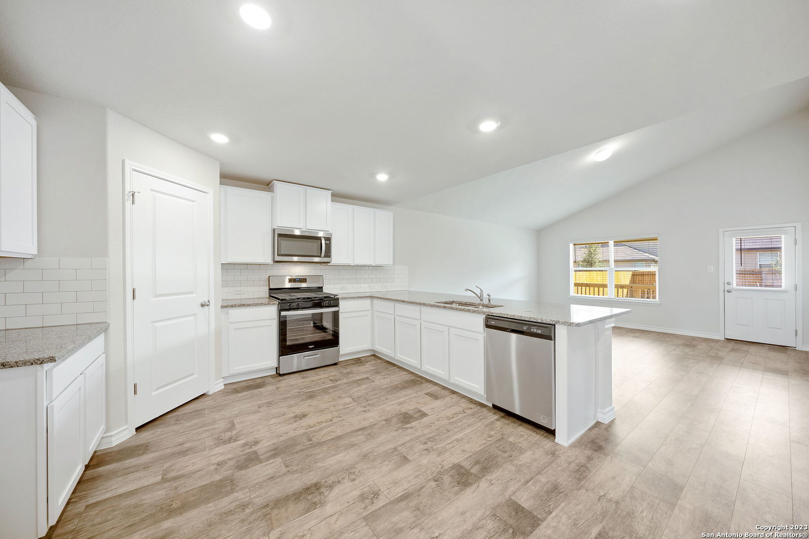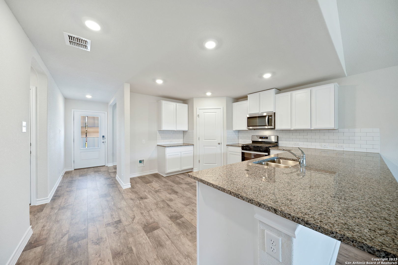 Brand new 2 story home located in Riverstone. 4 bedrooms, 2.5 bathrooms , and an office. Step inside this newly built property that has vinyl plank throughout the first floor open floor plan. The kitchen offers stainless steel appliances, granite countertops, and a huge breakfast bar. Primary room is split with a ceiling fan and large walk in closet. The primary bathroom has double vanities, stand in shower, and garden tub. Upstairs you will find a large loft and the remaining bedrooms. Large fenced in ba