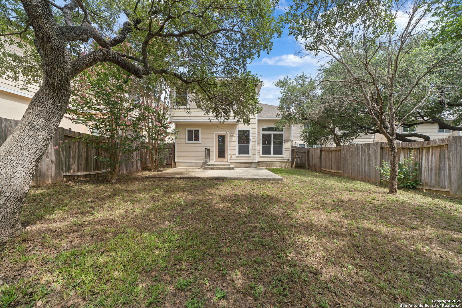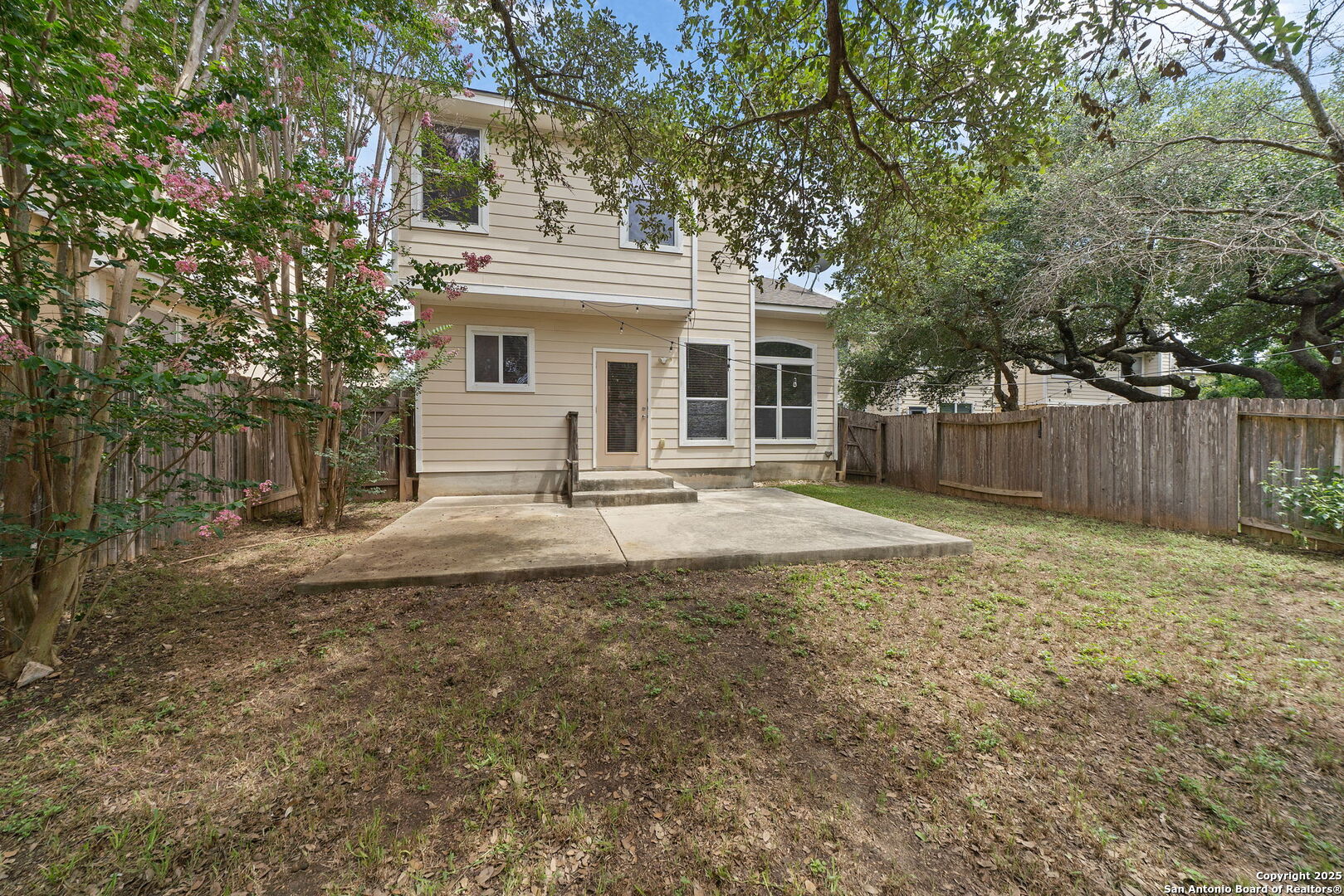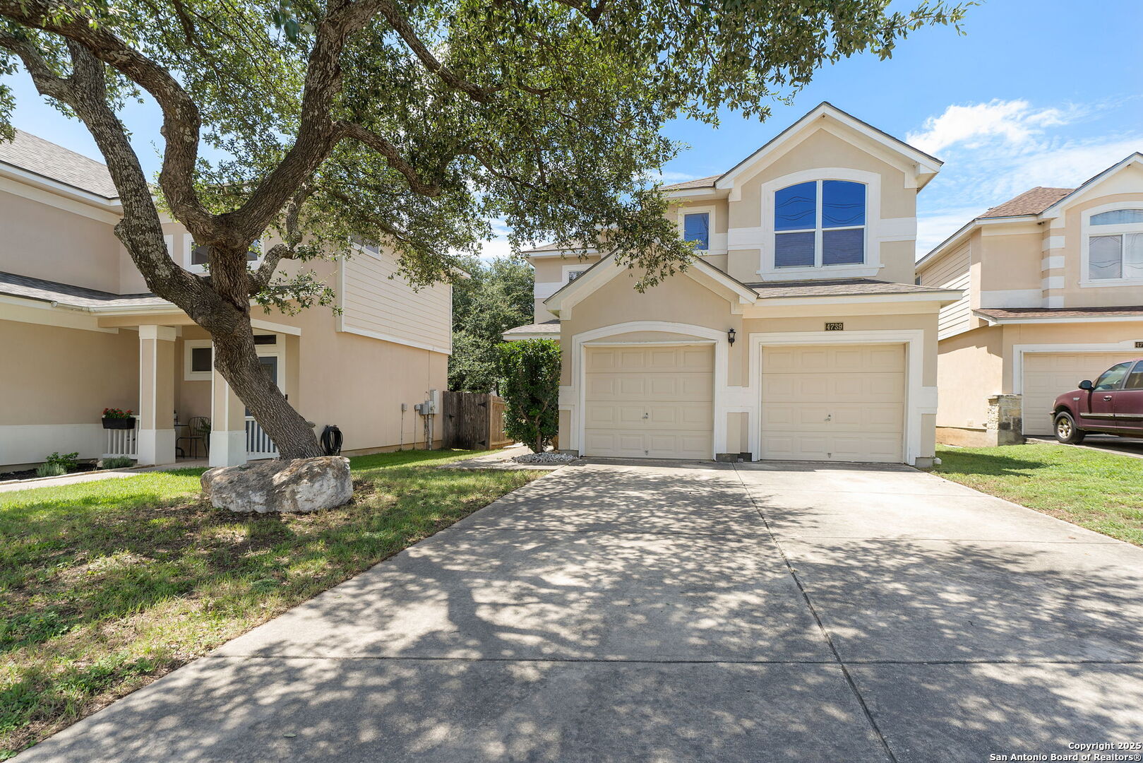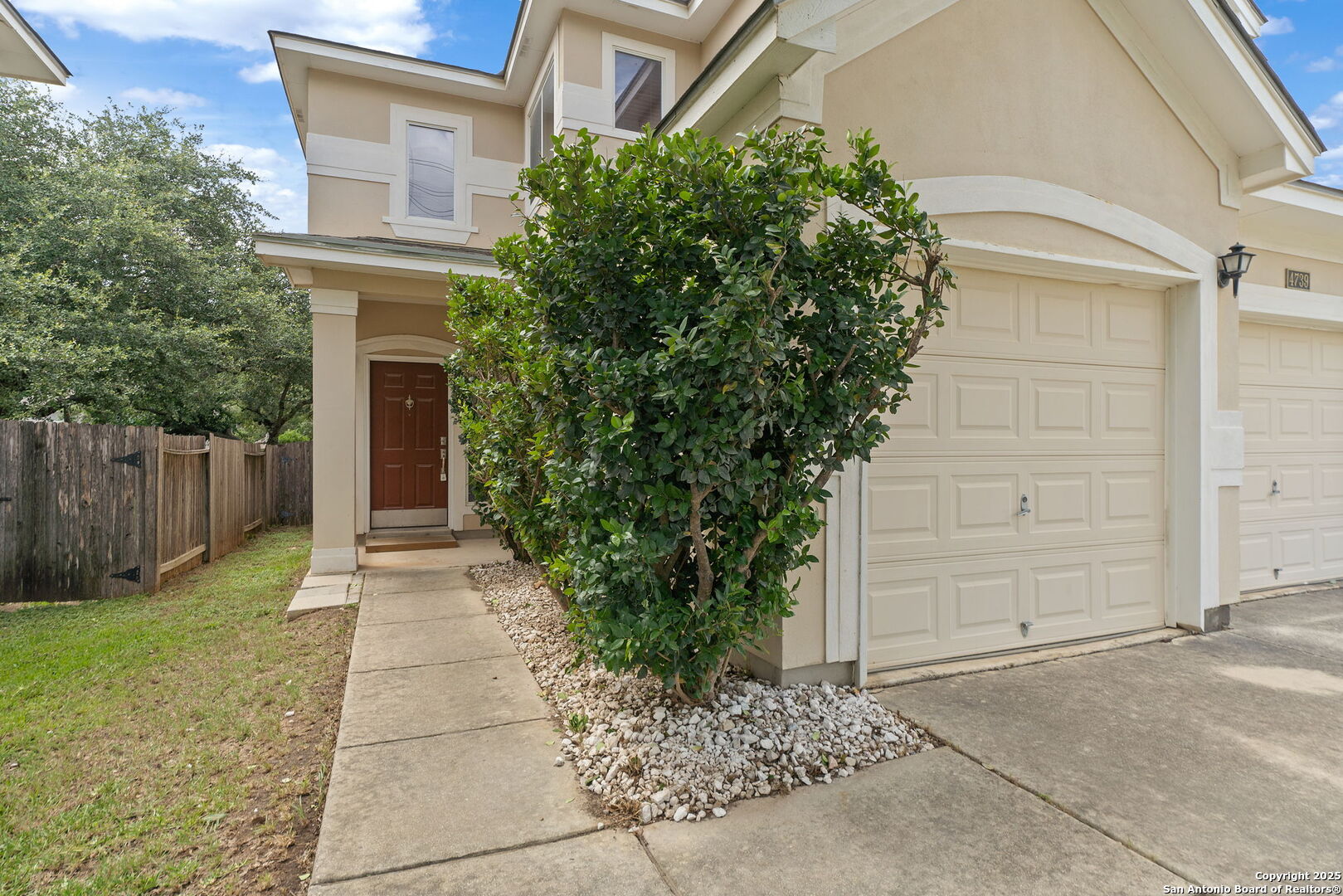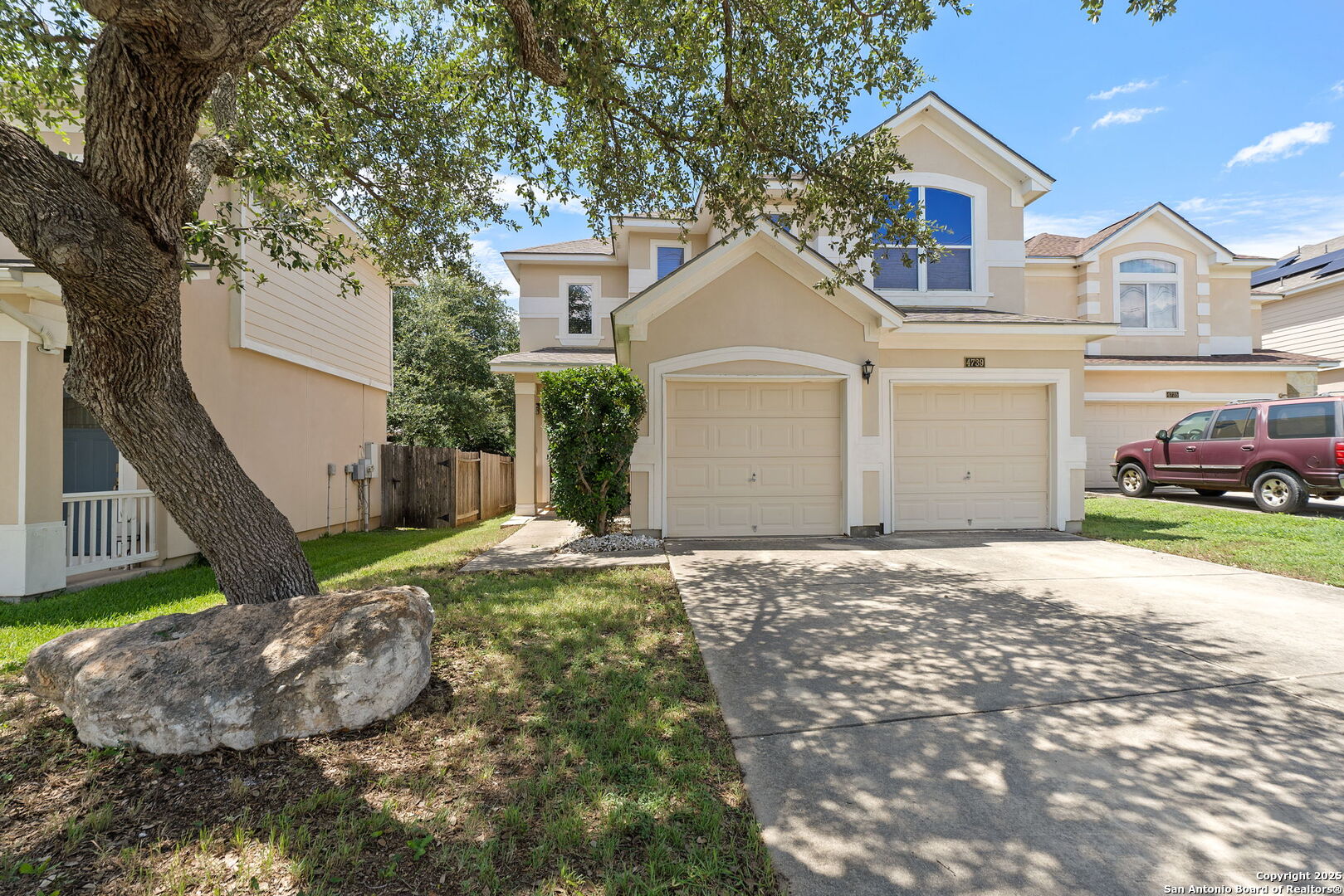 Spacious and inviting 2-story home featuring 3 bedrooms and 2 bathrooms. Enjoy soaring high ceilings that enhance the open feel of the living space. The kitchen is designed for both function and style, offering a large island, modern appliances, and ample countertop and cabinet space. Tile flooring throughout the downstairs adds durability and easy maintenance, while vinyl flooring upstairs offers comfort and a modern look. Additional highlights include a 2-car garage, washer and dryer included, and a large fenced-in backyard-perfect for outdoor enjoyment. Well-proportioned bedrooms complete this comfortable and functional home. Conveniently located with quick access to I-10, a short drive to The Rim and La Cantera, and just 20 minutes to downtown San Antonio. Front yard maintenance included