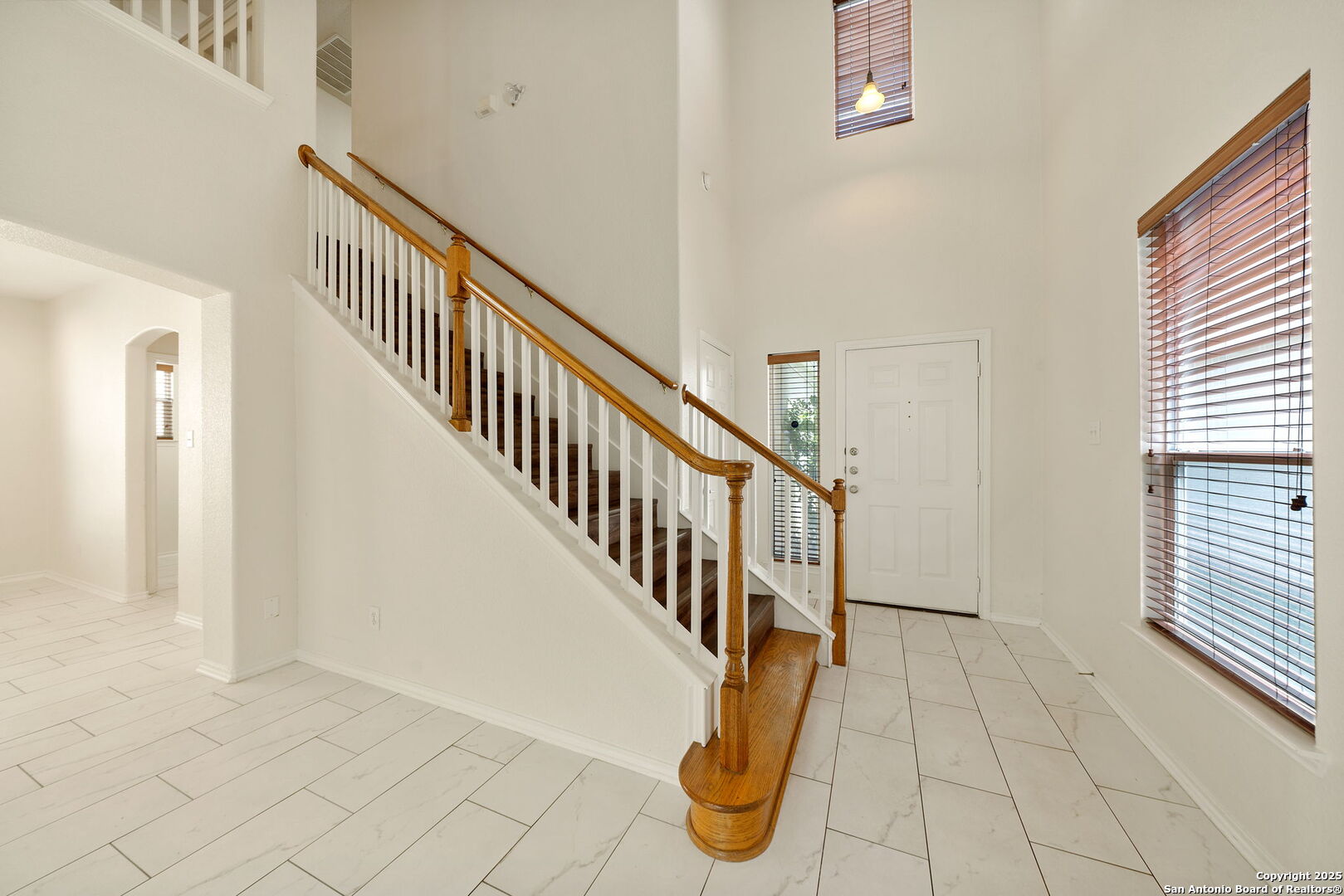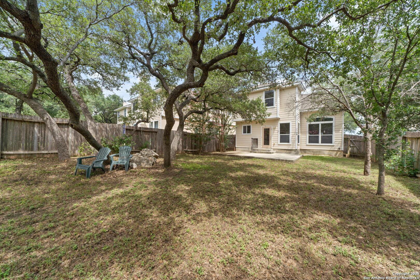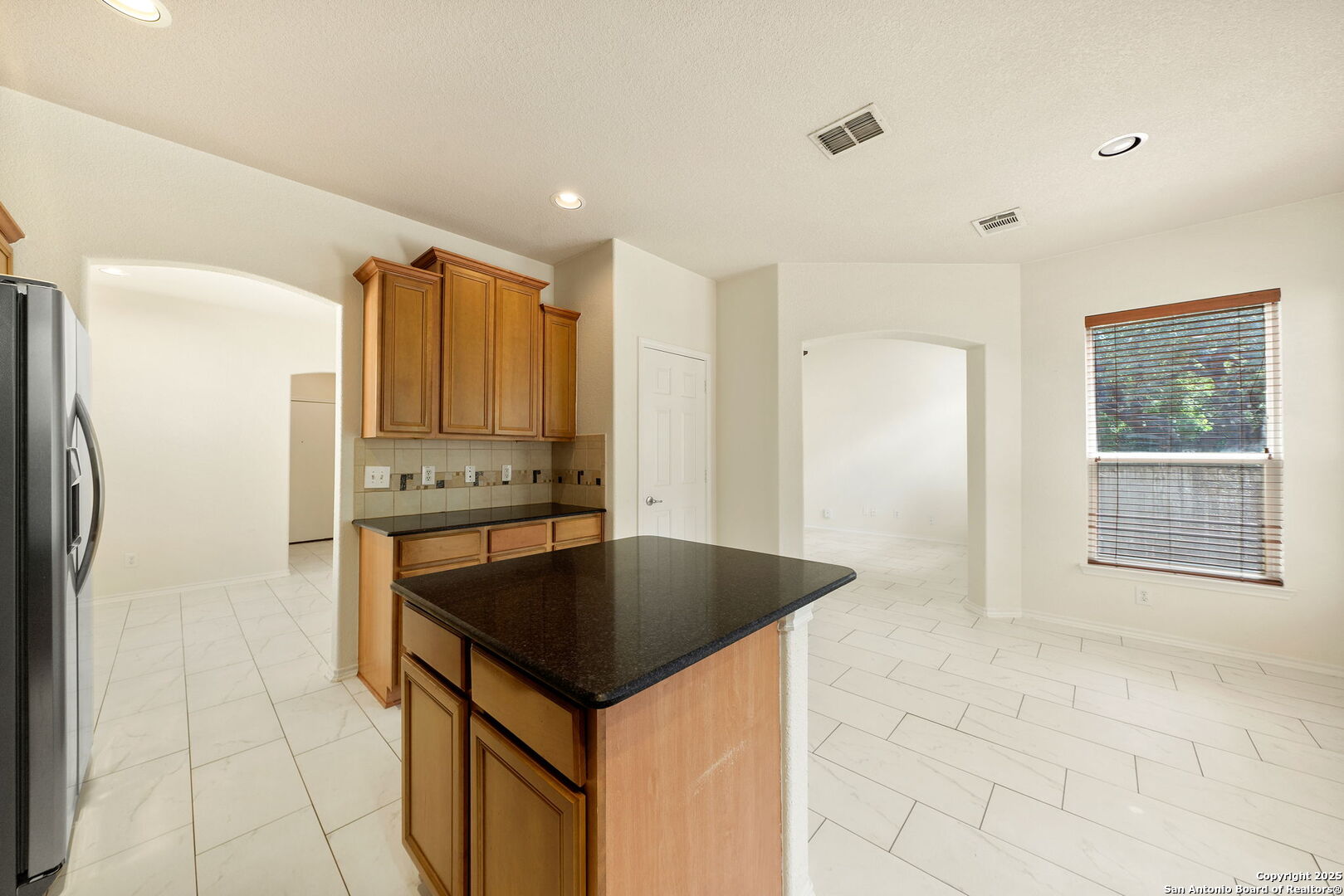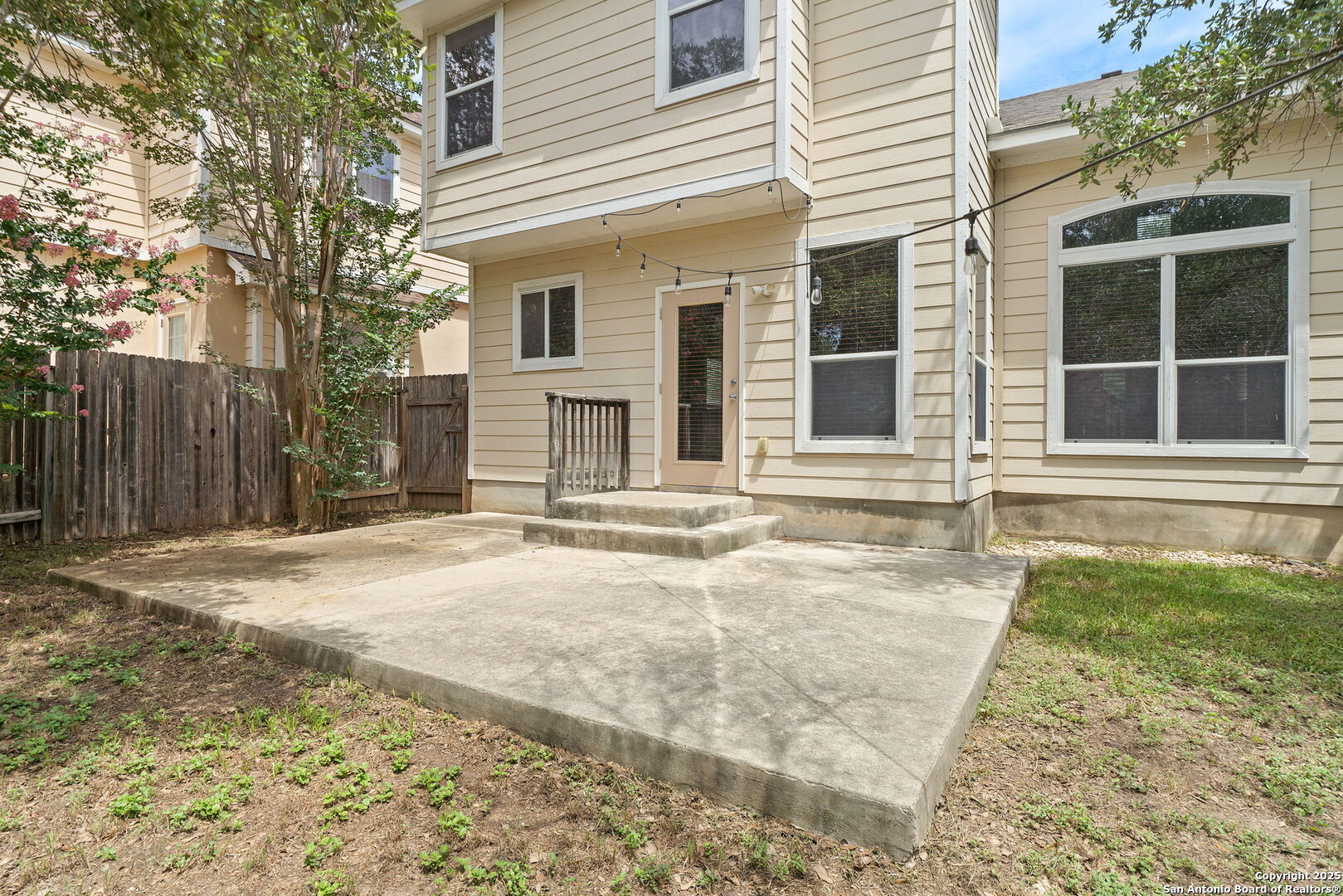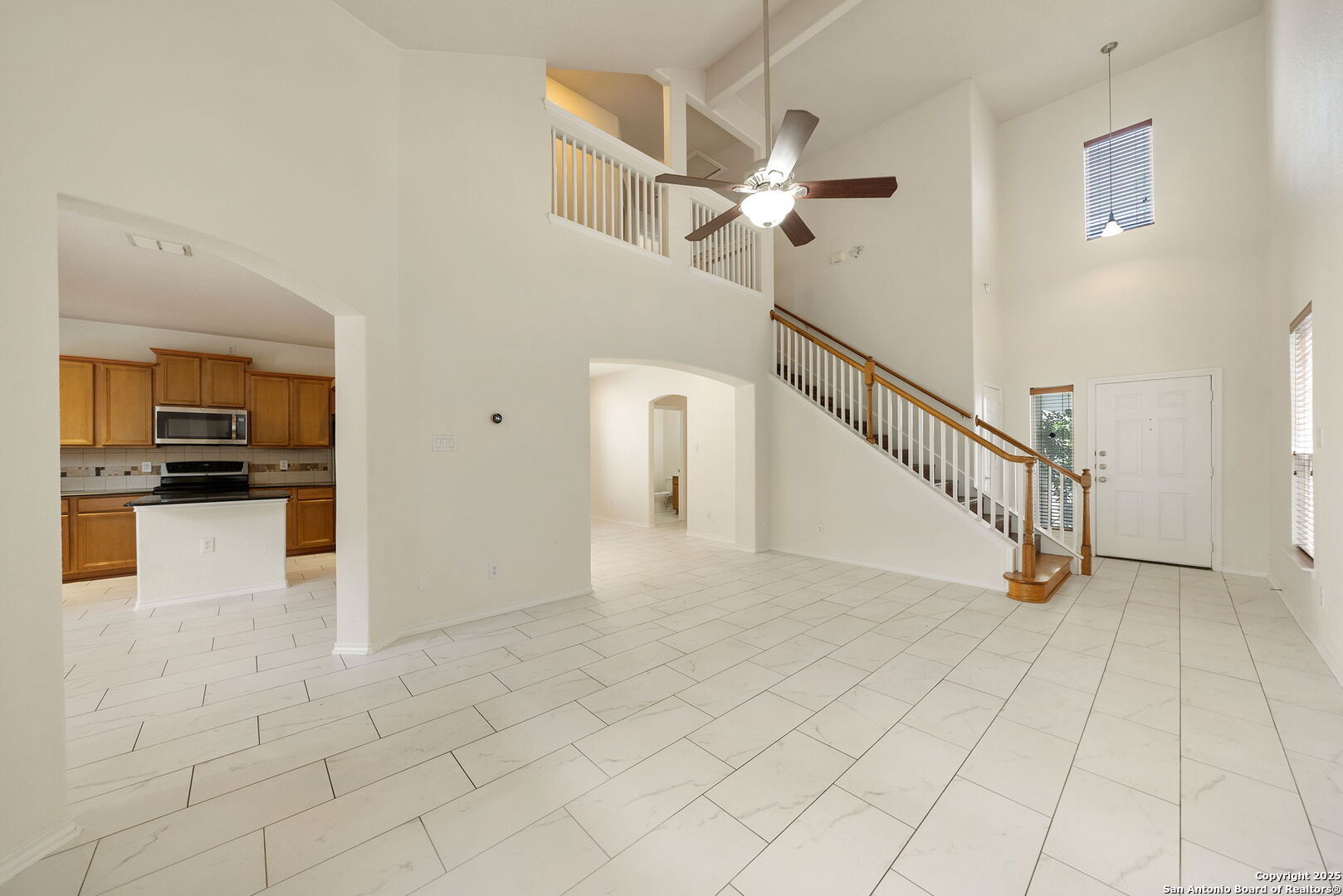Spacious and inviting 2-story home featuring 3 bedrooms and 2 bathrooms. Enjoy soaring high ceilings that enhance the open feel of the living space. The kitchen is designed for both function and style, offering a large island, modern appliances, and ample countertop and cabinet space. Tile flooring throughout the downstairs adds durability and easy maintenance, while vinyl flooring upstairs offers comfort and a modern look. Additional highlights include a 2-car garage, washer and dryer included, and a large fenced-in backyard-perfect for outdoor enjoyment. Well-proportioned bedrooms complete this comfortable and functional home. Conveniently located with quick access to I-10, a short drive to The Rim and La Cantera, and just 20 minutes to downtown San Antonio. Front yard maintenance included