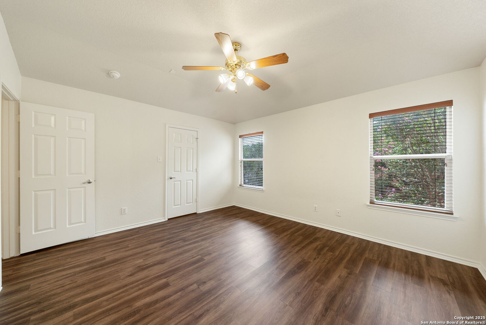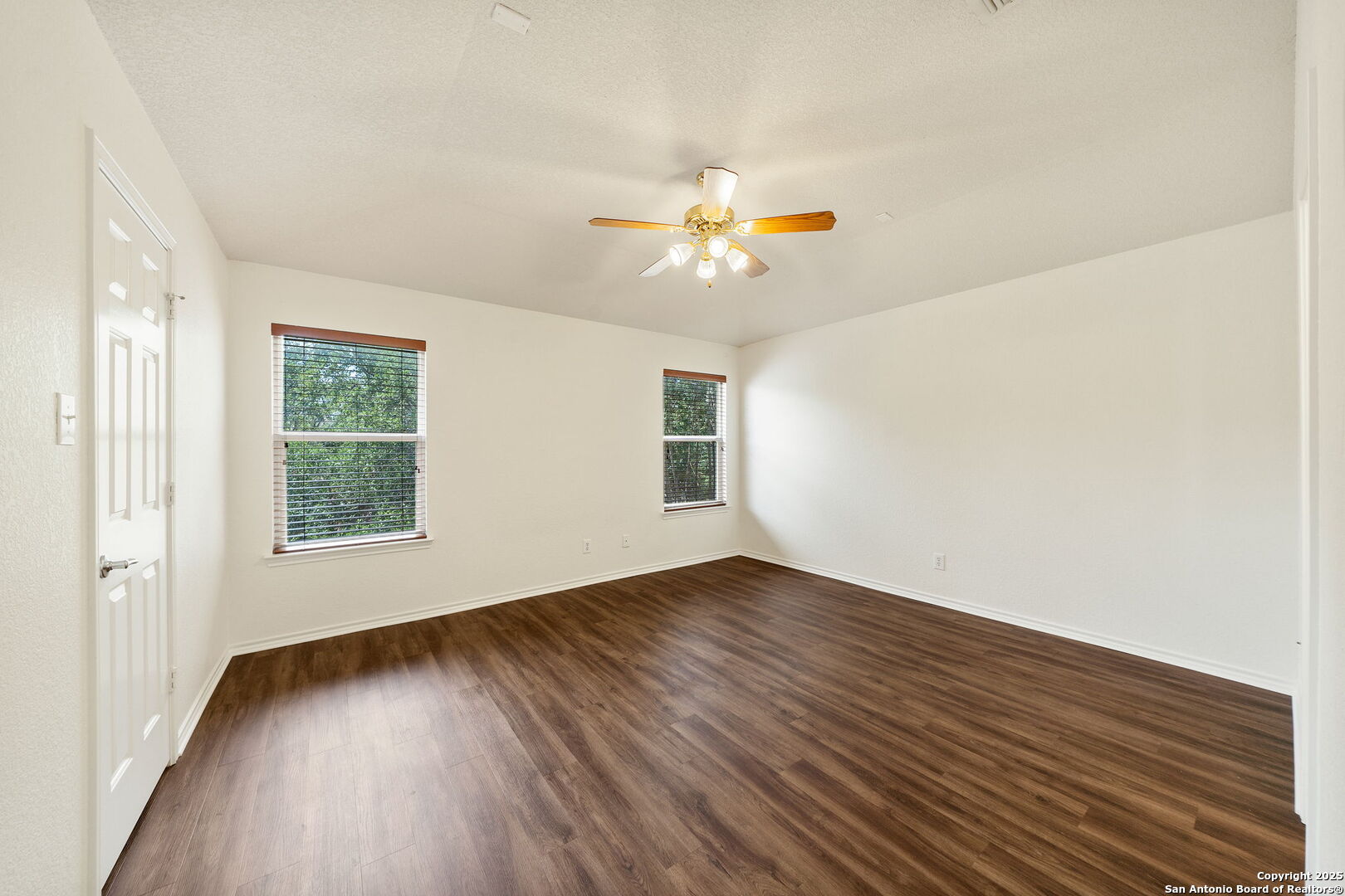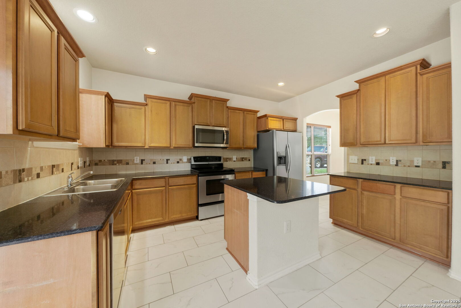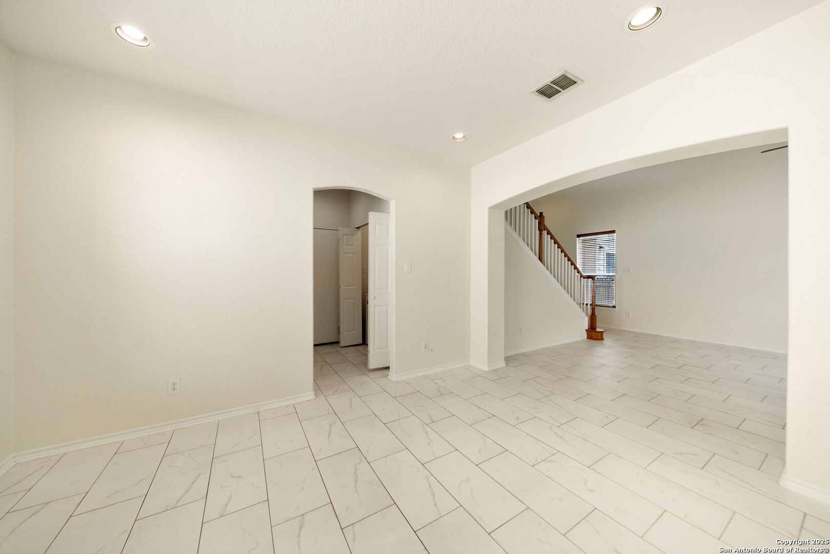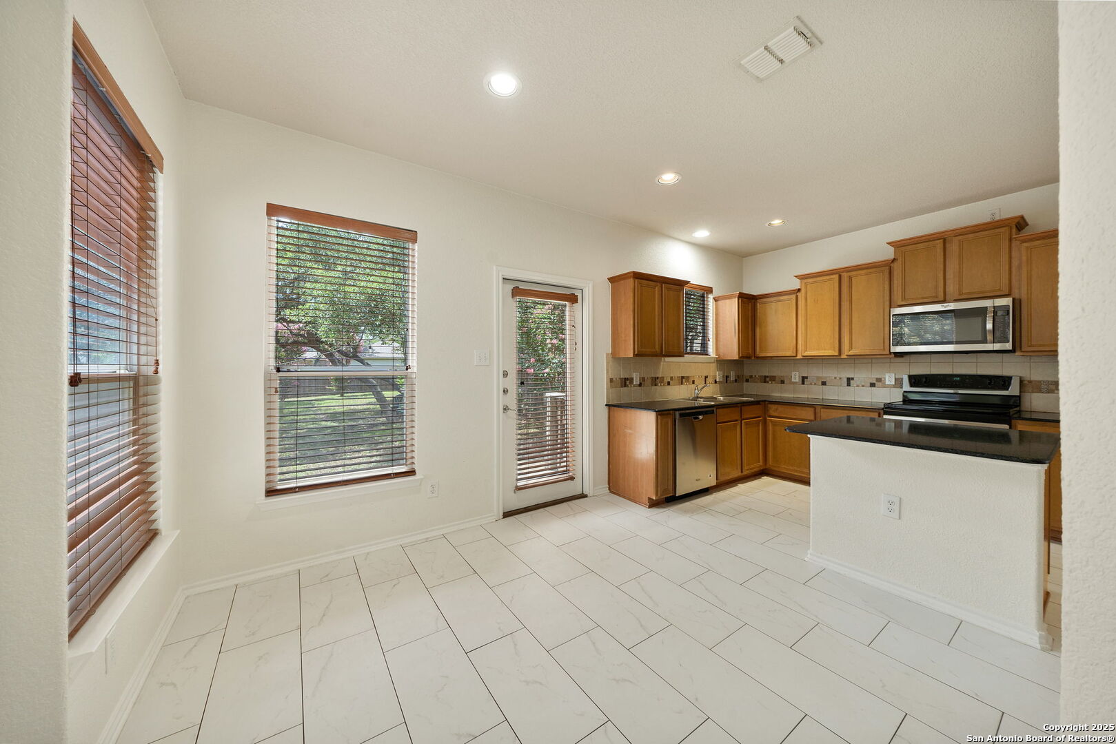 Spacious and inviting 2-story home featuring 3 bedrooms and 2 bathrooms. Enjoy soaring high ceilings that enhance the open feel of the living space. The kitchen is designed for both function and style, offering a large island, modern appliances, and ample countertop and cabinet space. Tile flooring throughout the downstairs adds durability and easy maintenance, while vinyl flooring upstairs offers comfort and a modern look. Additional highlights include a 2-car garage, washer and dryer included, and a large fenced-in backyard-perfect for outdoor enjoyment. Well-proportioned bedrooms complete this comfortable and functional home. Conveniently located with quick access to I-10, a short drive to The Rim and La Cantera, and just 20 minutes to downtown San Antonio. Front yard maintenance included