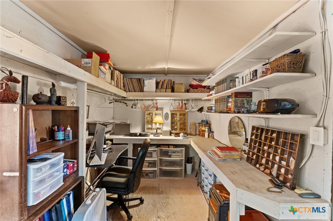 A peaceful retreat with your own bit of Texas country is what this property is all about! It features a 1 bedroom, 1 bathroom, home with a laundry area, office space and combined living, dining and kitchen. The exterior features a covered patio, plenty of shade trees and 5.78 acres! Located not too far from the amenities of the city but just far enough out in the country. Whether you are looking to downsize and simplify or live in the cabin while you’re building your dream home come see why this one will work for you!
