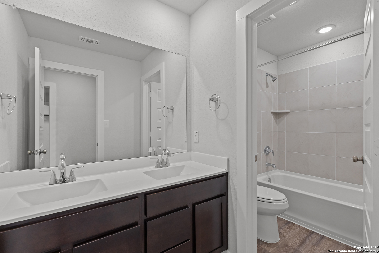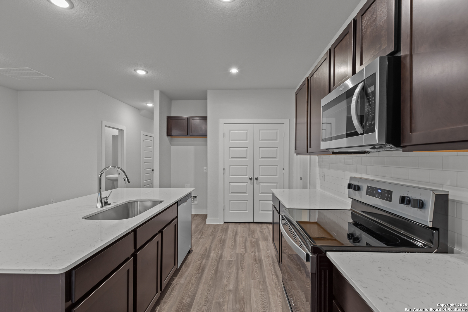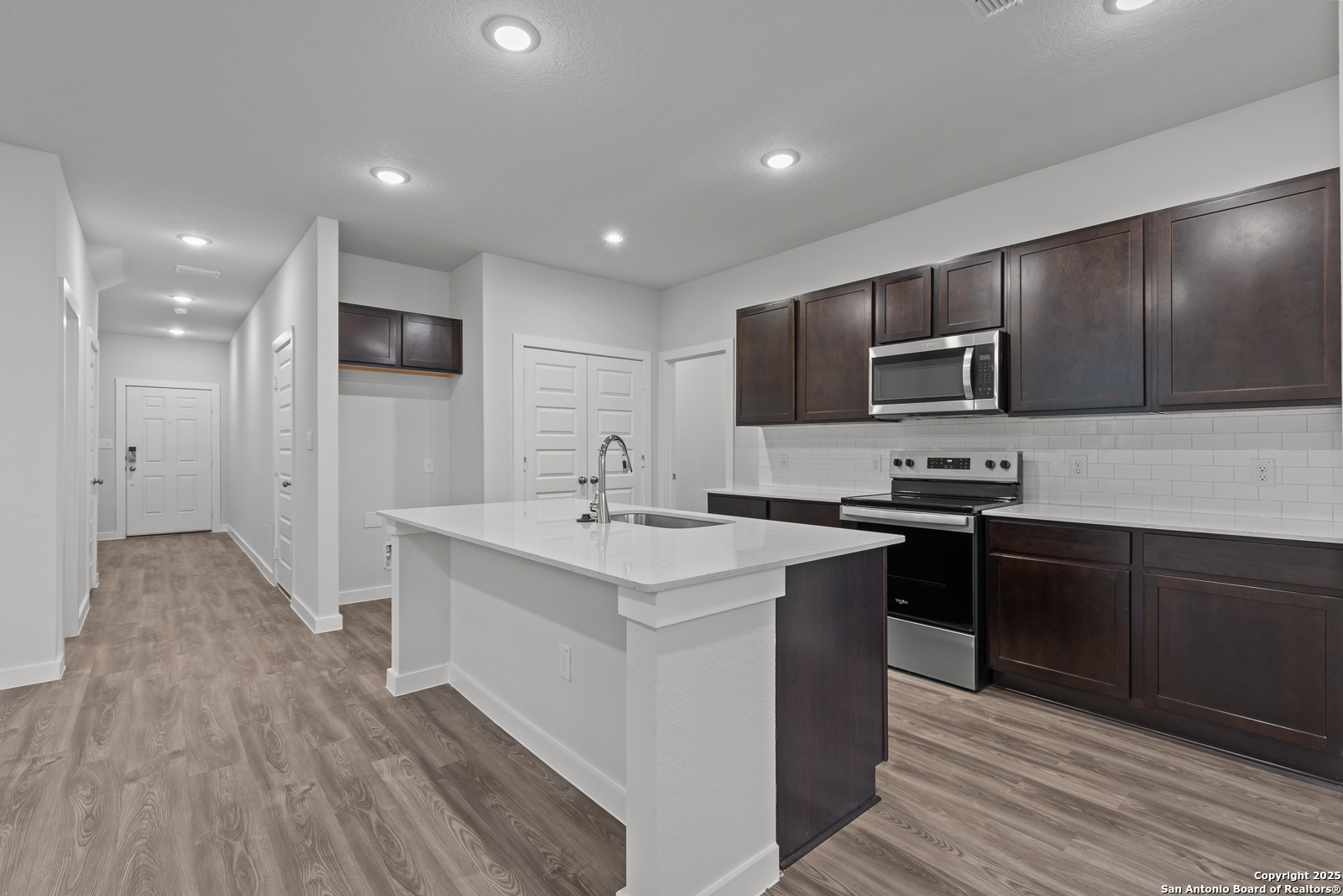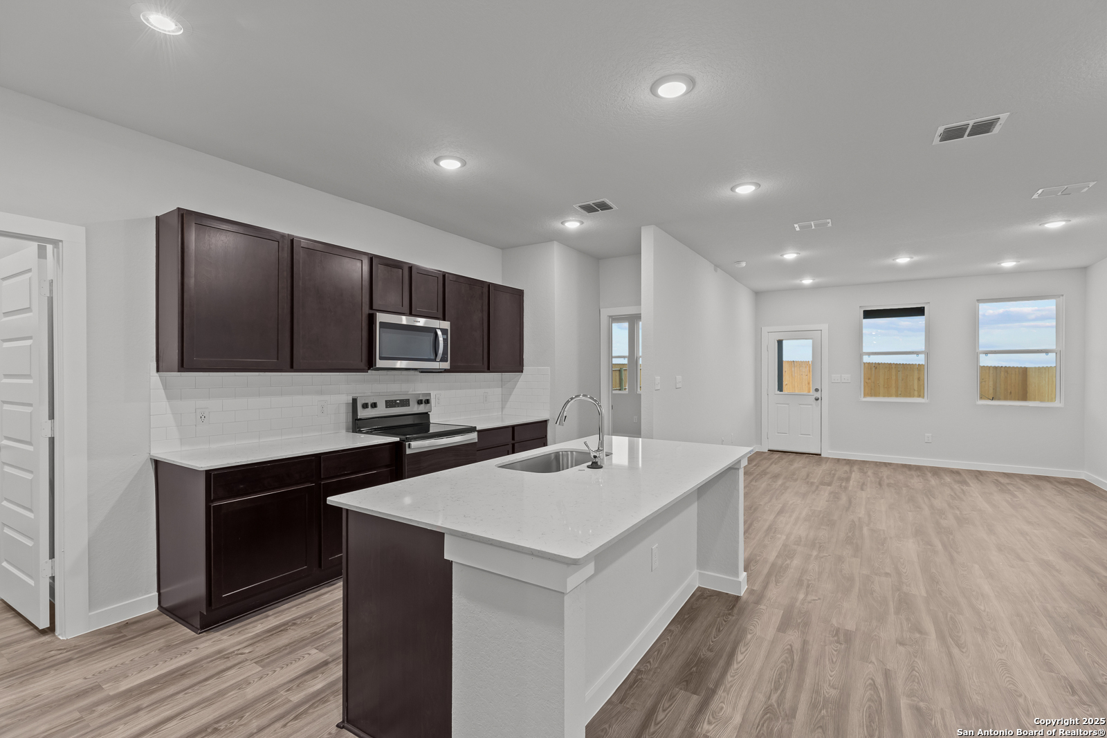 At the heart of the Tahoe Plan plan, you'll find a welcoming open kitchen with a convenient center island and a built-in pantry. The kitchen oversees a spacious dining area and an airy great room a few steps away. The luxurious owner's suite is adjacent, boasting a walk-in closet and a private bath. You'll also find a powder room on this floor. There are three bedrooms upstairs, one which can be optioned as a versatile loft space. An additional full bath rounds out this level. Additional home highlights and and upgrades: 36" flagstone kitchen cabinets, Luxury wood-look vinyl plank flooring in common areas, Stainless-steel appliances, Additional recessed throughout home, Cultured marble countertops and modern rectangular sinks in bathrooms, Landscape package with sprinkler system, Garage door opener with two remotes, Exceptional included features, such as our Century Home Connect smart home package and more!