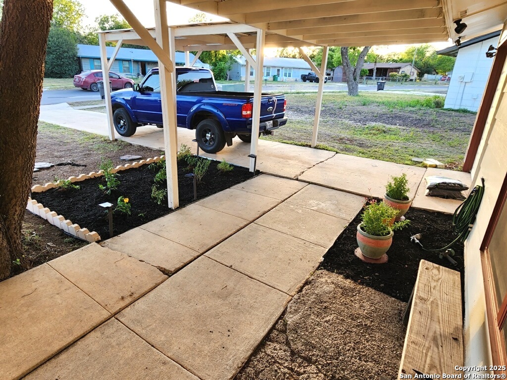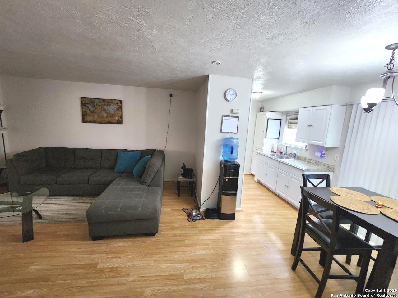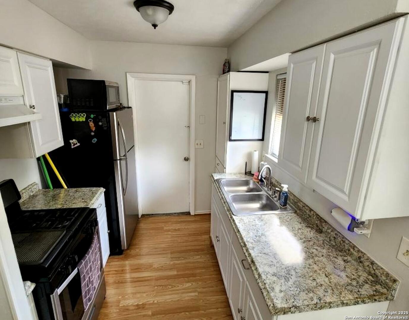 location location!! This beautiful 3 bedroom home sits in a corner lot The primary bedroom has double closets ,other features are white kitchen cabinets, lovely laminate floors, open floor plan, newly done covered front patio. The back yard is large and oversized back slab for you to enjoy for outside entertaining, Conveniently located near shopping, restaurants,near 35 North has lots of potential!