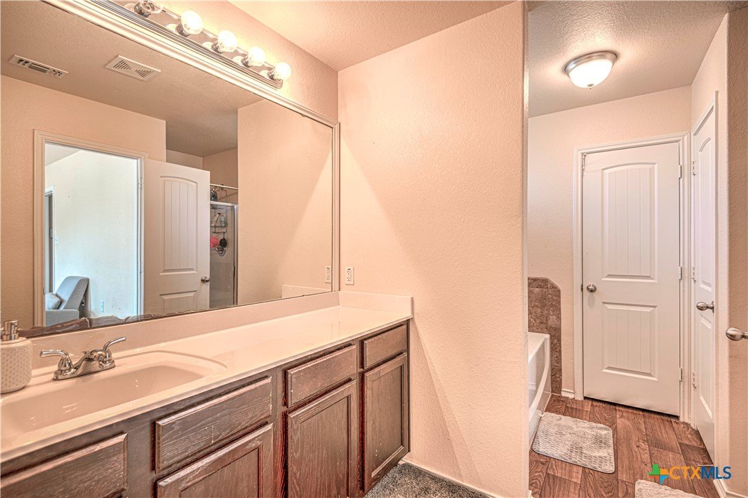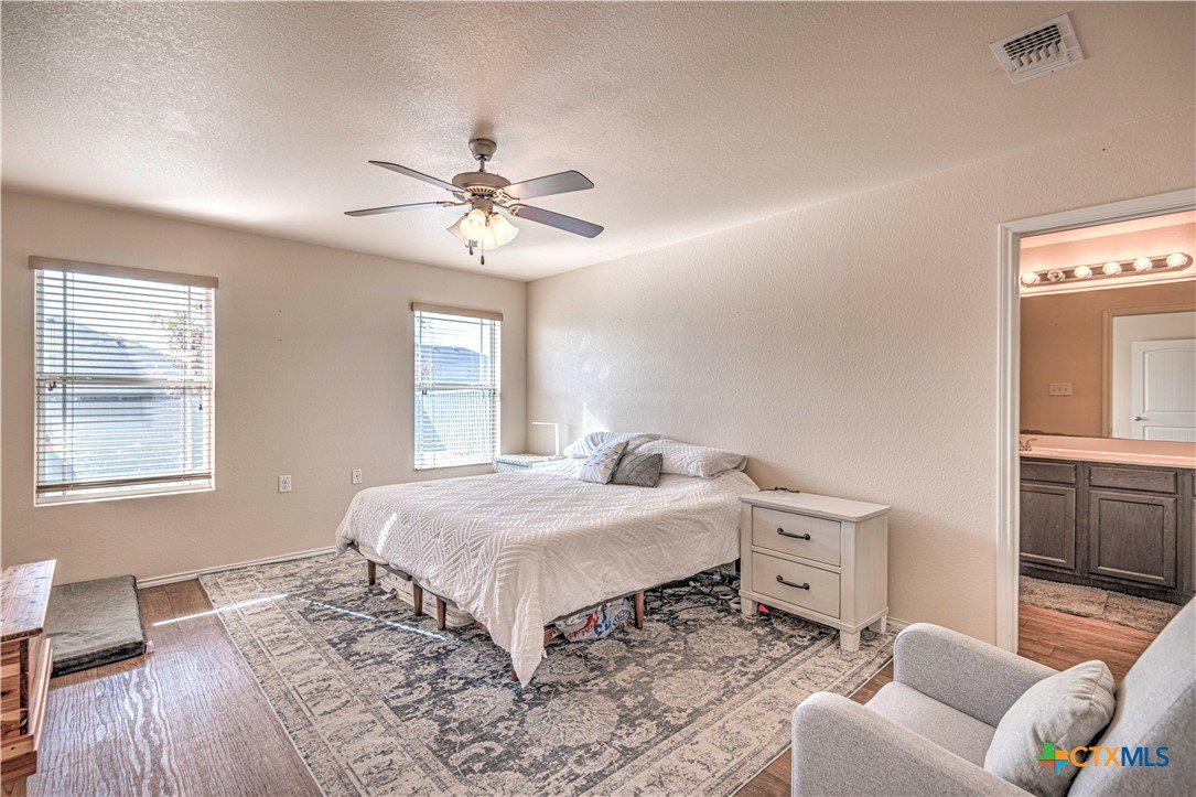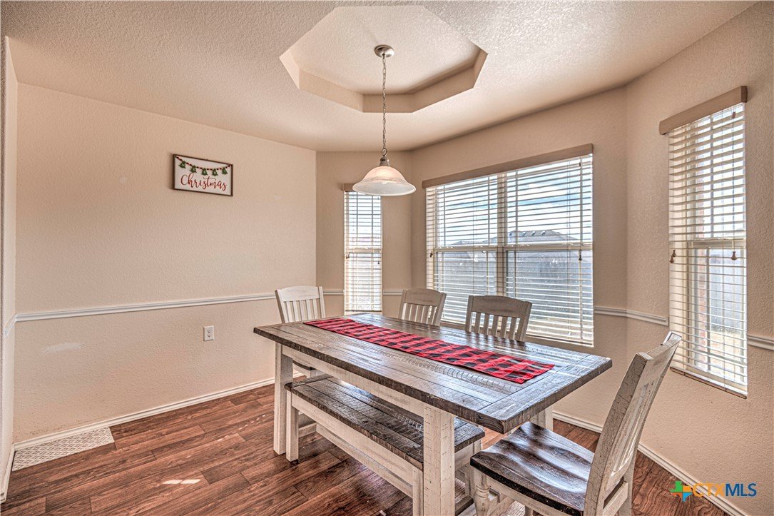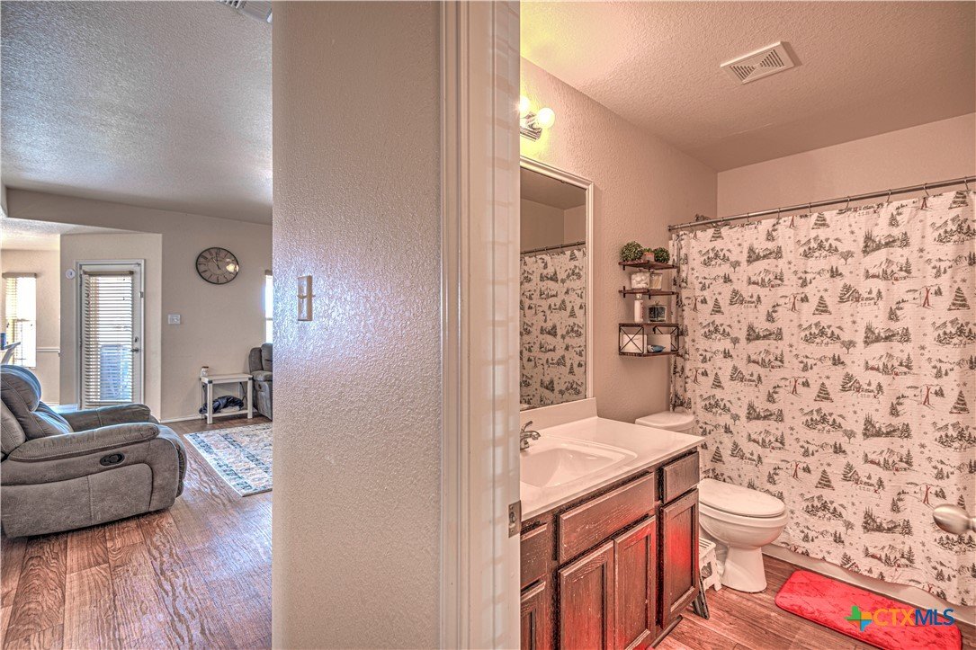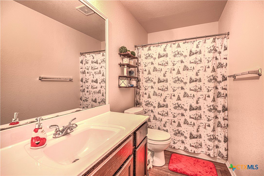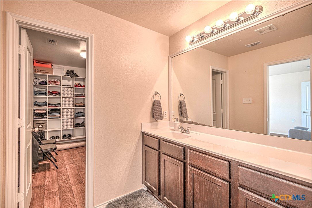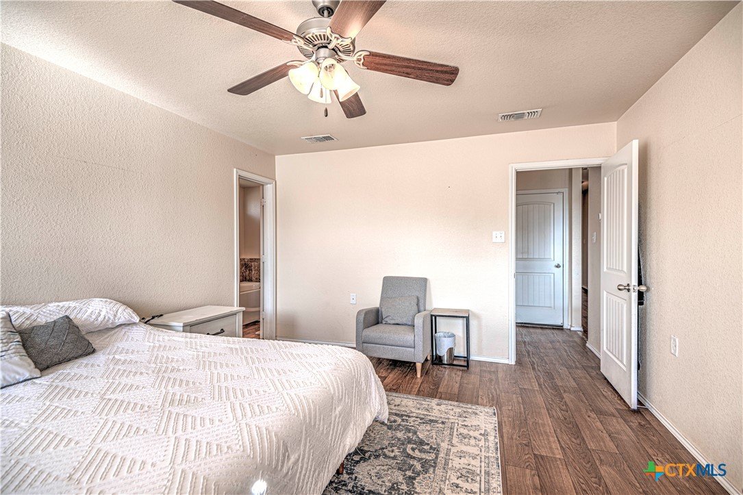 Step inside to a nice wide hallway and thoughtfully designed split floor plan. Bull nosed corners through out. Spacious living room and breakfast bar are complimented by a lot of natural light from the windows in dinning and living room. Kitchen has granite counters, LVP flooring throughout the home, and ceiling fans. The large primary bedroom also has a very large walk-in primary closet. The remaining bedrooms also have very large closets. Roof was replaced in 2023. Shelving in the garage will remain with the property. The home has front and back storm doors, a water softener, and irrigation system. Multipurpose room off the kitchen was used as a play room for the kids and a built in child size rock climbing wall. It will convey. The backyard is spacious, and the fully enclosed backyard, is complete with a durable metal privacy fence. Whether you're relaxing on the covered patio or entertaining guests, this home offers both comfort and convenience. The home is close to Fort Cavazos and multiple shopping centers. Solar is paid in full. Don’t miss out on a great opportunity—schedule your showing today!