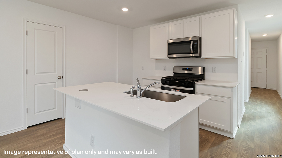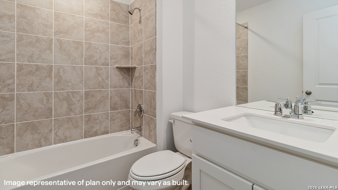 The Benbrook is a charming one-story home featured at Blue Ridge Ranch in San Antonio, TX. Featuring 2 classic front exteriors, this 4 bedroom, 2 bathroom home also offers 1359 square feet of living space and a 2-car garage. A front porch (per plan) welcomes you into the home and opens to the gourmet kitchen which includes quartz counter tops, quality cabinets, stainless steel appliances and an open concept floorplan with the kitchen flowing seamlessly into the dining room and living room. The main bedroom has an attractive ensuite bathroom that features a quartz vanity countertop and quality cabinetry. Enjoy additional storage with a spacious walk-in closet located off of the primary bathroom. Your secondary bedrooms all feature quality carpet flooring and a closet, and can be used as bedrooms, offices, work out spaces or other bonus rooms. The possibilities are endless with The Benbrook floor plan. Additional features include sheet vinyl flooring in entry, living room, and all wet areas, quartz counter tops in all bathrooms and HOME IS CONNECTED base package. Using one central hub that talks to all the devices in your home, you can control the lights, thermostat and locks, all from your cellular device.