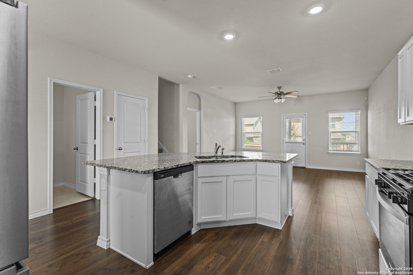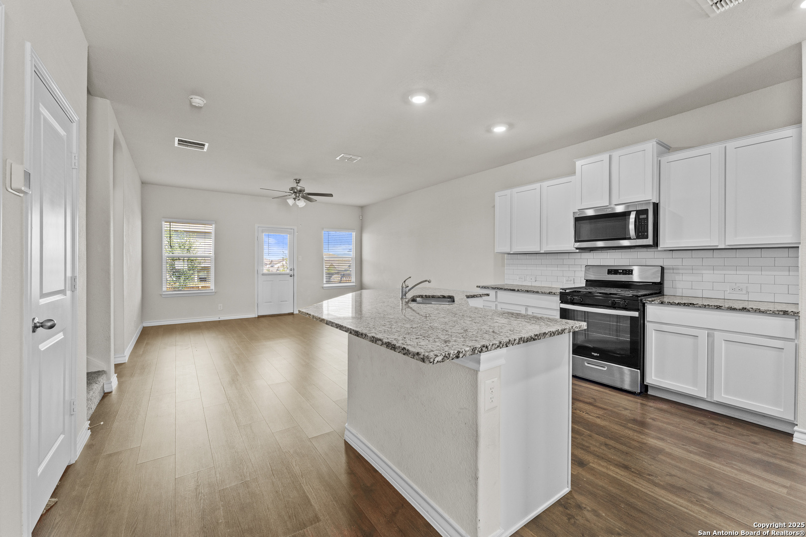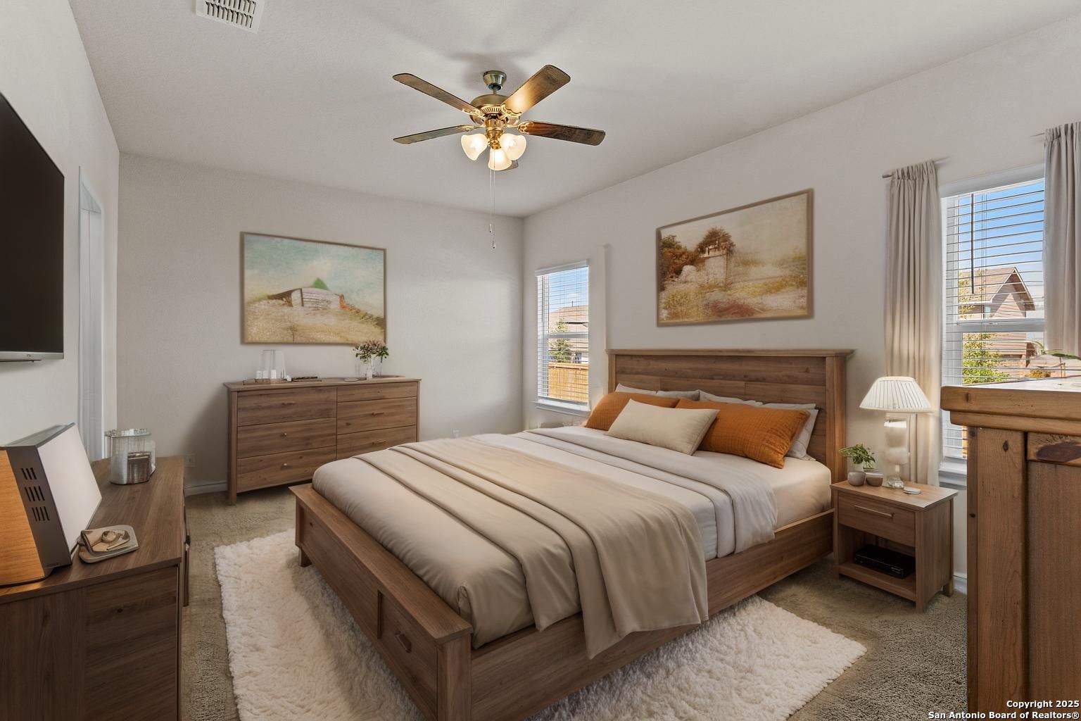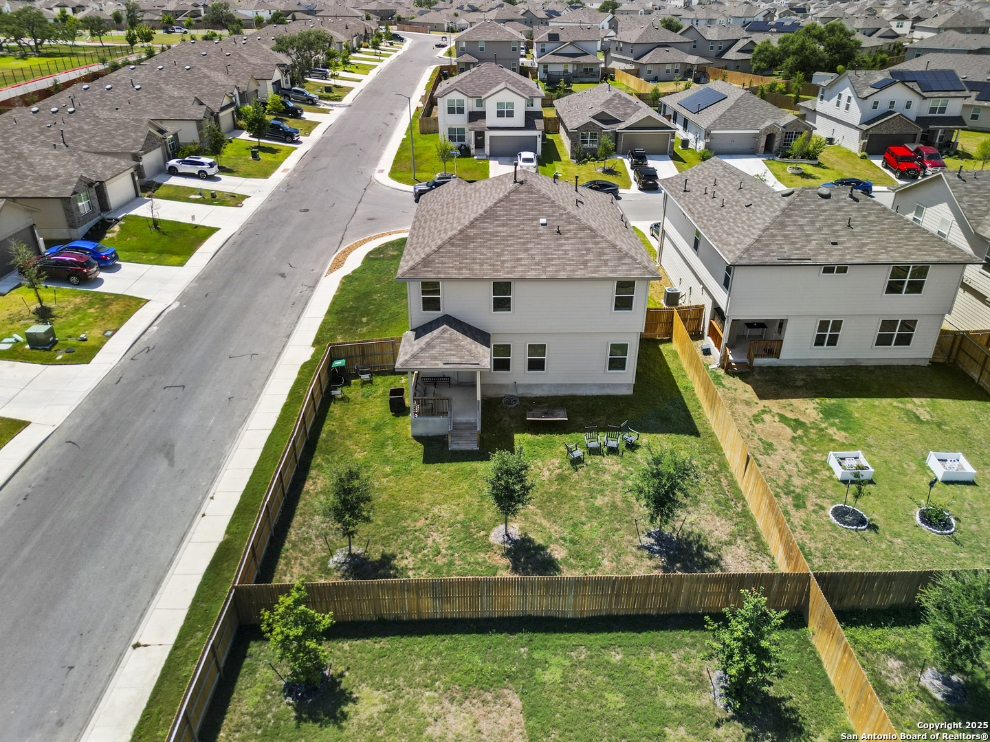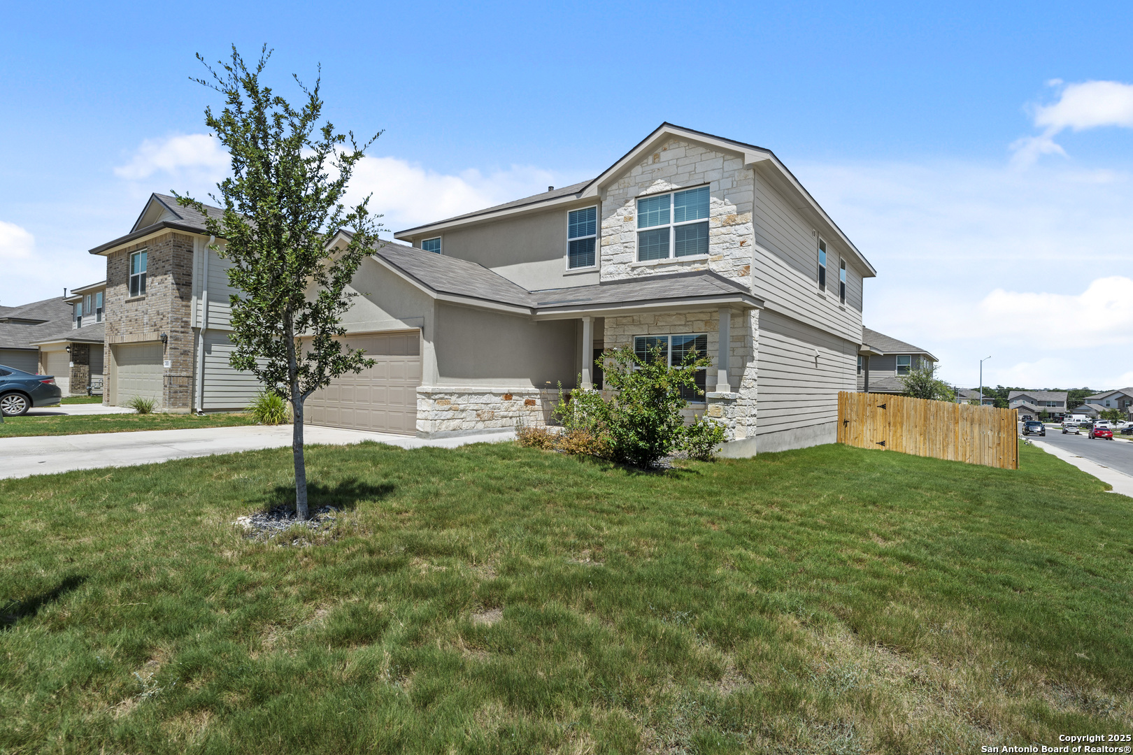 Welcome to 4804 Unakite Way, a stunning two-story residence located in the sought-after Riverside community. Situated on a spacious corner lot, this home features a beautiful stone exterior and an inviting, light-filled entryway with a grand foyer. Inside, you'll find five generously sized bedrooms and three-and-a-half bathrooms. The open floorplan seamlessly connects the formal dining room, living area, and kitchen-perfect for both everyday living and entertaining. The kitchen is a standout with abundant cabinet space, a large island with sink, and natural light throughout. The primary suite is located downstairs for added convenience, complete with a private bath featuring a garden tub, standing shower, and walk-in closet. Upstairs includes a versatile flex room ideal for a second living area, home office, or creative space. Step outside to a large, fully fenced backyard with a covered patio and mature trees planted for added privacy. Residents of Riverside enjoy resort-style amenities including two swimming pool areas, four total pools, a lazy river, two gyms, basketball court, and two party rooms. Don't miss this exceptional opportunity in one of San Antonio's most amenity-rich communities!