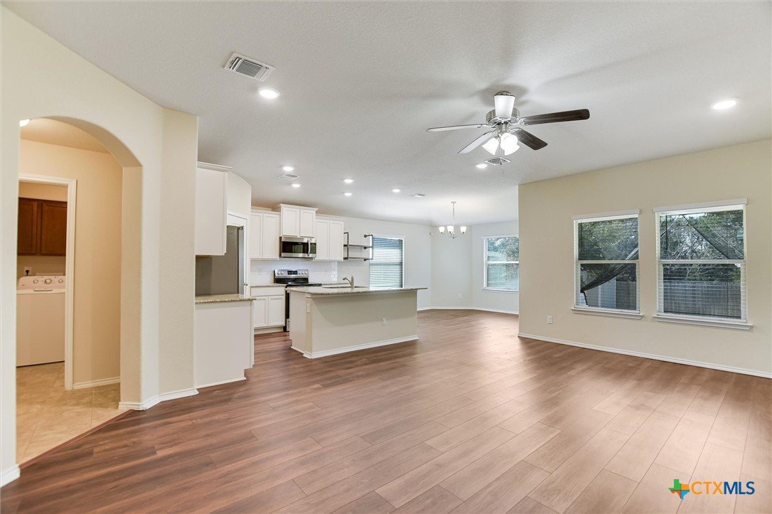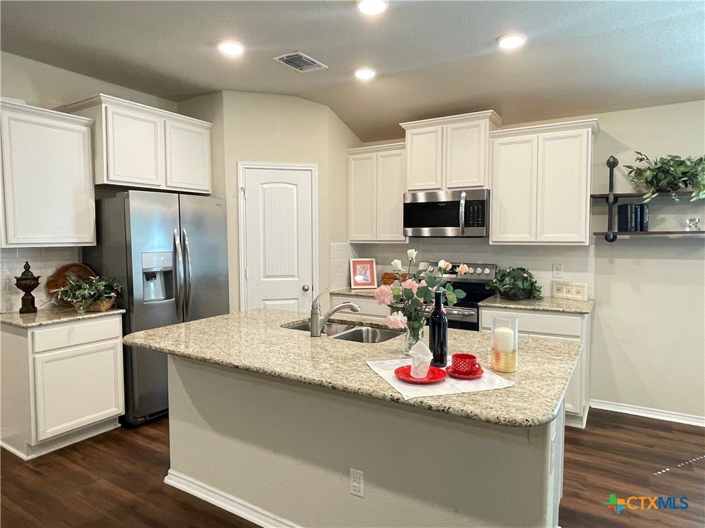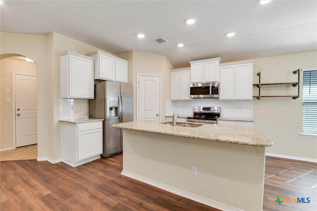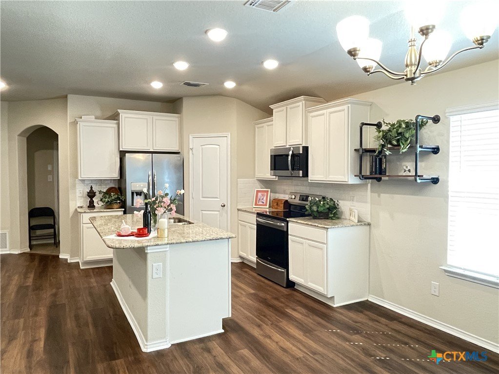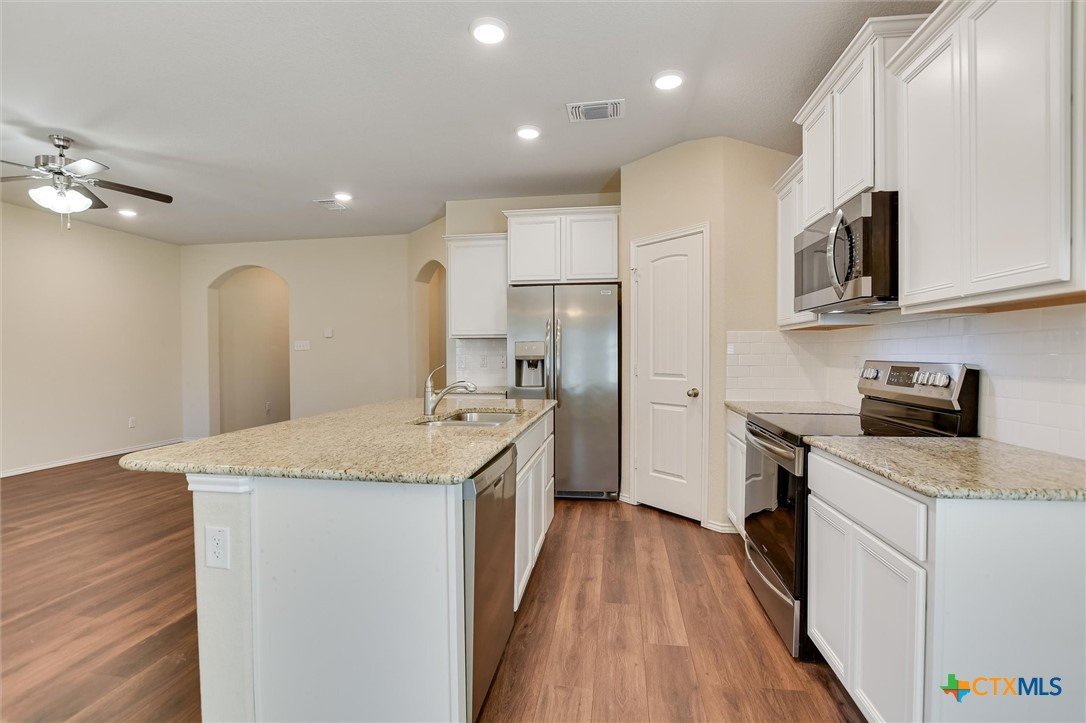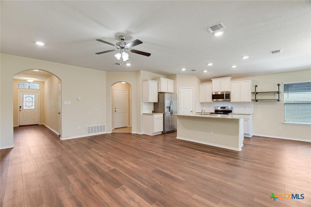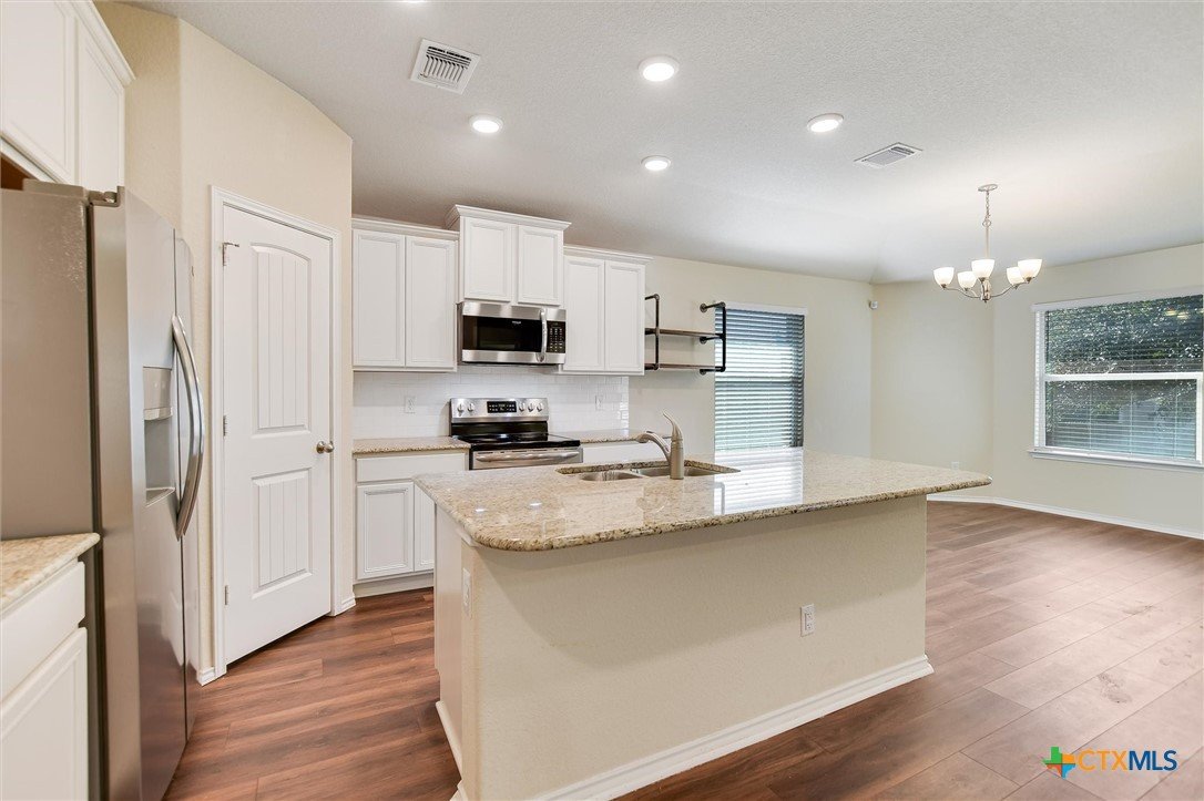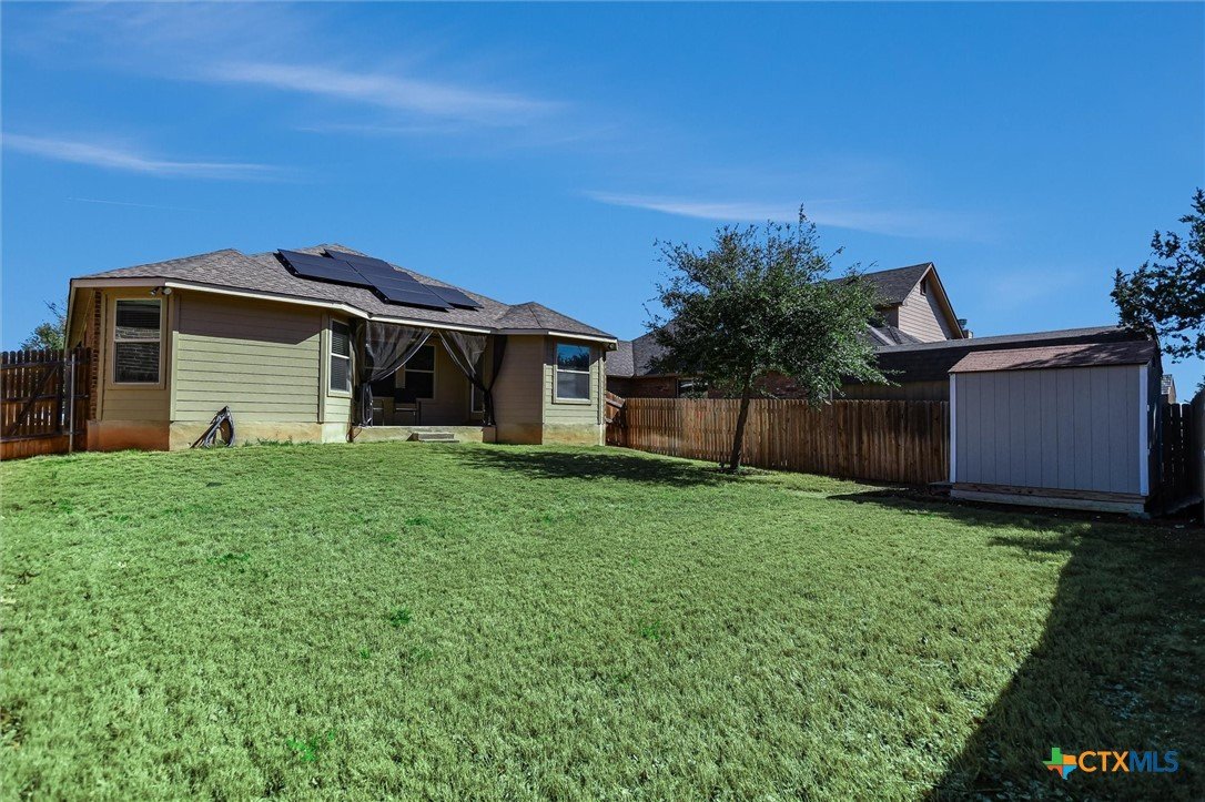 Seller may pay up to $10,000 of buyers' prepaids and closing costs with an acceptable offer and a 30-day closing!! Enter the front door of this exquisite 3 bedroom, 2 bath home, backing to an incredible open space, to find an open flowing floor plan featuring a fabulous gourmet kitchen with granite countertops, an over abundance of cabinets and countertop space, stainless steel appliances, built-in space saver microwave oven, refrigerator, stove/range/oven, walk-in pantry, and an eat-up breakfast bar and cozy breakfast nook all open to the oversized family room with high ceilings, ceiling fans and in wall wiring for your tv hookups. There are two additional bedrooms for guests and a second full bath. The main floor laundry has built-in shelving, and a clothes rack for hanging laundry and come with a washer and dryer. The rear yard is the perfect place to relax and unwind as you listen to the hoot and screech owls and other sounds of nature that live in the open space immediately behind this beautiful home. Solar panels, a whole house water softener, automated sprinkler system, newer roof, storage shed and new vinyl flooring name just a few added upgrades to this perfect home!