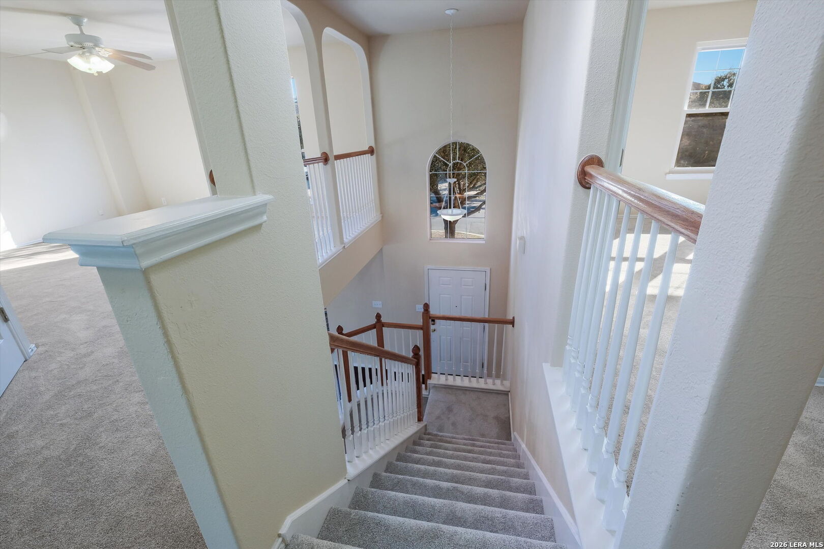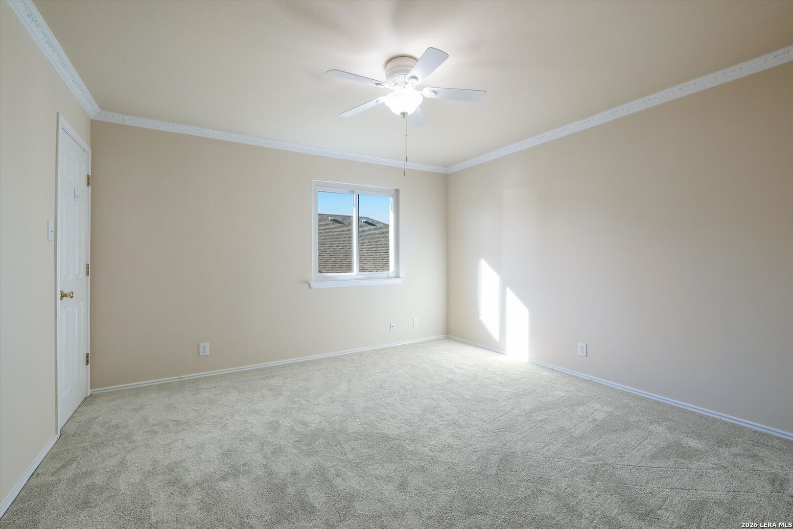 This house qualifies for a $6,000 grant with NAF, no income limit, please ask!! This beautiful 3-bedroom, 2.5-bathroom home located in the wonderful Wynwood of Westcreek subdivision on San Antonio's Northwest side. This property features an open floor plan with two living areas downstairs and a game room upstairs. Notable features include crown molding in the living room, a wood railing on the turned staircase, an entry with a raised ceiling, a water softener, updated windows in all bedrooms, and new carpet with a warranty. The primary suite is incredible, boasting two walk-in closets, a garden tub, a separate shower, and two vanities. The additional bedrooms are generously sized and include large closets. The property also offers a spacious backyard perfect for outdoor enjoyment, wooden swing set is included. If you are interested in scheduling a viewing, please use Showingtime.