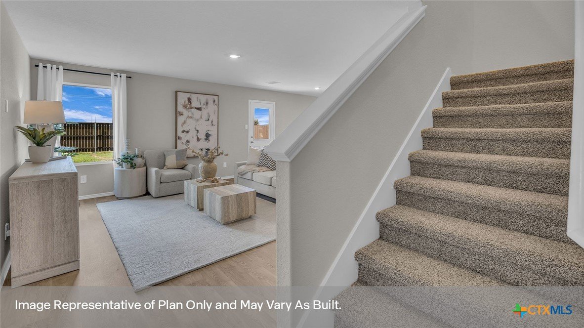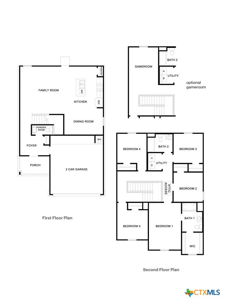 MARCH ESTIMATED COMPLETION. The Franklin is one of our two story floorplans available at Sunset Oaks in Maxwell, Texas. This beautiful two-story home features 55bedrooms and a game room, 2.5 bathrooms and a 2-car garage across 1,892 square feet of comfortable living space. Our homes in Sunset Oaks feature our modern farmhouse exterior. Step inside the home from the front porch and cross the foyer to the family room, kitchen and dining room. This large open concept area is perfect for entertaining and everyday living. The kitchen features an island with a stainless-steel sink, quartz countertops, 42’ upper ‘picture frame’ cabinets, a pantry closet, and stainless-steel appliances, including a gas range. The powder room completes the downstair space and is located at the front of the home, off the foyer. Ascend the stairs to the second floor, where you’ll find all the bedrooms, the optional gameroom, 2 full bathrooms and the utility room. The primary bedroom is located at the front of the home and includes an attached bathroom. Stretch out and relax at the end of your day in this spacious and private ensuite. The primary bathroom features a walk-in shower, cultured marble vanity with trench sink and a walk-in closet. All secondary bedrooms have amble closet space with wood shelving. Whether you use these rooms as an office, child’s room or guest room, there is enough room for work, sleep, and play. The secondary bathroom includes a shower/tub combination and a cultured marble vanity with trench sink. This home features our America’s Smart Home base package, which includes the Video Front Doorbell, Front Door Deadbolt Lock, Home Hub, Thermostat, and Deako® Smart Switches.