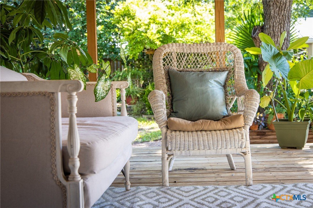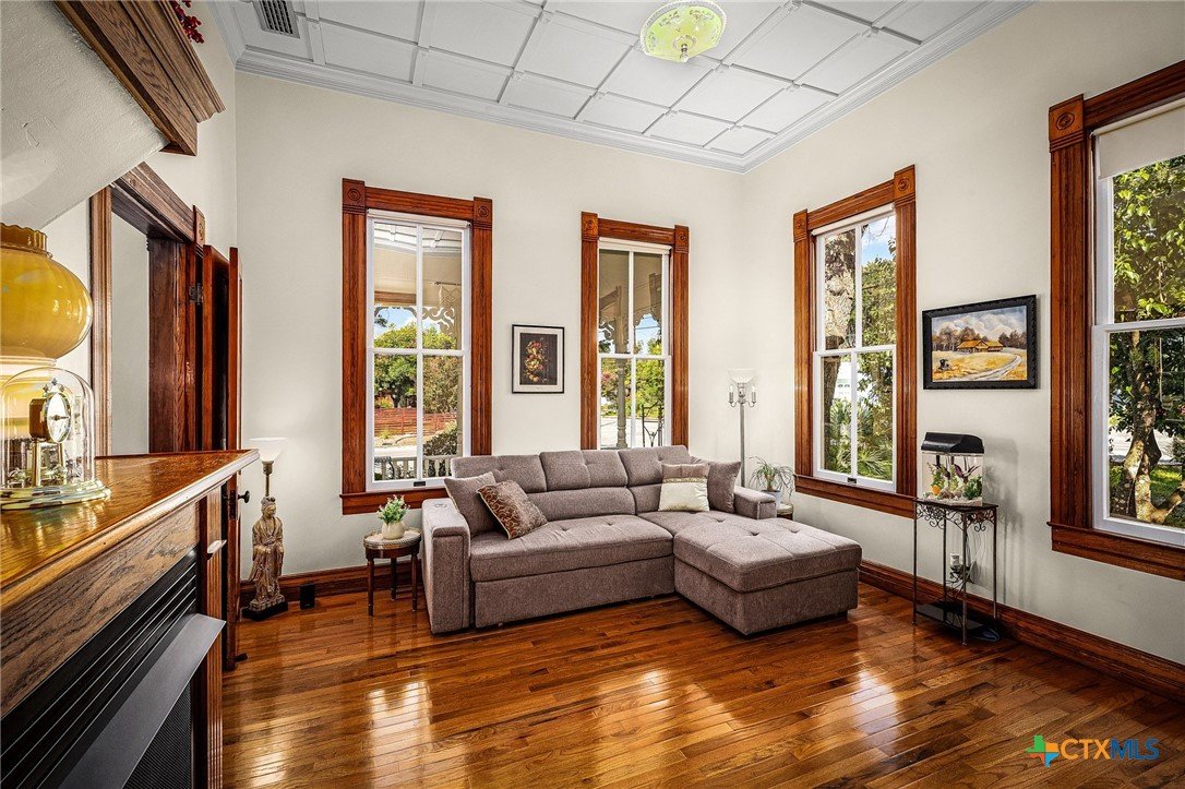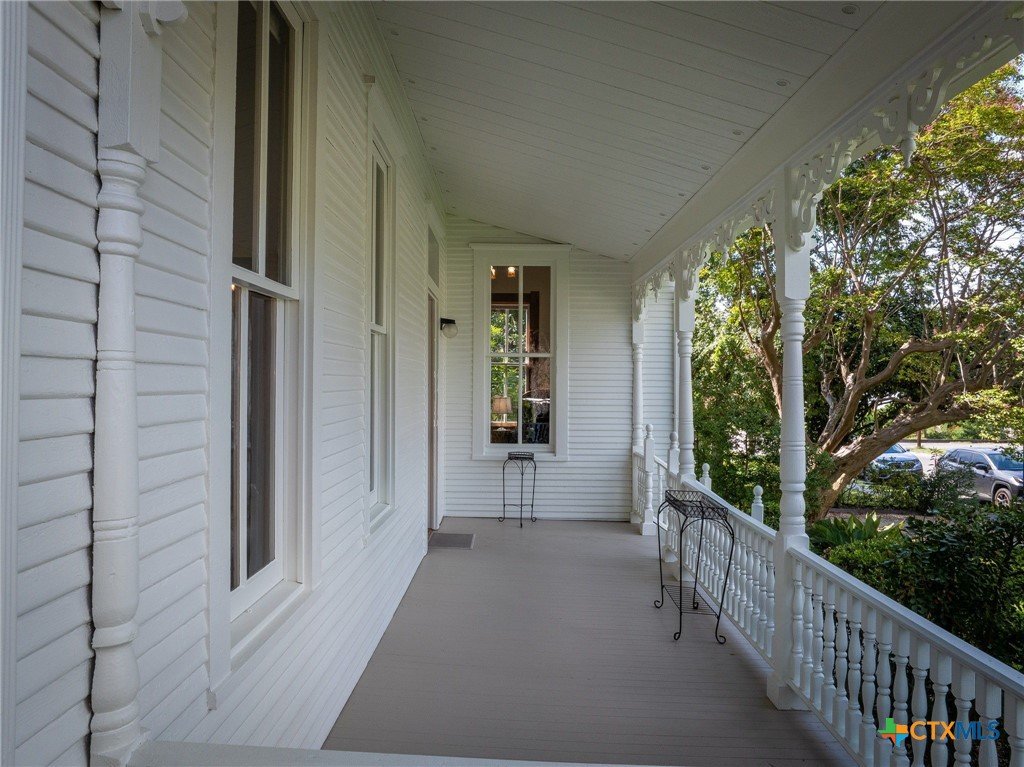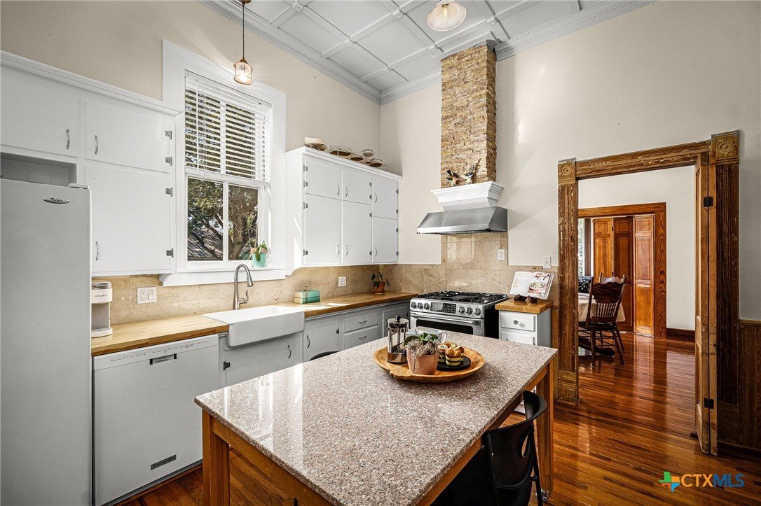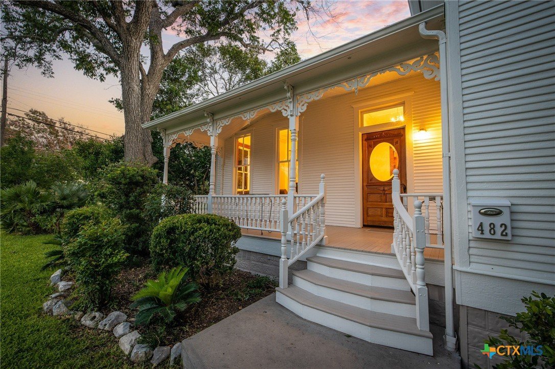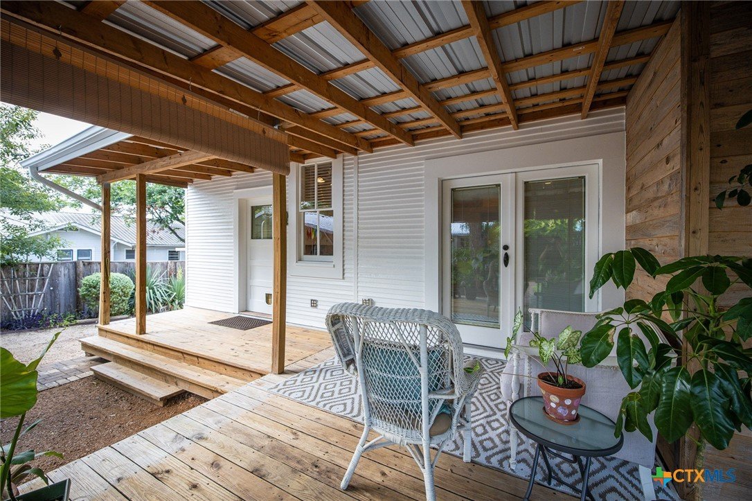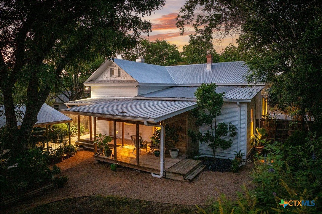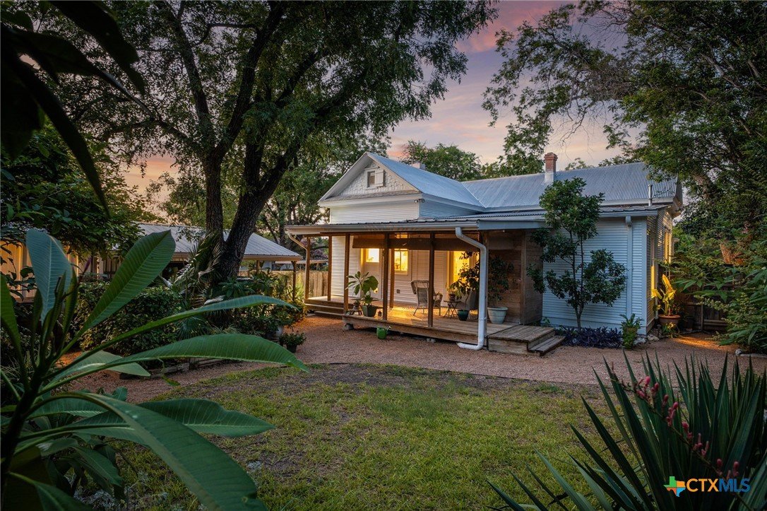 Step back in time with this beautifully preserved historic home nestled on a large corner lot in the vibrant heart of downtown New Braunfels. This residence boasts timeless elegance and character, featuring beautiful intricate architectural details and original hardwood floors that seamlessly blend old-world charm with modern comforts. The cozy floor plan includes 2 bedrooms and 1 bath, providing an intimate yet comfortable living space. The large windows fill each room with natural light, highlighting the exquisite woodwork and stunning high coffered ceilings. The updated kitchen retains its vintage appeal while offering modern conveniences, perfect for preparing gourmet meals. Situated on almost a quarter-acre, the expansive front porch offers a perfect spot to enjoy leisurely mornings, overlooking the picturesque tree-lined street. The backyard provides a private retreat with lush landscaping and a patio area, ideal for outdoor entertaining. Living in downtown New Braunfels means being just steps away from a vibrant array of shops, restaurants, and cultural attractions. Stroll to the famous Comal River, explore the historic Gruene district, or enjoy local festivals and events that make this community unique. Experience the best of historic charm and downtown convenience in this exceptional Texas Hill Country home!